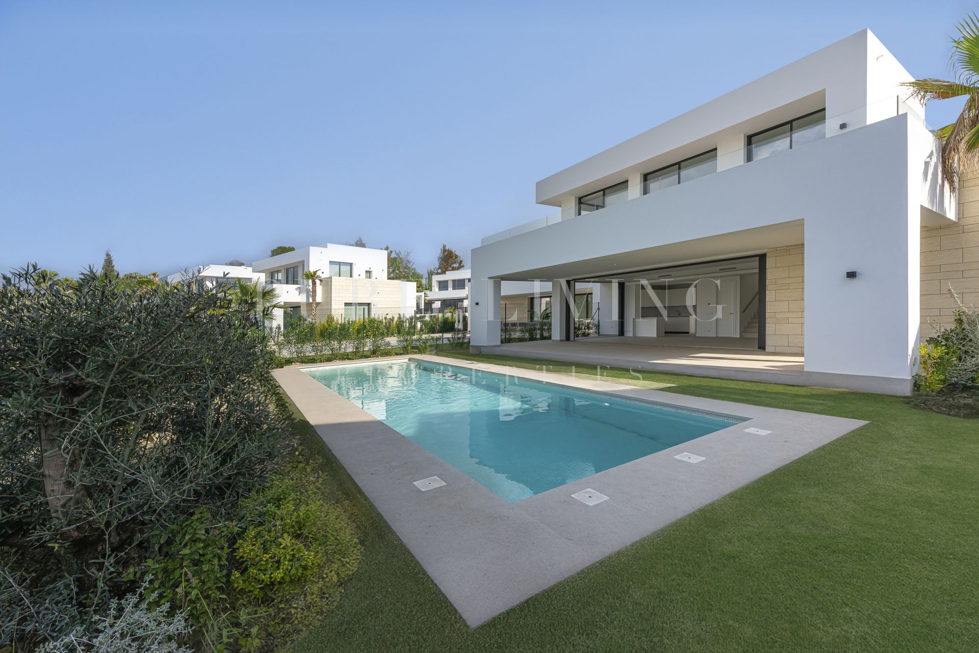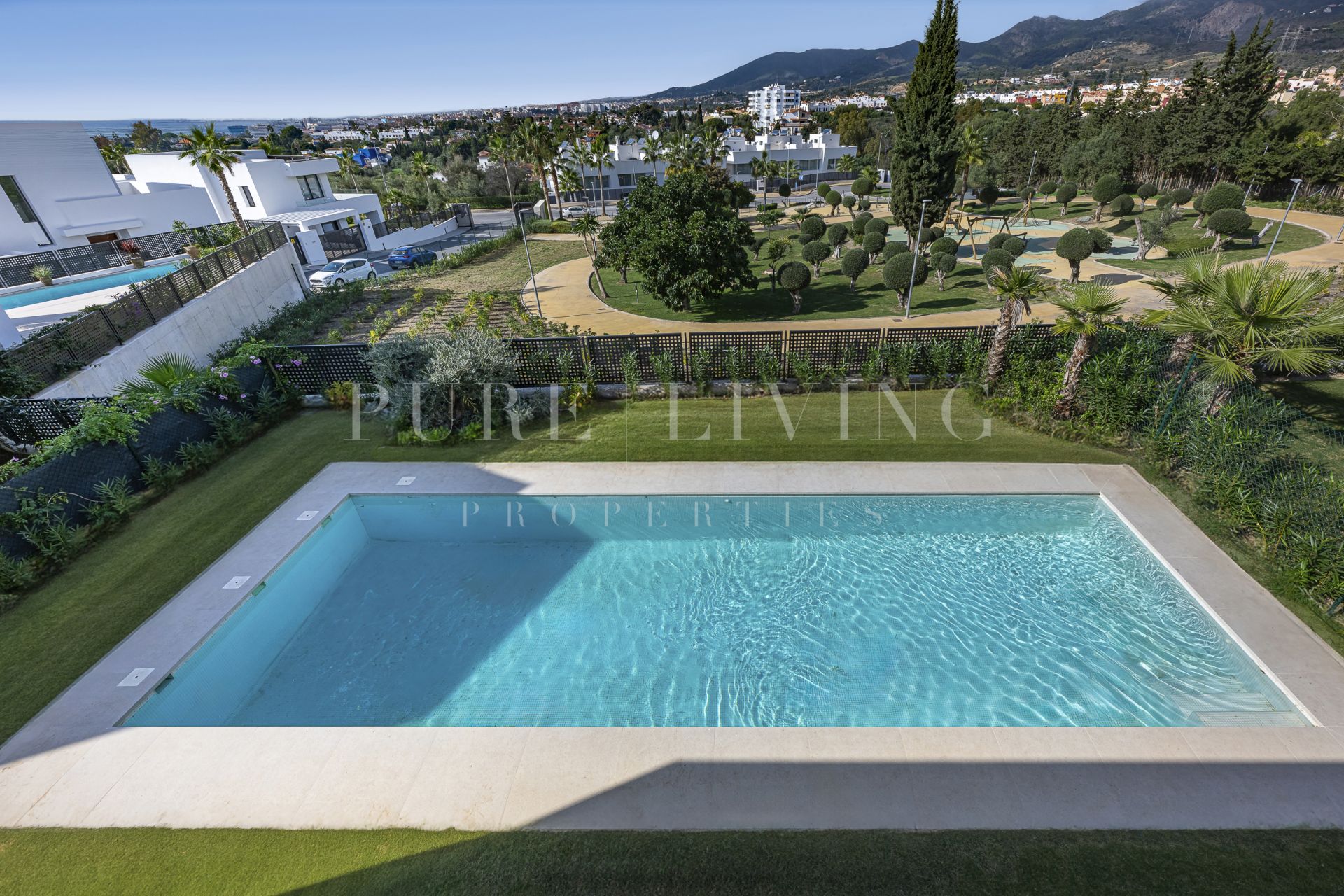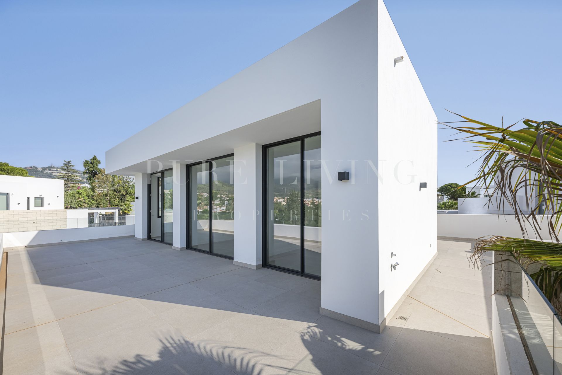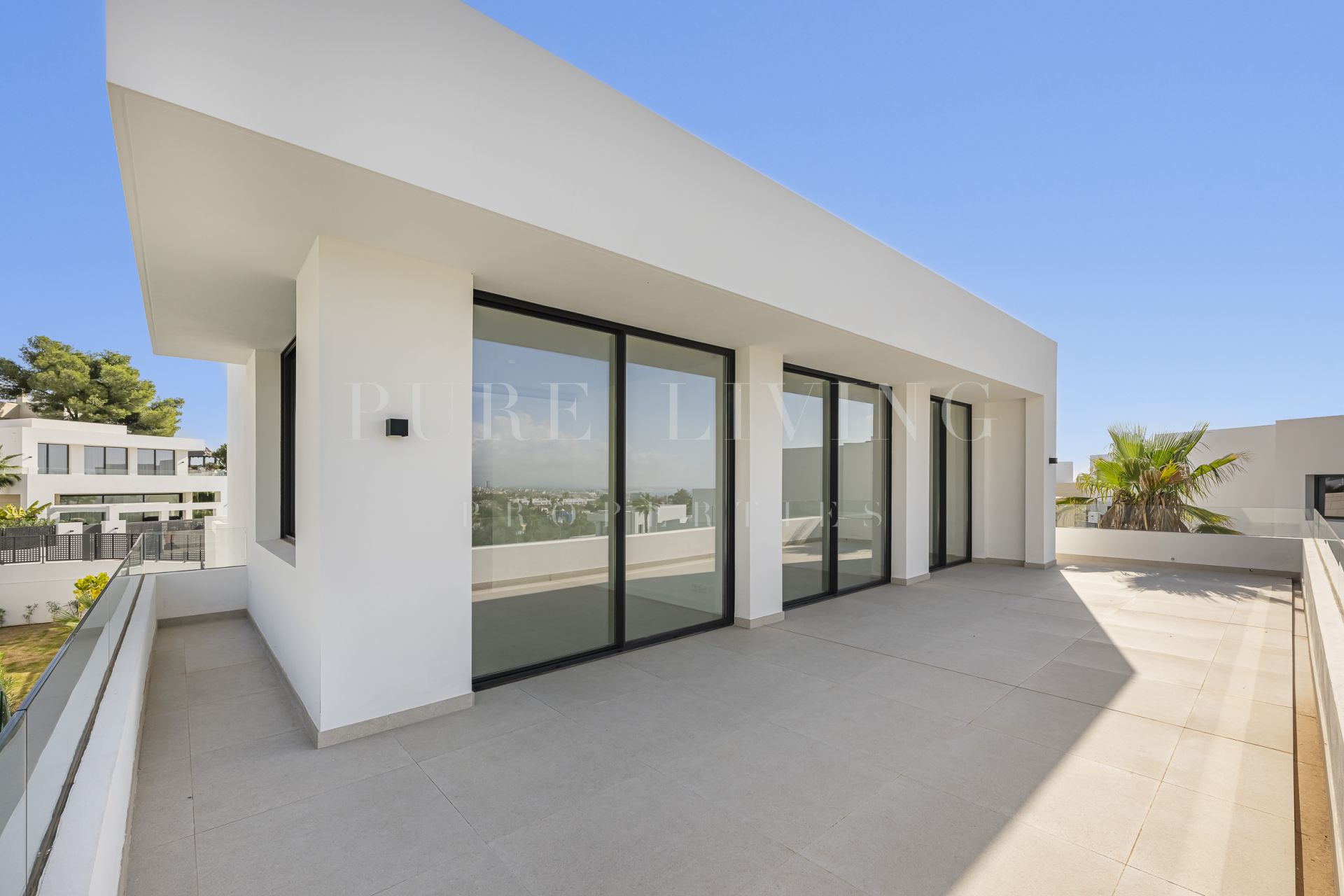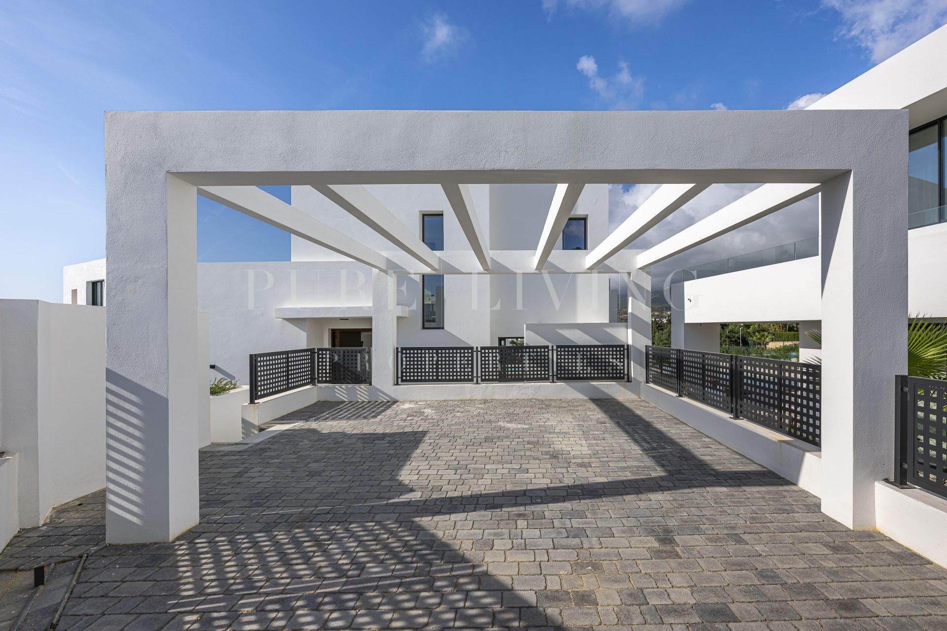 De villa is een voorbeeld van moderne architectuur met ruime open indelingen, grote ramen van vloer tot plafond en strakke, minimalistische lijnen die het natuurlijke licht maximaliseren. De villa wordt gekenmerkt door hoogwaardige afwerking en eersteklas materialen, waardoor een luxueuze leefomgeving wordt gecreëerd. Het ontwerp integreert naadloos binnen- en buitenruimtes, met privétuin en zwembad, zodat bewoners het hele jaar door kunnen genieten van het warme klimaat van Marbella.