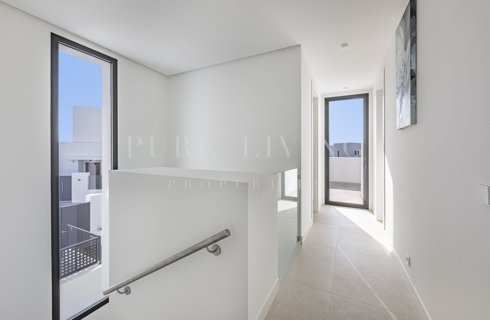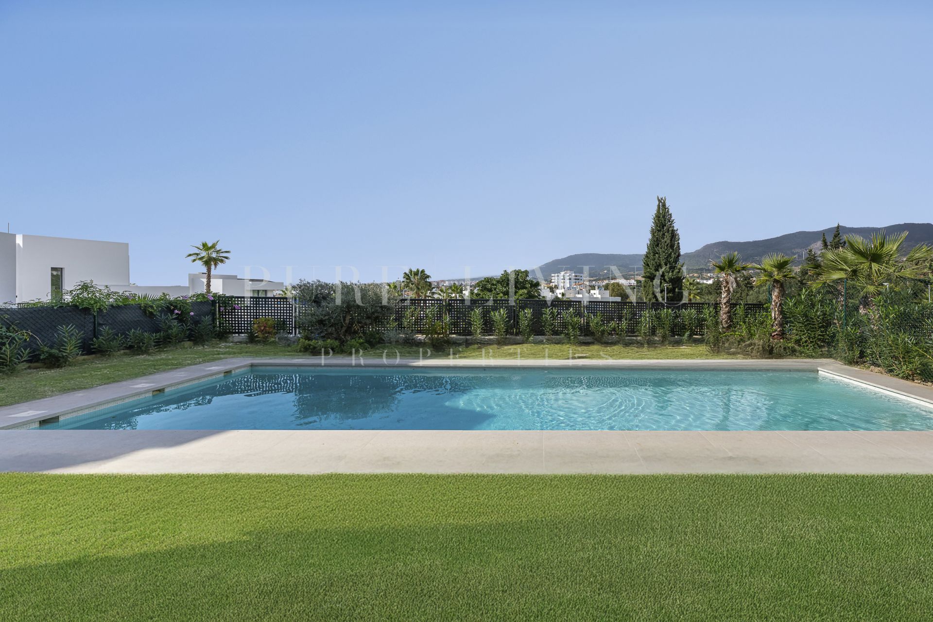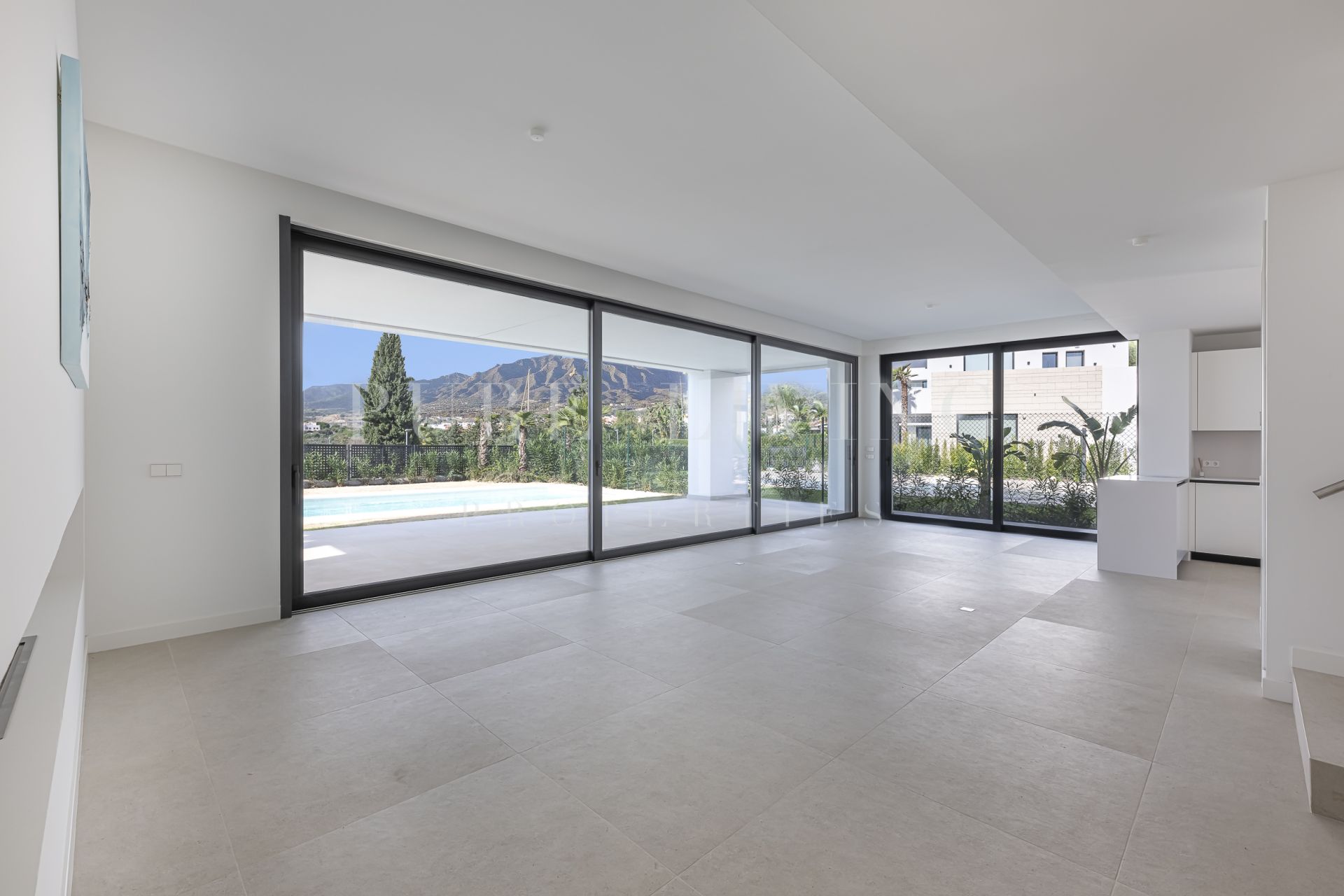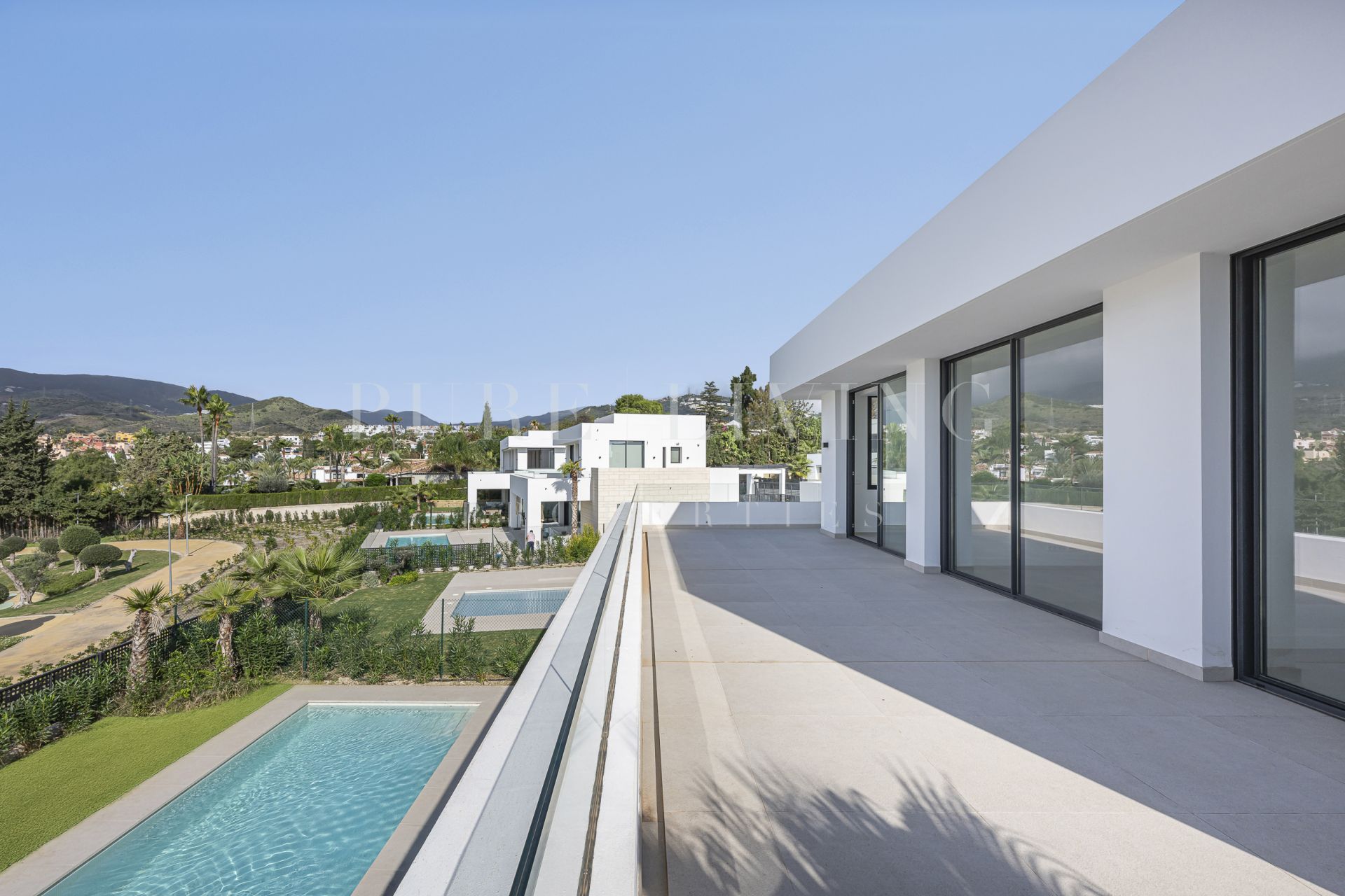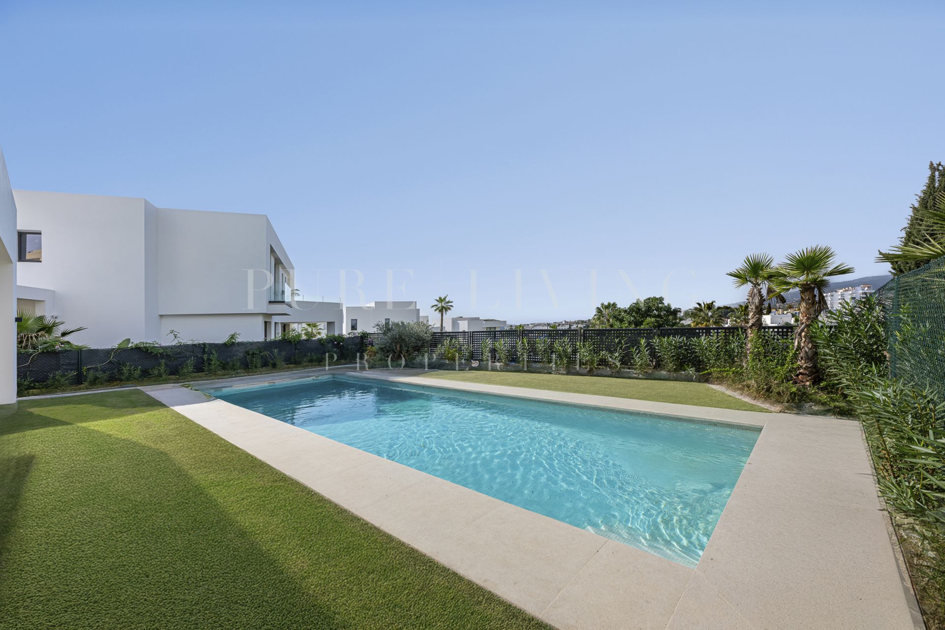 De villa is een voorbeeld van moderne architectuur met ruime open indelingen, grote ramen van vloer tot plafond en strakke, minimalistische lijnen die het natuurlijke licht maximaliseren. De villa wordt gekenmerkt door hoogwaardige afwerking en eersteklas materialen, waardoor een luxueuze leefomgeving wordt gecreëerd. Het ontwerp integreert naadloos binnen- en buitenruimtes, met privétuin en zwembad, zodat bewoners het hele jaar door kunnen genieten van het warme klimaat van Marbella.