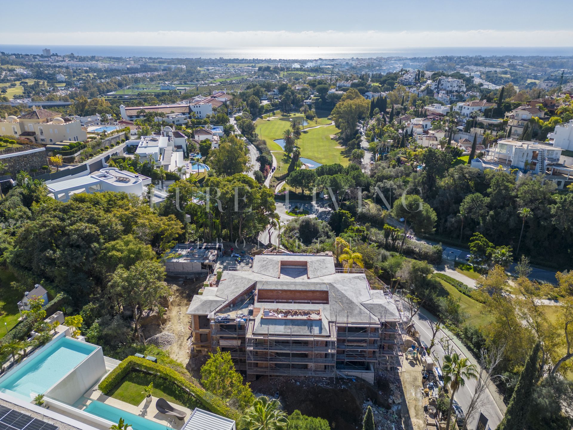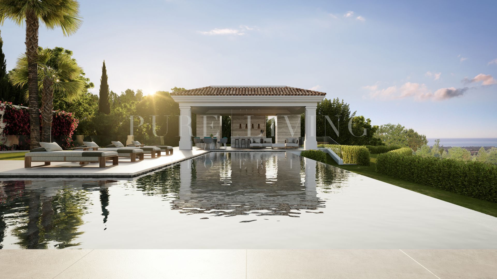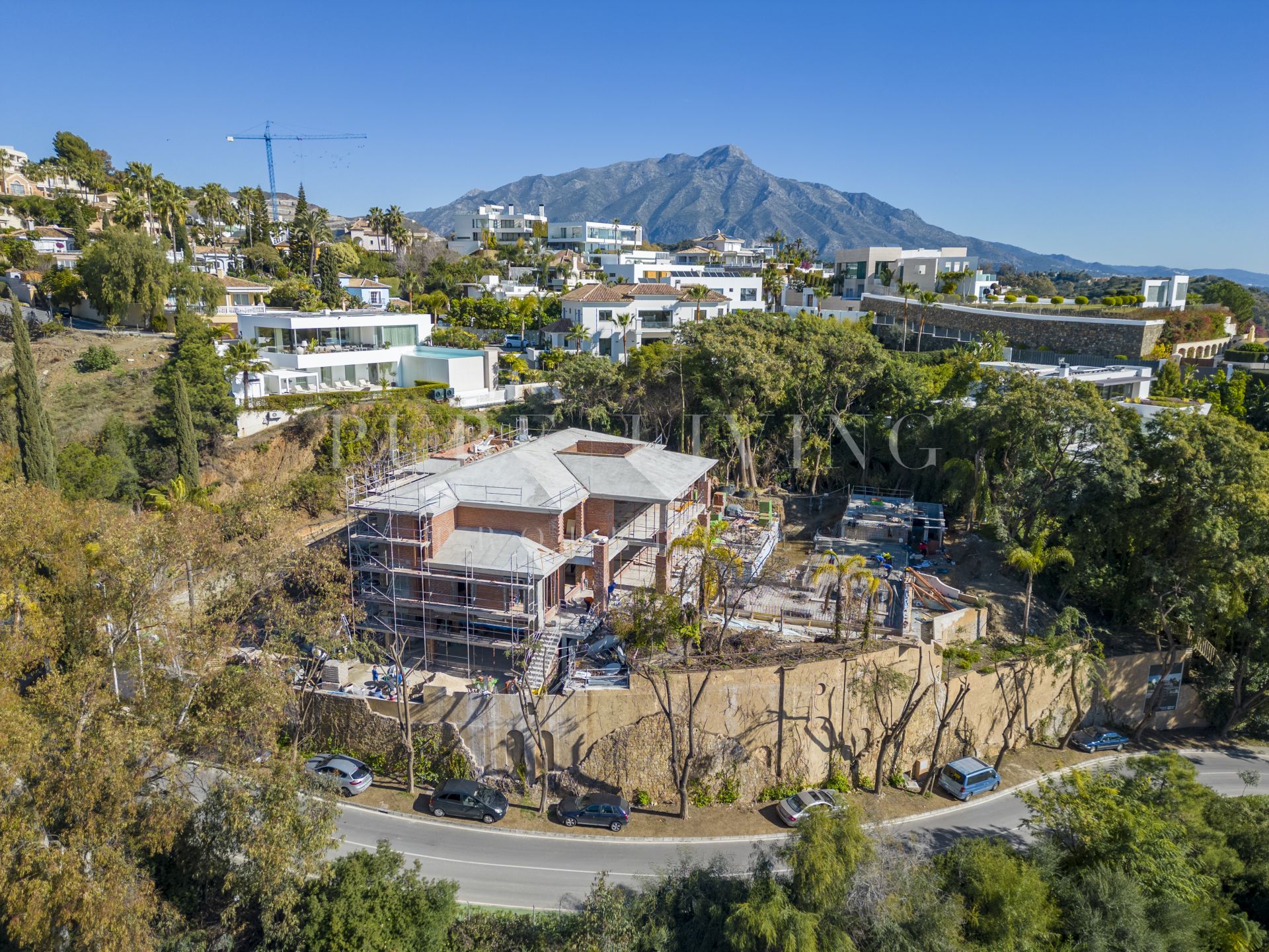 Deze uitstekende nieuw gebouwde villa ligt op een verhoogd perceel in La Quinta, op loopafstand van de golfbaan van La Quinta en op een paar minuten rijden van Puerto Banus. De op het zuiden gelegen villa HG geniet de hele dag van de zon en heeft open uitzicht op zee en de golfbaan.