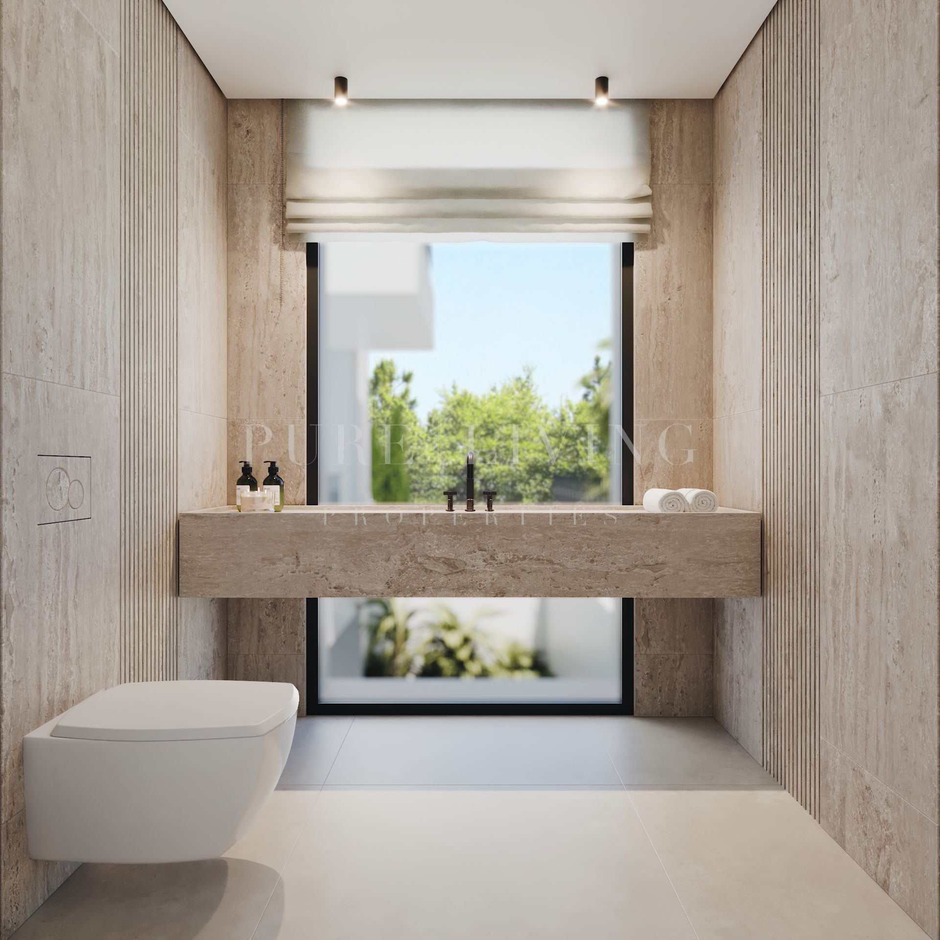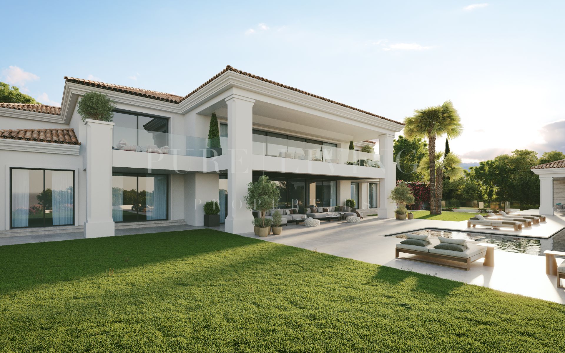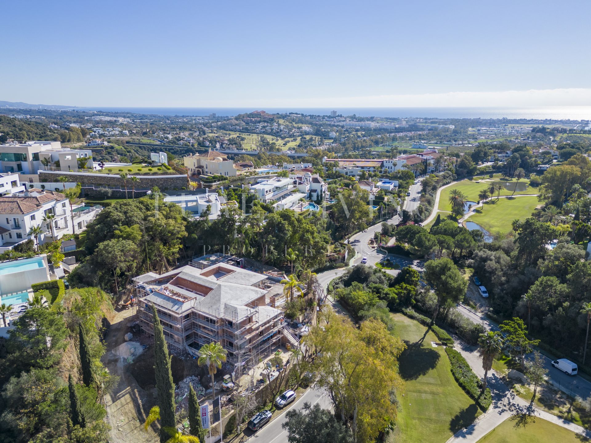 Deze uitstekende nieuw gebouwde villa ligt op een verhoogd perceel in La Quinta, op loopafstand van de golfbaan van La Quinta en op een paar minuten rijden van Puerto Banus. De op het zuiden gelegen villa HG geniet de hele dag van de zon en heeft open uitzicht op zee en de golfbaan.