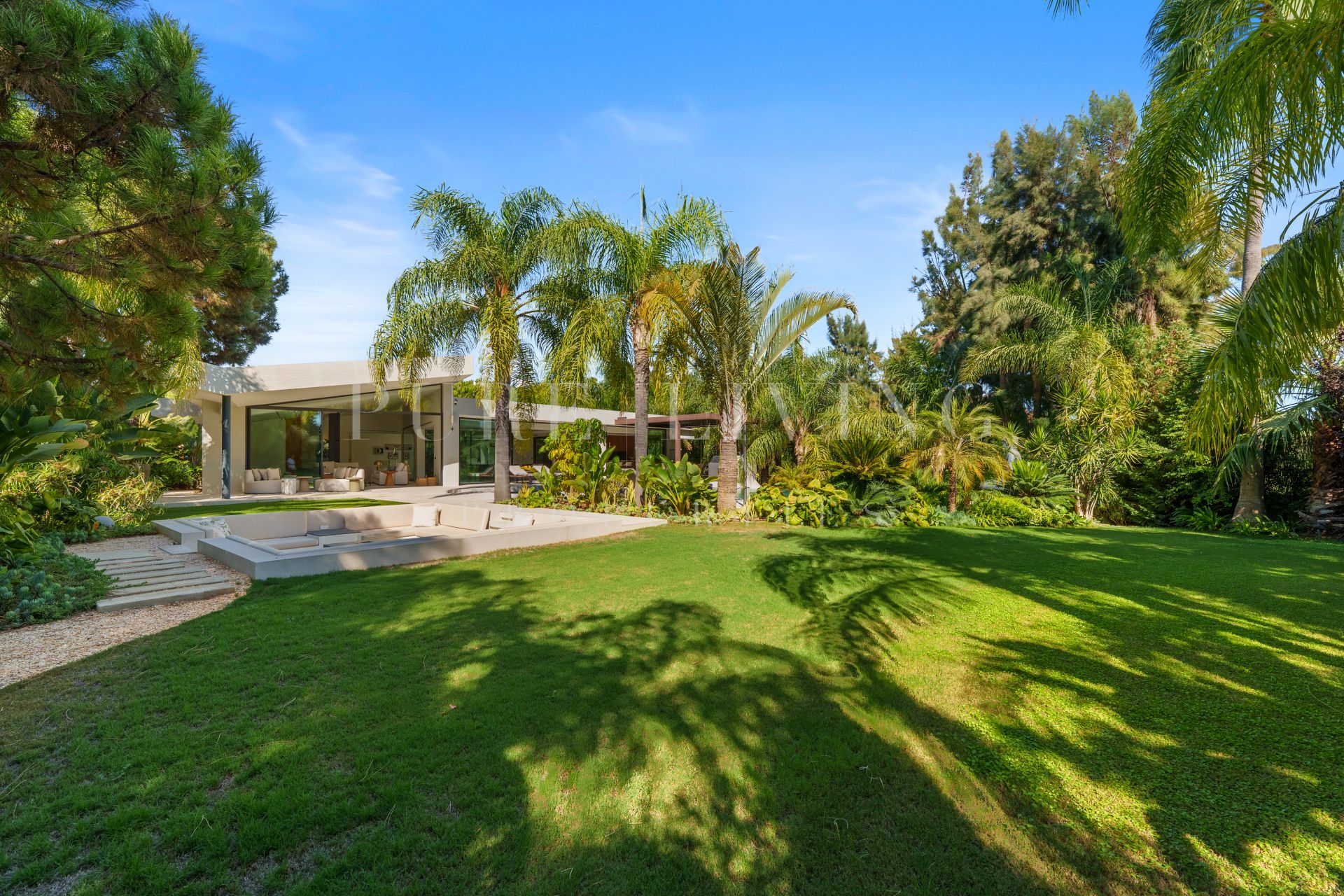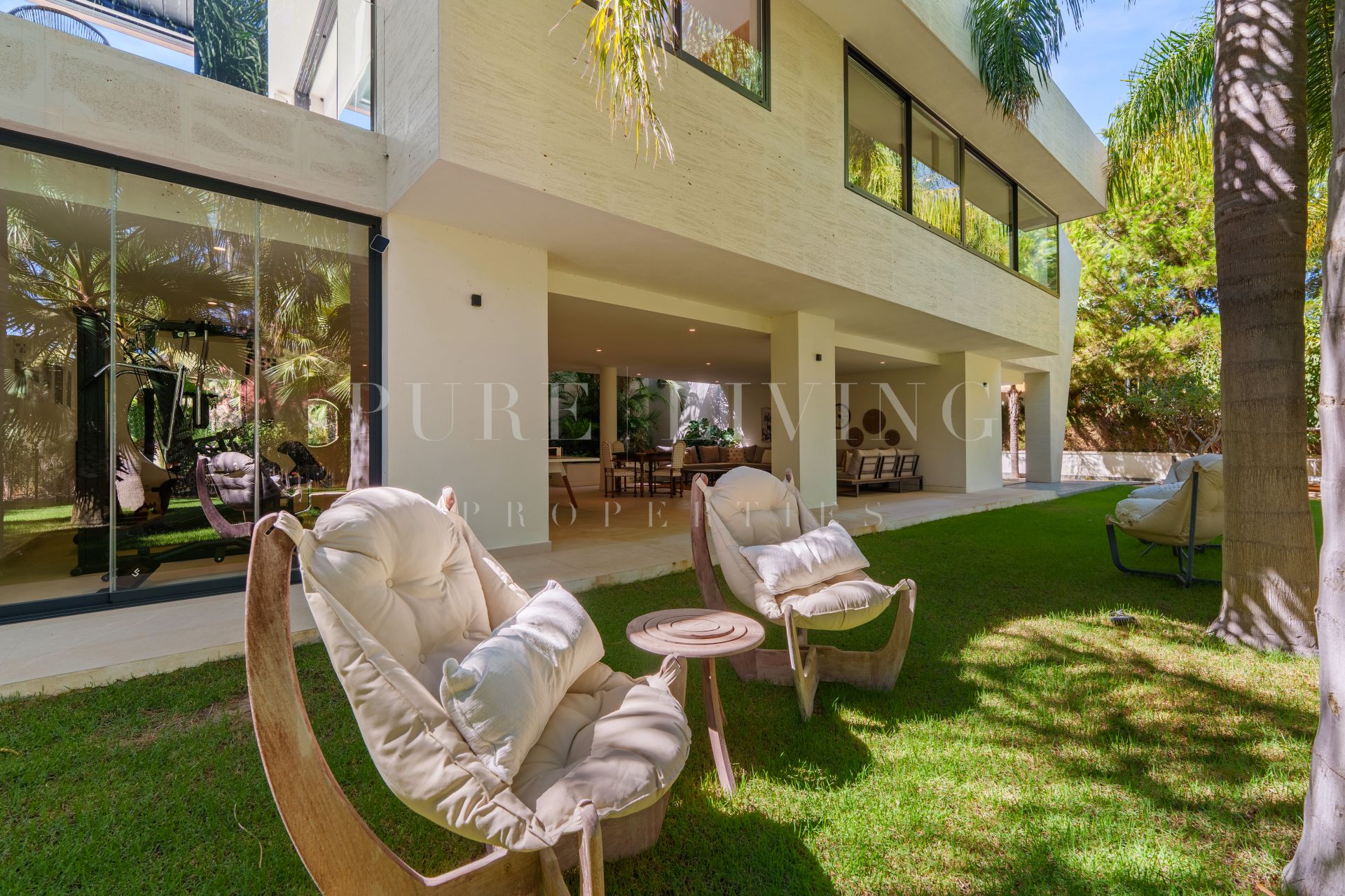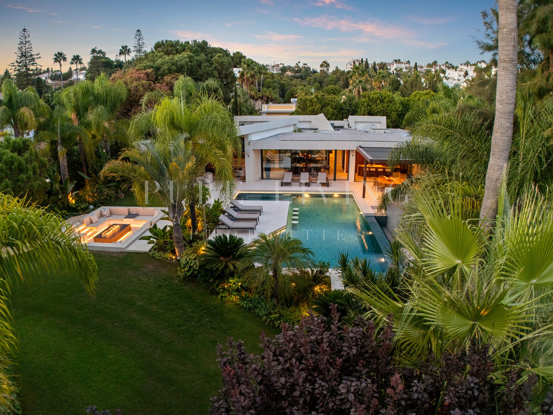 Ervaar moderne luxe in deze elegante Villa Las Chapas, met open woonruimtes, privézwembad, spa, aangelegde tuinen en speciale entertainmentruimtes voor ultiem comfort en ontspanning.