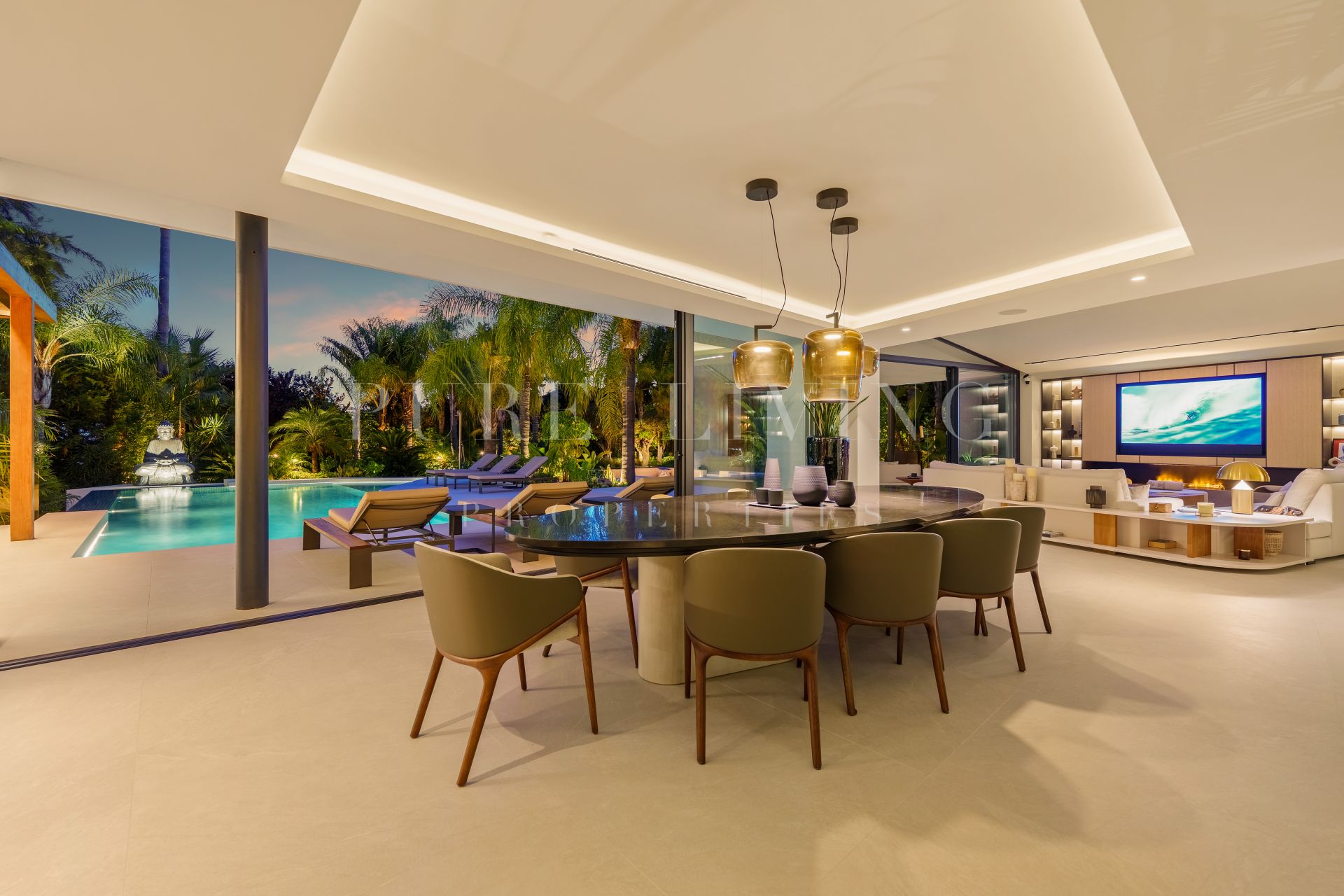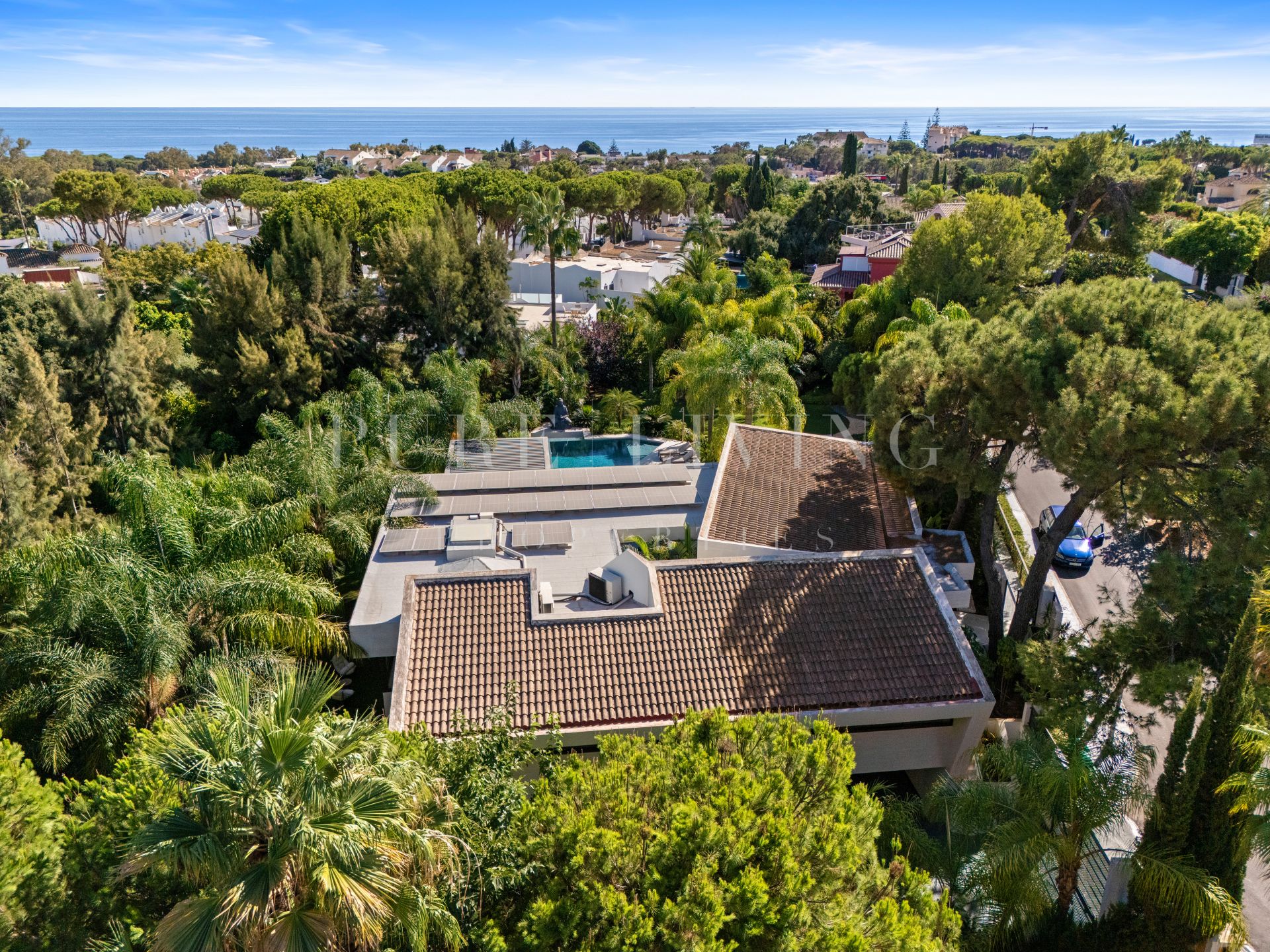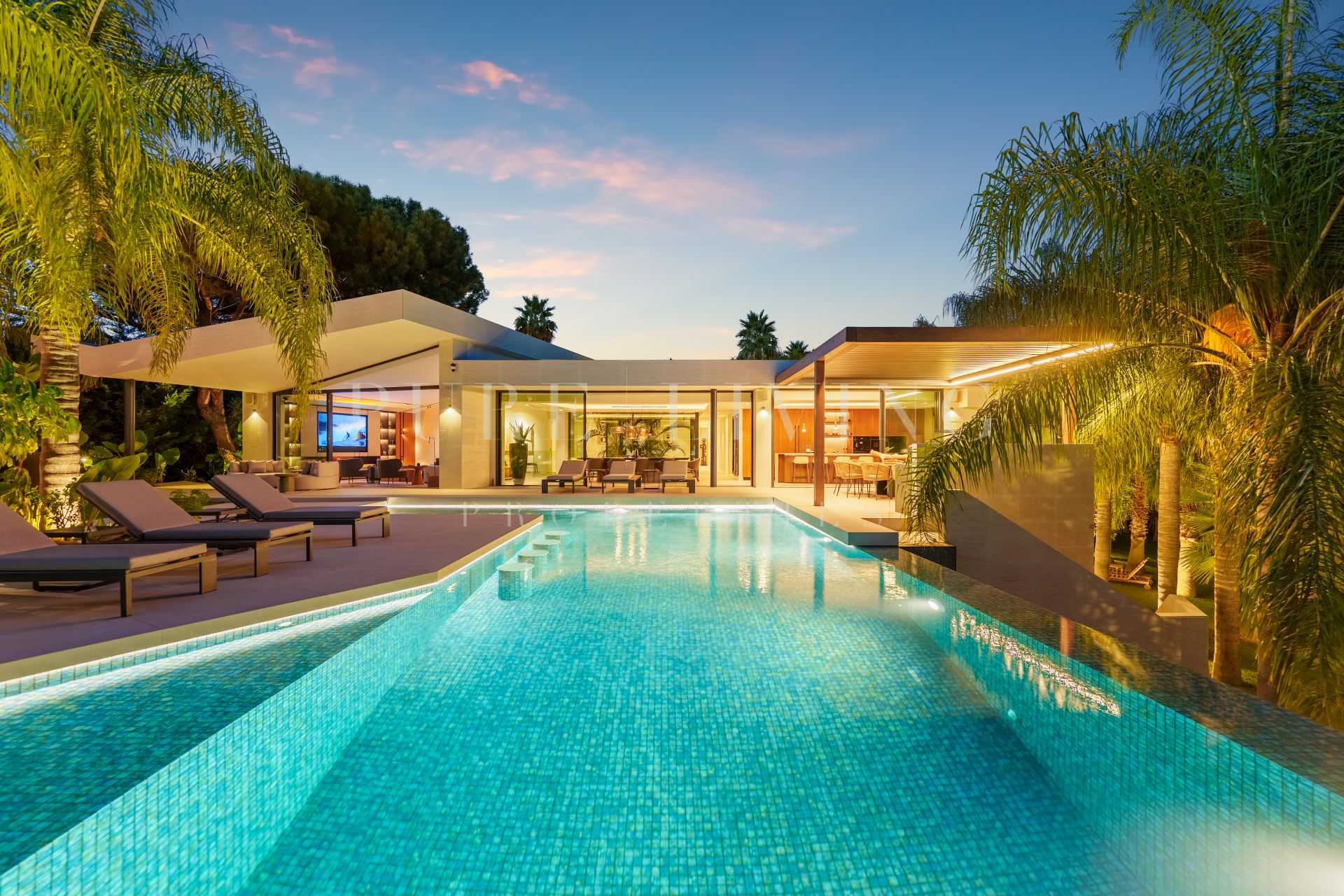 Ervaar moderne luxe in deze elegante Villa Las Chapas, met open woonruimtes, privézwembad, spa, aangelegde tuinen en speciale entertainmentruimtes voor ultiem comfort en ontspanning.