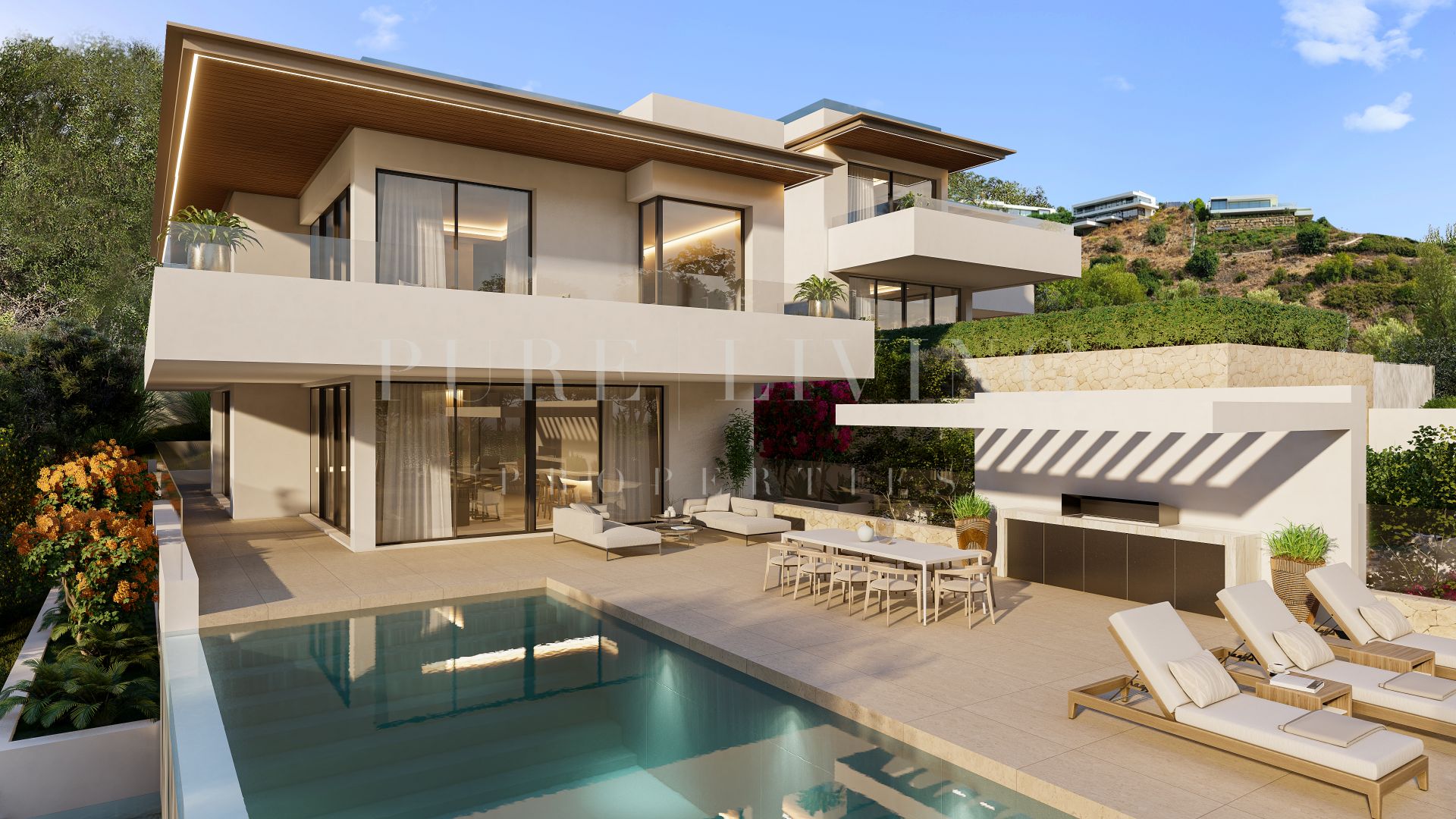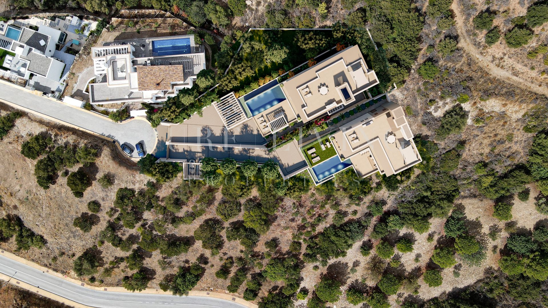 Deze zorgvuldig ontworpen woning heeft 4 slaapkamers, 5 badkamers, een ruime tv- en entertainmentruimte en een garage voor 4 auto’s, aangevuld met een prachtig overloopzwembad van 58 m². Deze uitzonderlijke woning is perfect afgewerkt en ligt in een begeerde zuidoostelijke oriëntatie. Het adembenemende uitzicht op zee wordt versterkt door de eigentijdse architectuur.