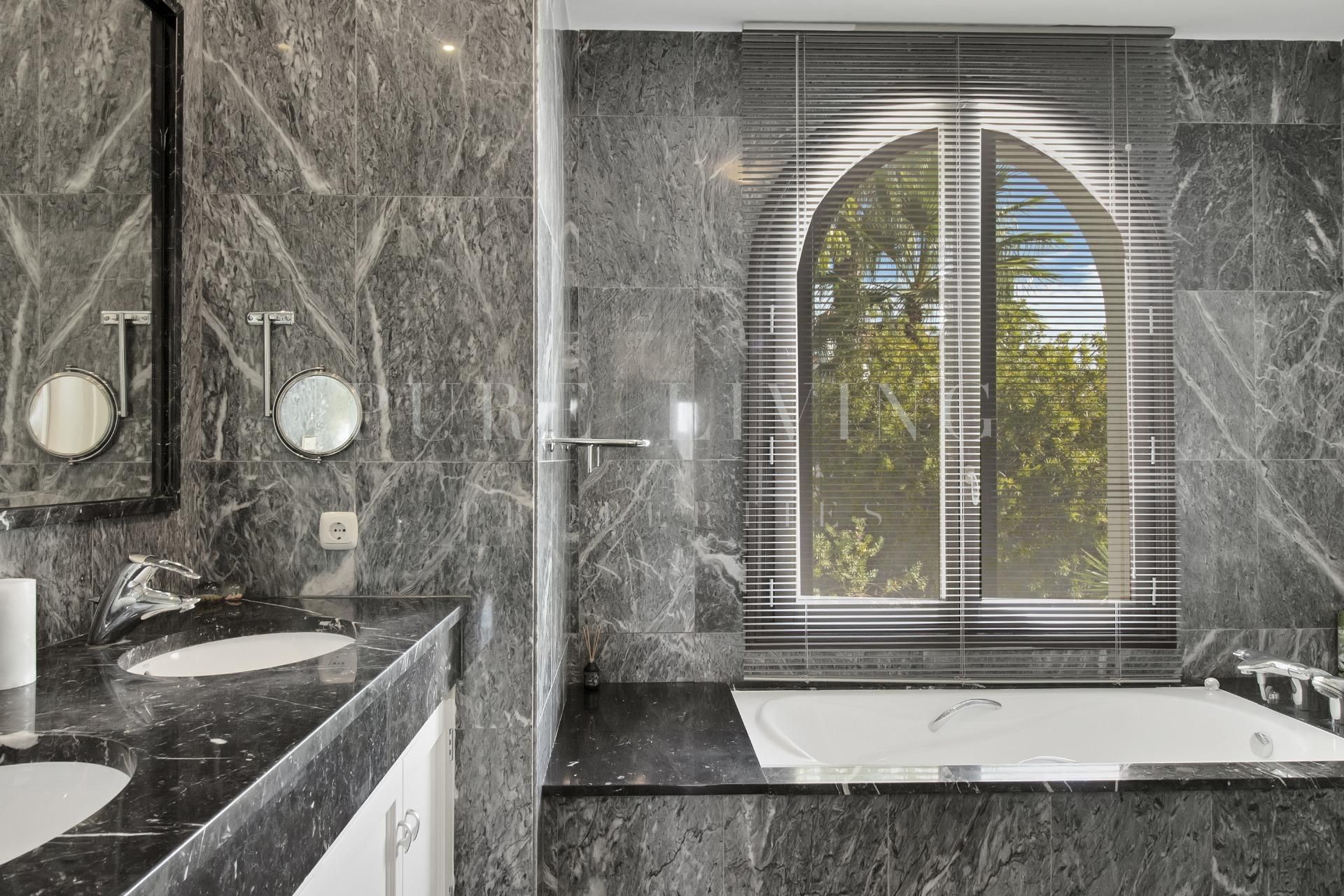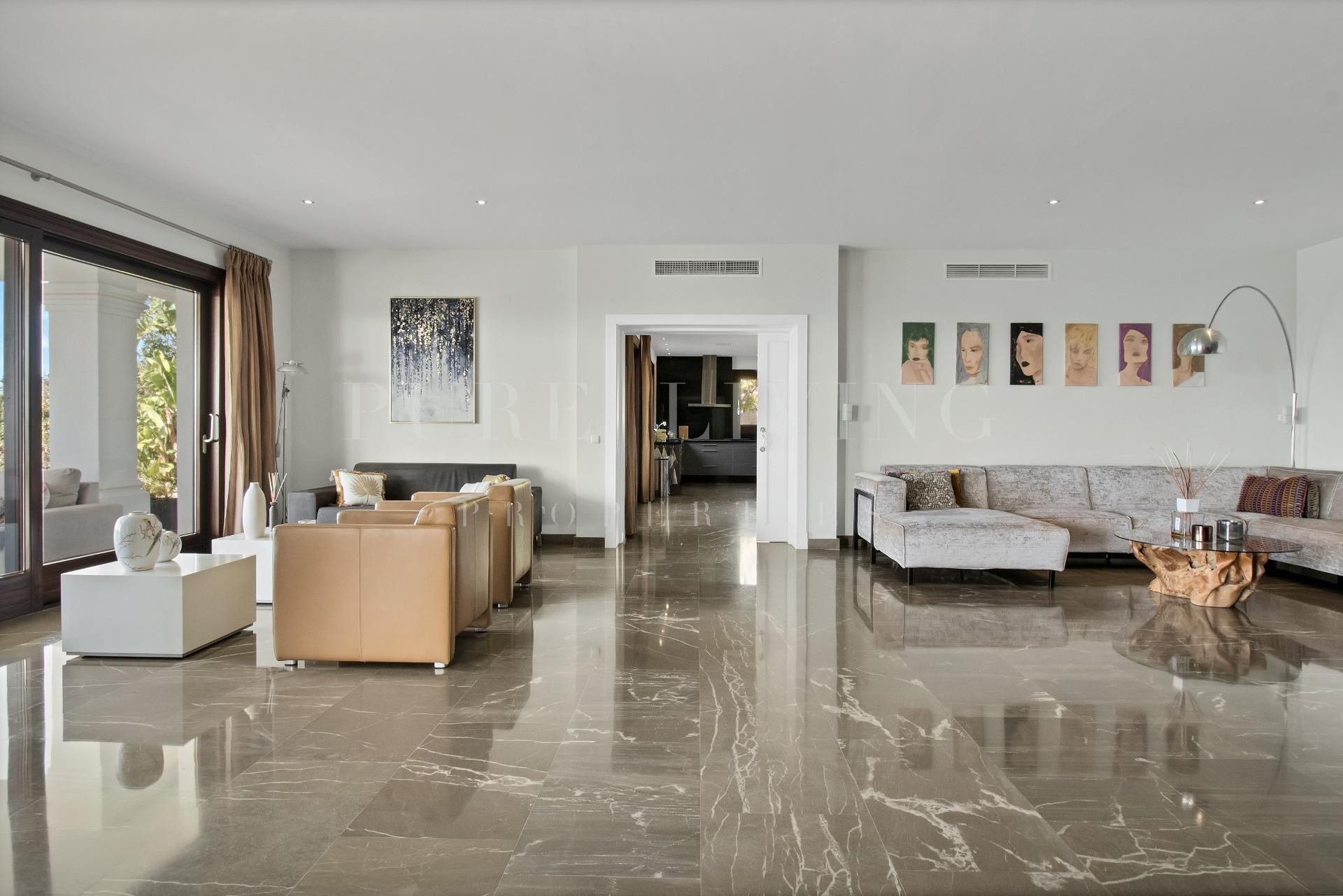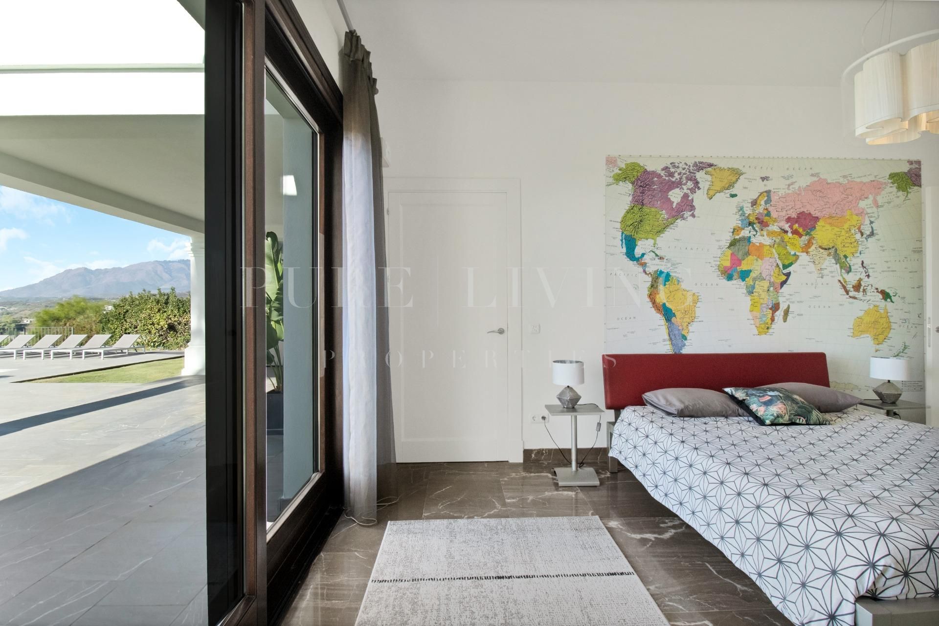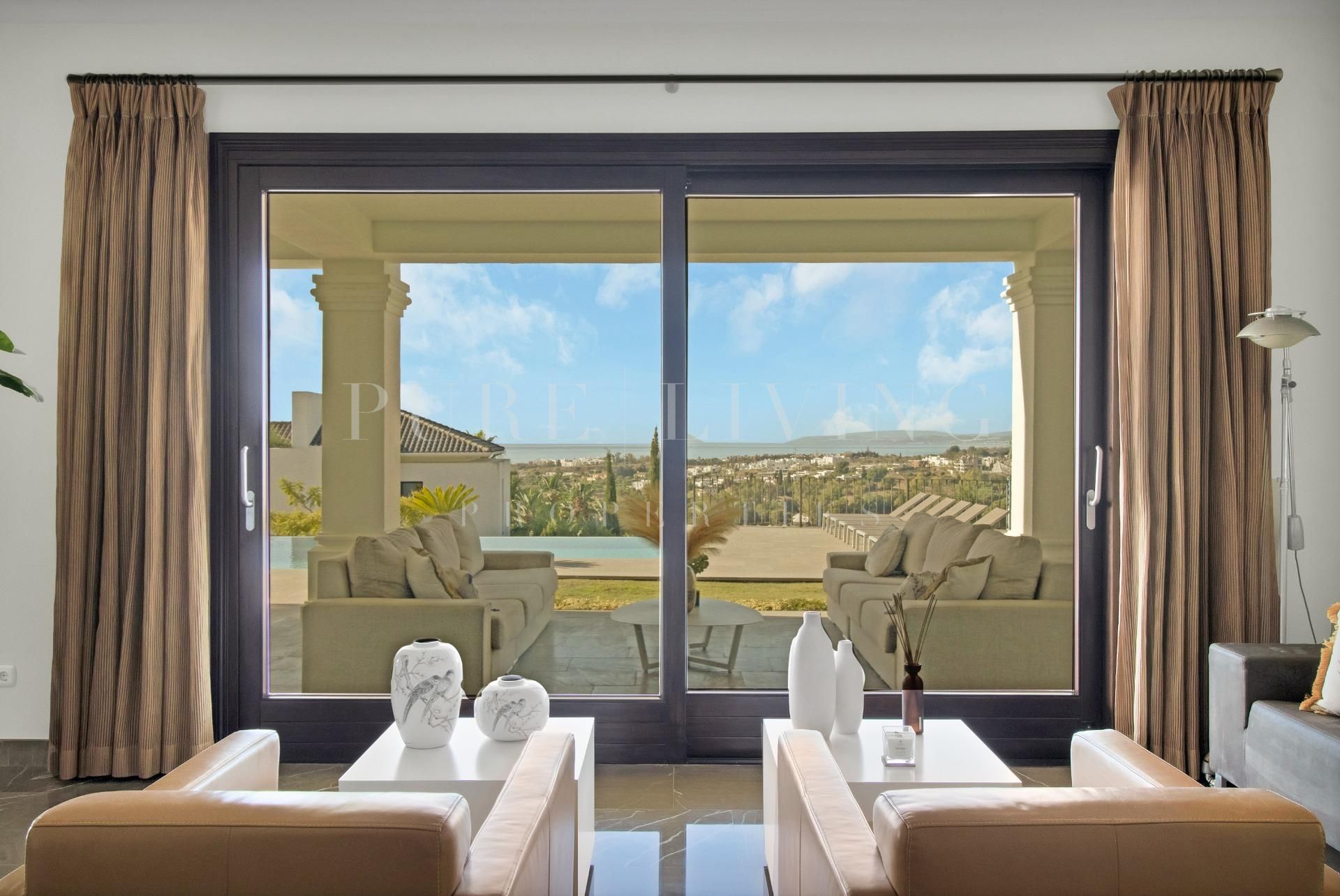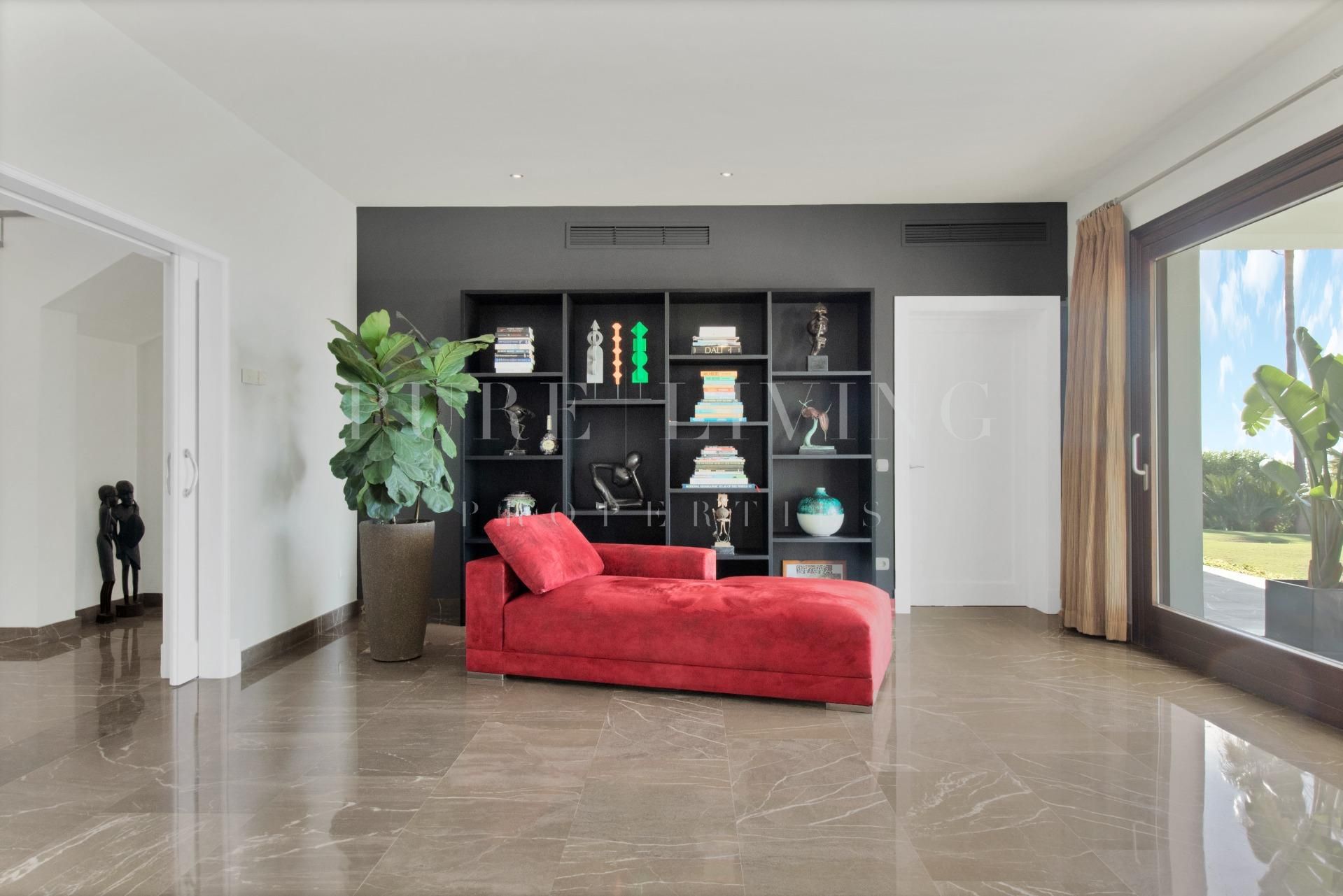 Fantastische luxe villa gelegen in het 5* Golf Resort van Los Flamingos met twee kampioenschaps golfbanen en naast het Hotel Villa Padierna 5*. Deze op het zuiden gelegen woning ligt binnen een omheind complex en biedt een adembenemend uitzicht op de golf, de zee en de bergen.