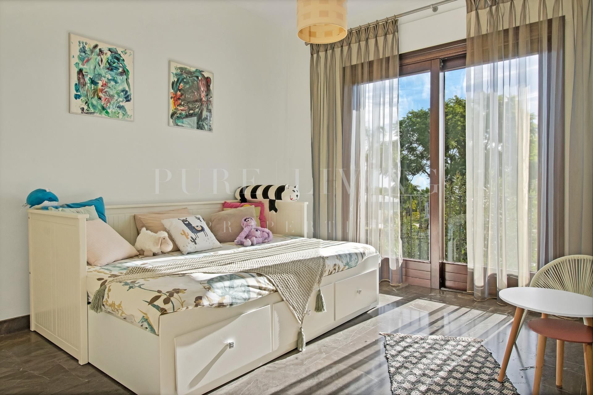 Dicht bij winkels, Dicht bij de stad, Dicht bij scholen, Uitzicht op zee, Vloerverwarming (overal), Gepantserde deur, Overdekt terras, Inbouwkasten, Beveiligde woonwijk, Uitzicht op de tuin, Dicht bij voorzieningen, vervoer dichtbij, airconditioning, Compleet gemeubileerd, Inbouwkeuken, Open haard, Bij de zee/het strand, Dicht bij golfclub, Niet overdekt terras, Glazen deuren, Opslagruimte, Alarm, Meubels optioneel, Dubbele ramen, Uitstekende staat, Eetkamer.
