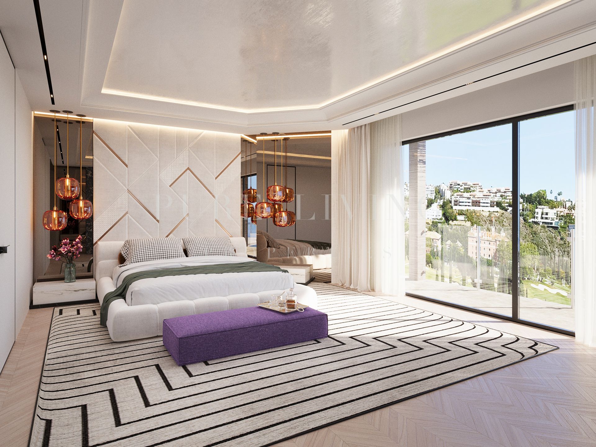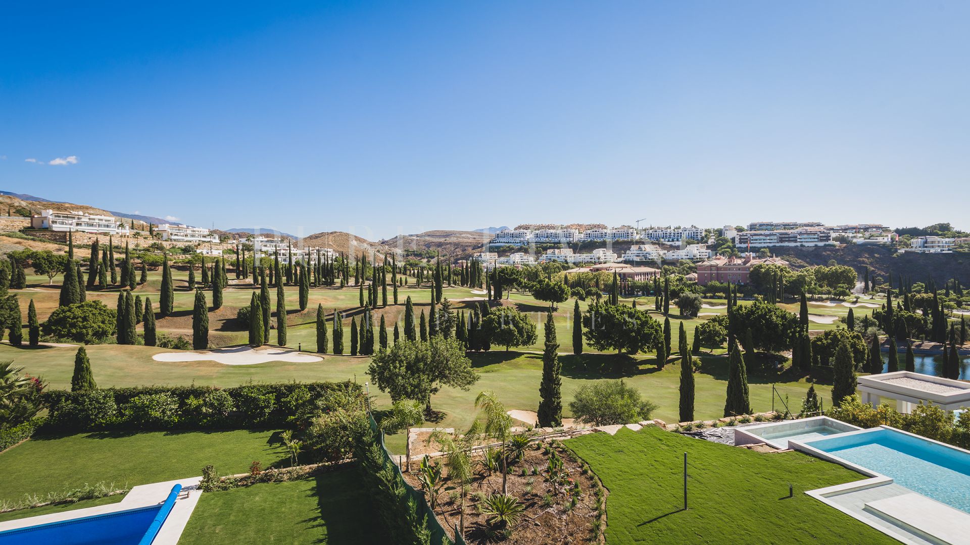 Het interieur van de villa heeft een strak modern design en high-end afwerking, met veel natuurlijk licht dat een lichte en luchtige sfeer creëert, drie grote terrassen met een adembenemend uitzicht op de omliggende golfbaan, waardoor het een ideale plek is voor ontspanning en entertainment.