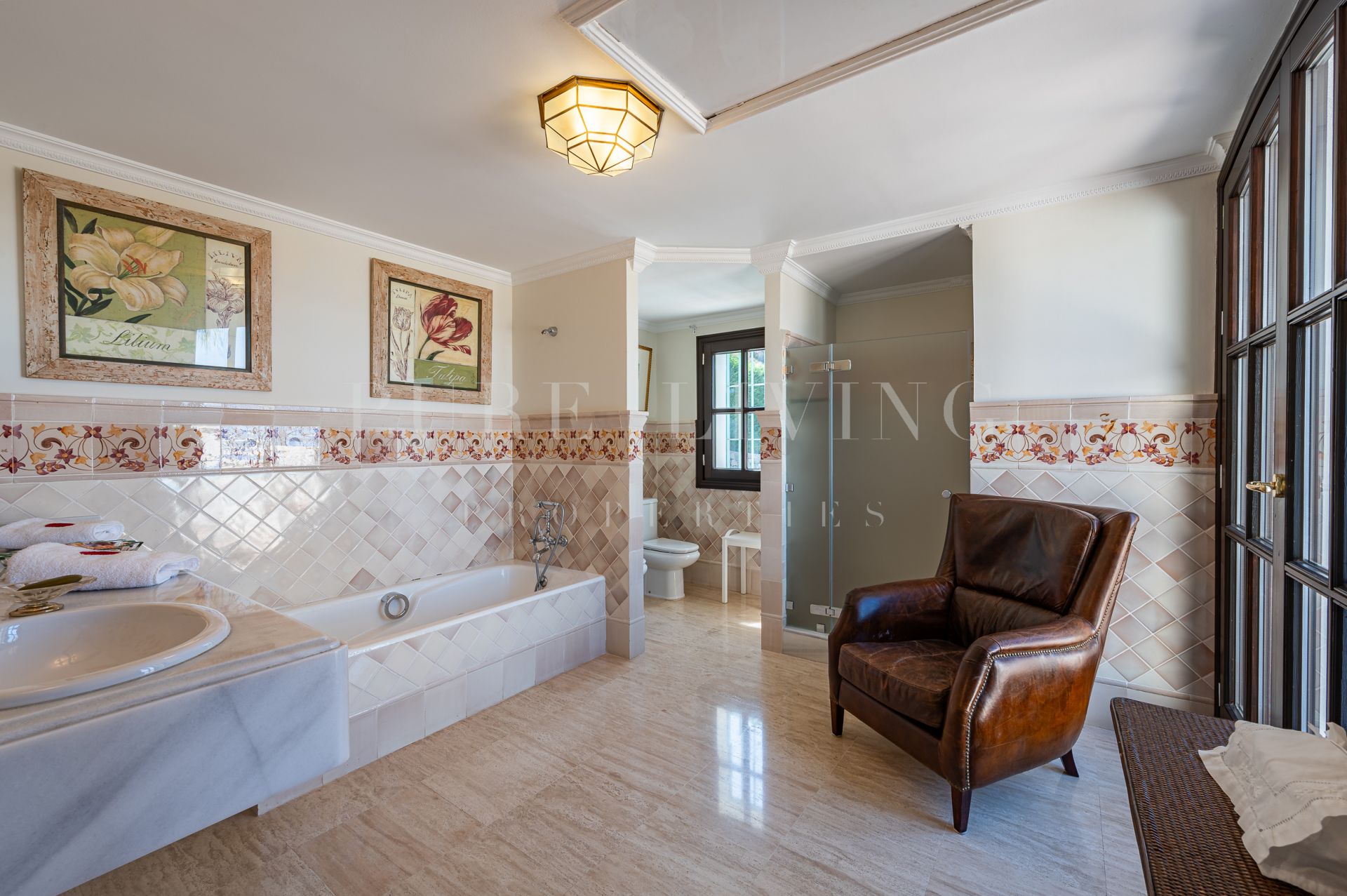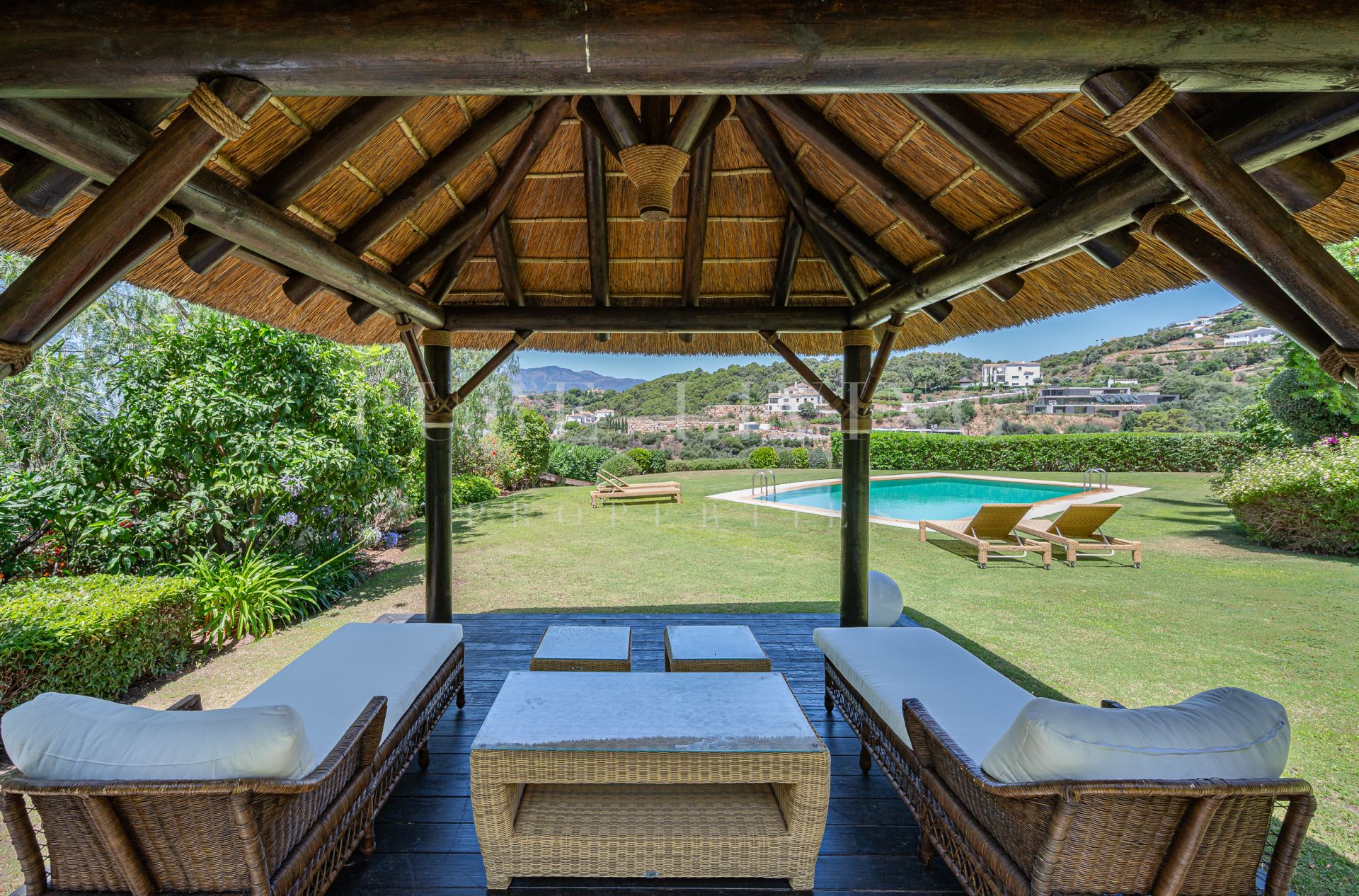 De buitentuinen van La Guapa zijn werkelijk betoverend, dagelijks gemanicuurd en met een bevoorrechte ligging, het perceel is een van de weinige met directe toegang tot de prestigieuze golfbaan die het huis omringt. Het zwembad van 12 × 7 meter, met een groot liggedeelte en een pergola, is perfect om te loungen en te entertainen. Er zijn ook aparte kleedkamers en douches naast het zwembad.
