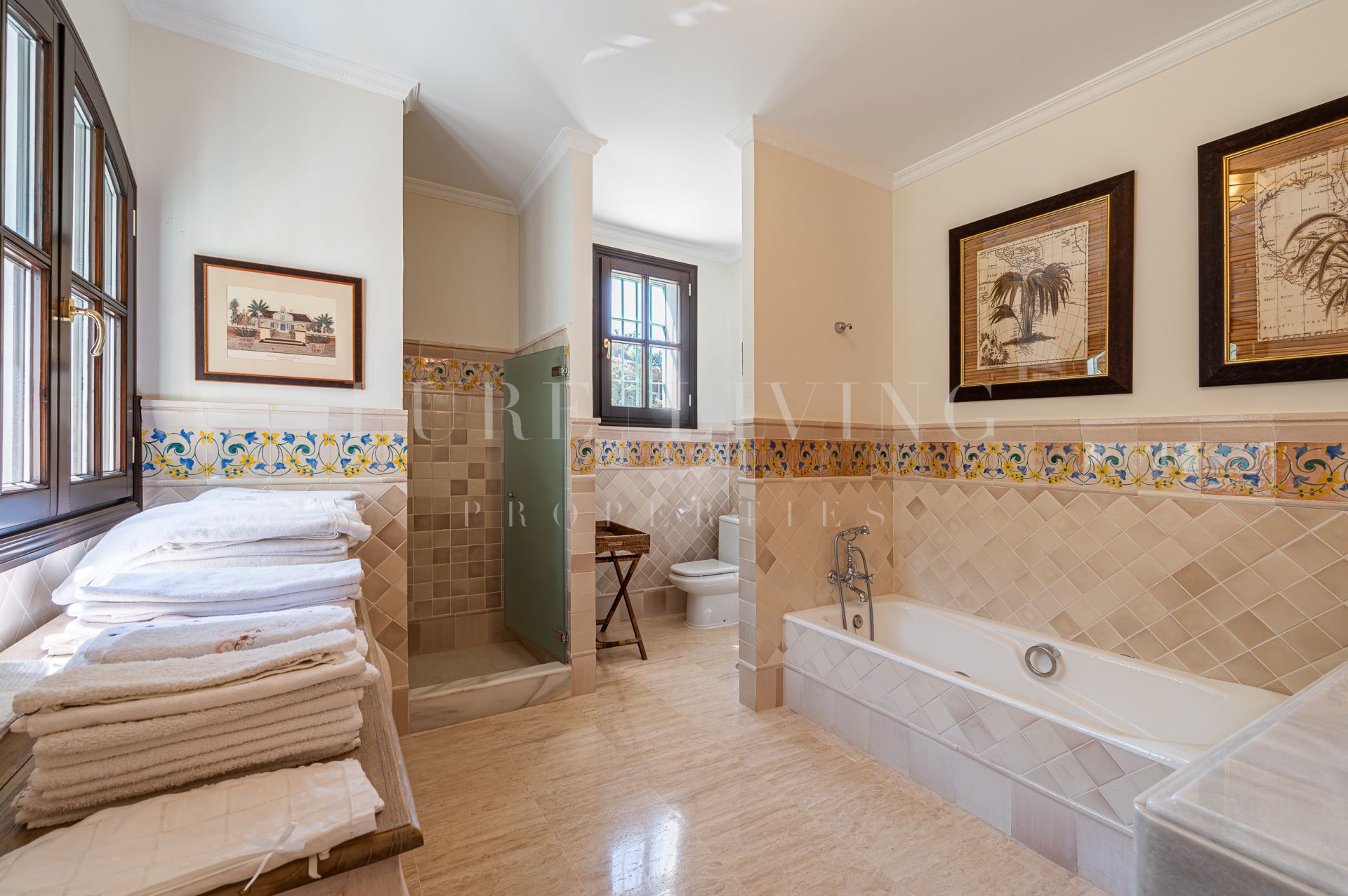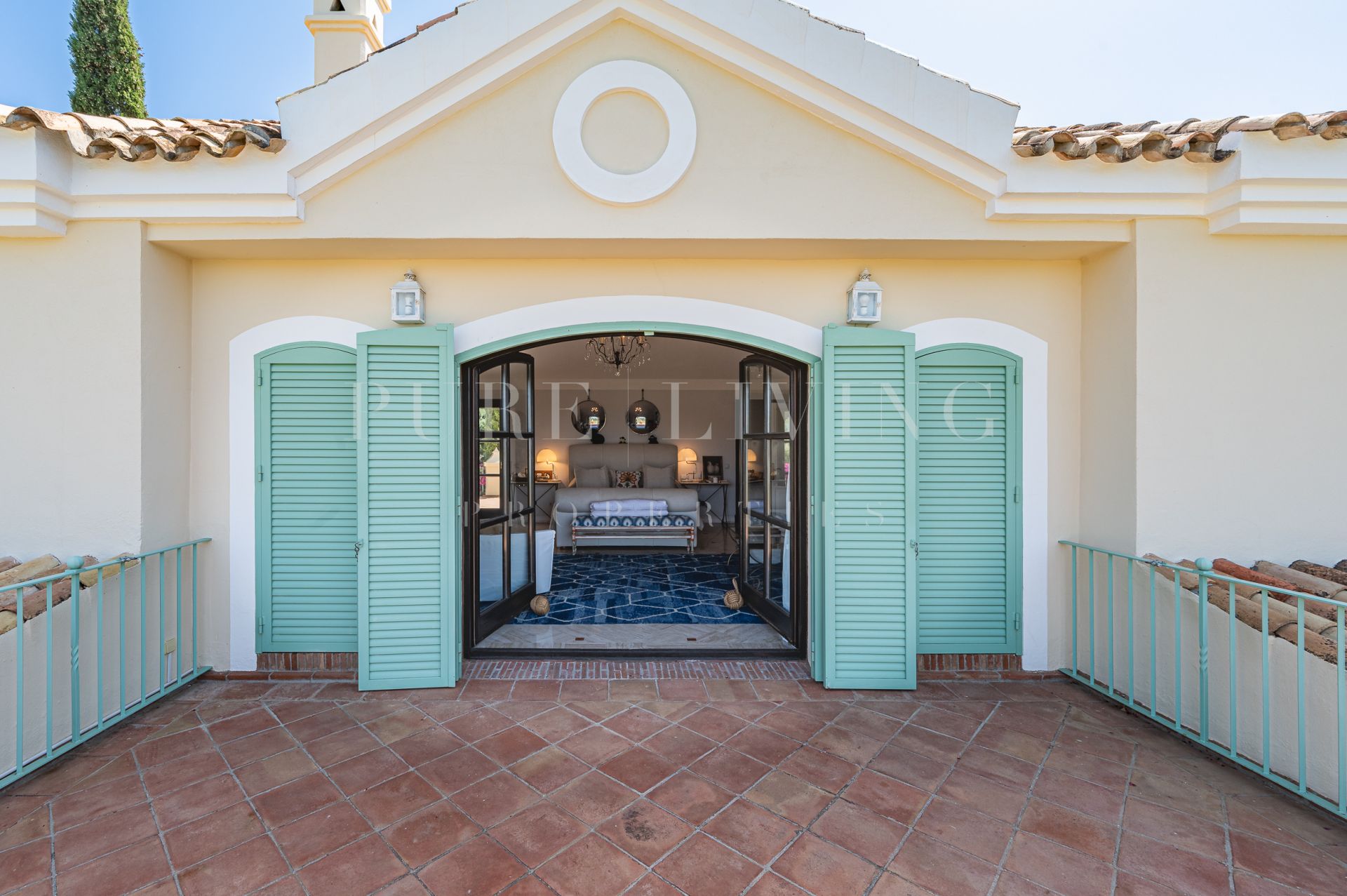 Dit prachtige en elegante Zuid-Spaanse huis is gelegen in de prestigieuze en veilige residentiële gemeenschap van Marbella Club Golf Resort. Casa La Guapa ligt op een bevoorrechte locatie binnen het resort, op het beste perceel in de luxe woonwijk, met prachtig panoramisch uitzicht en directe toegang tot de golfbaan vanaf het huis.