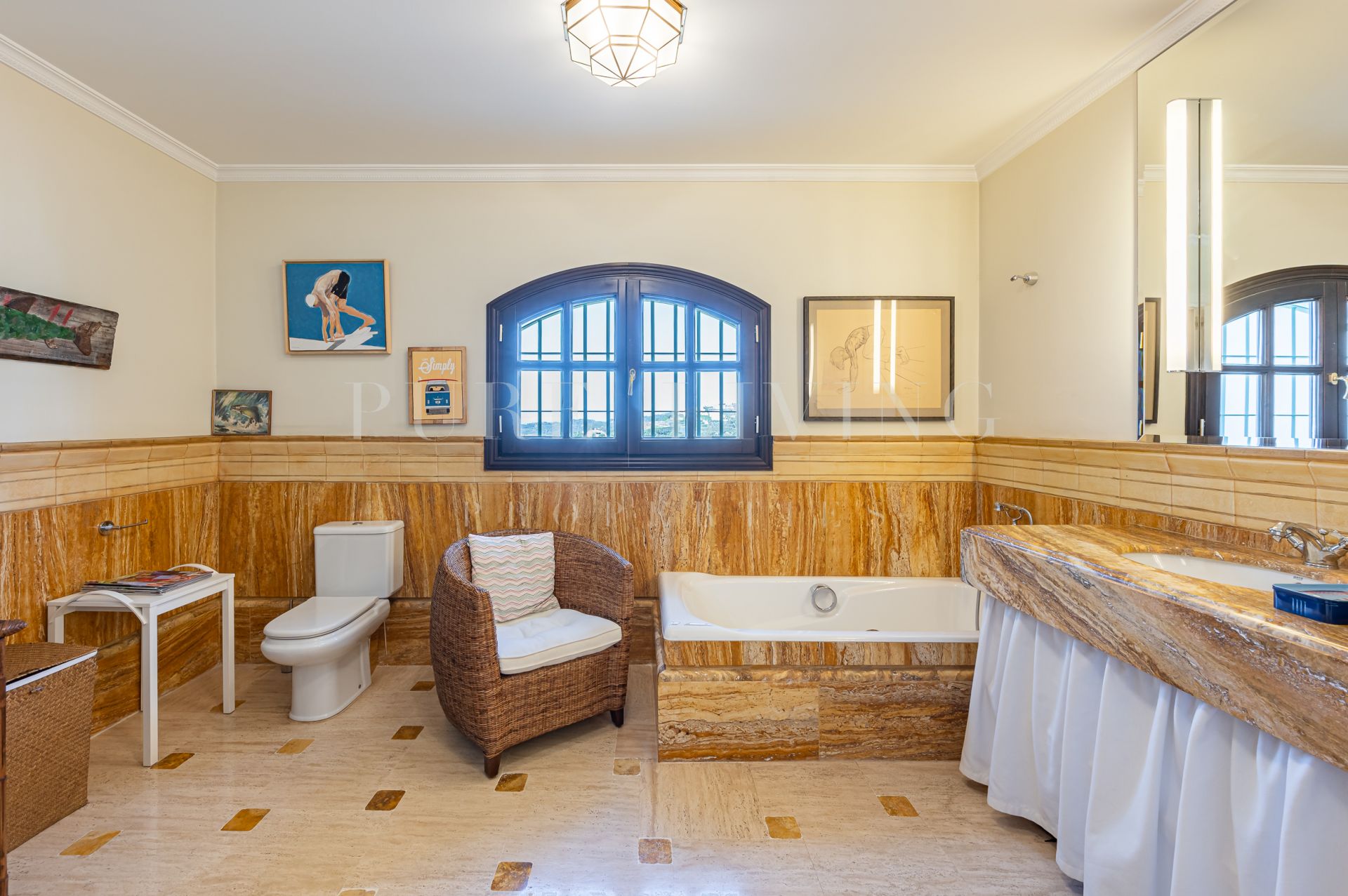 Uitzicht op zee, Bewakingscamera's, Uitzicht over land, Binnen Golf Resort, Kantoor, Vloerverwarming (overal), Automatisch irrigatiesysteem, Beveiliging rolluiken, Domoticasysteem, Dolby Stereo Surround System, 24 uur per dag Service, Beveiligde woonwijk, Uitzicht op de tuin, Frontlijn golf, Bioscoop, airconditioning, Wijnkelder, Bijkeuken, Open haard, Kelder, Speelkamer, Glazen deuren, Gasten slaapkamer, Opslagruimte, Alarm, Meubels optioneel, Ingang beveiliging, Dubbele ramen, Video ingang, Uitstekende staat, Eetkamer.