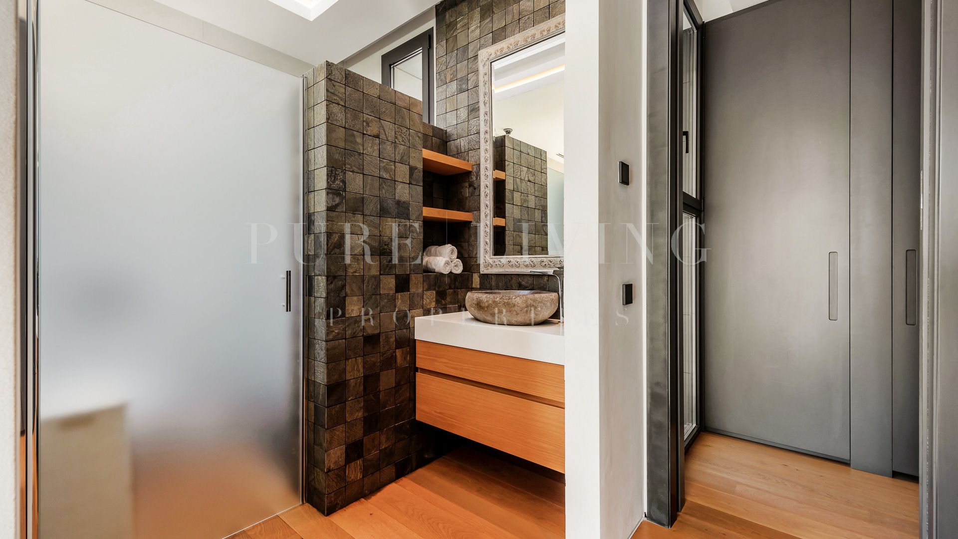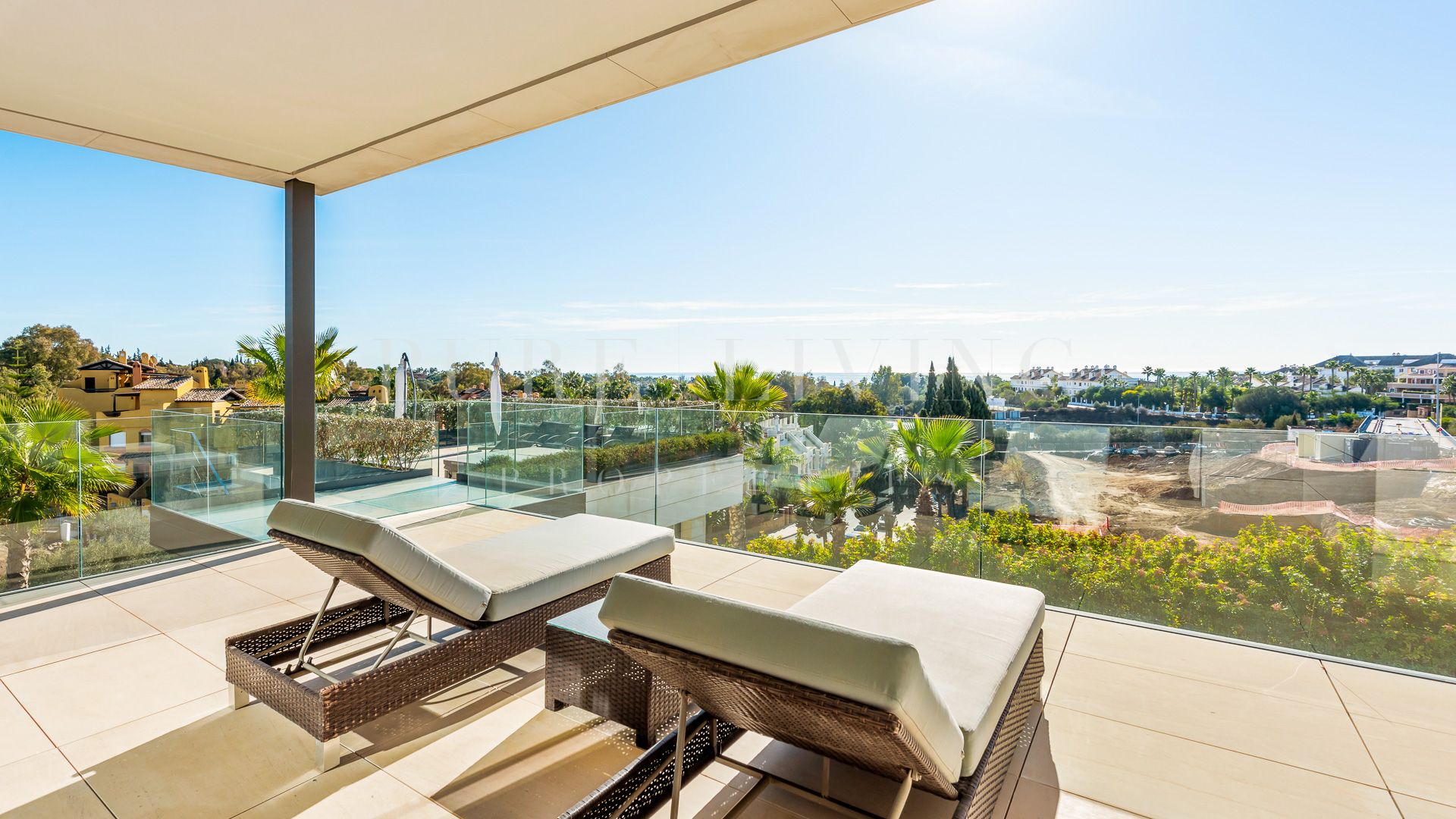 Ontdek het toppunt van luxe wonen in deze gloednieuwe residentie gelegen aan Marbella’s prestigieuze Golden Mile. Met een perfecte mix van moderne elegantie en verfijning biedt deze woning een heiligdom van comfort met een schat aan functies.