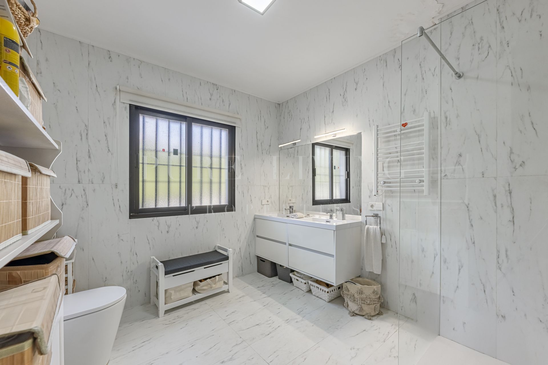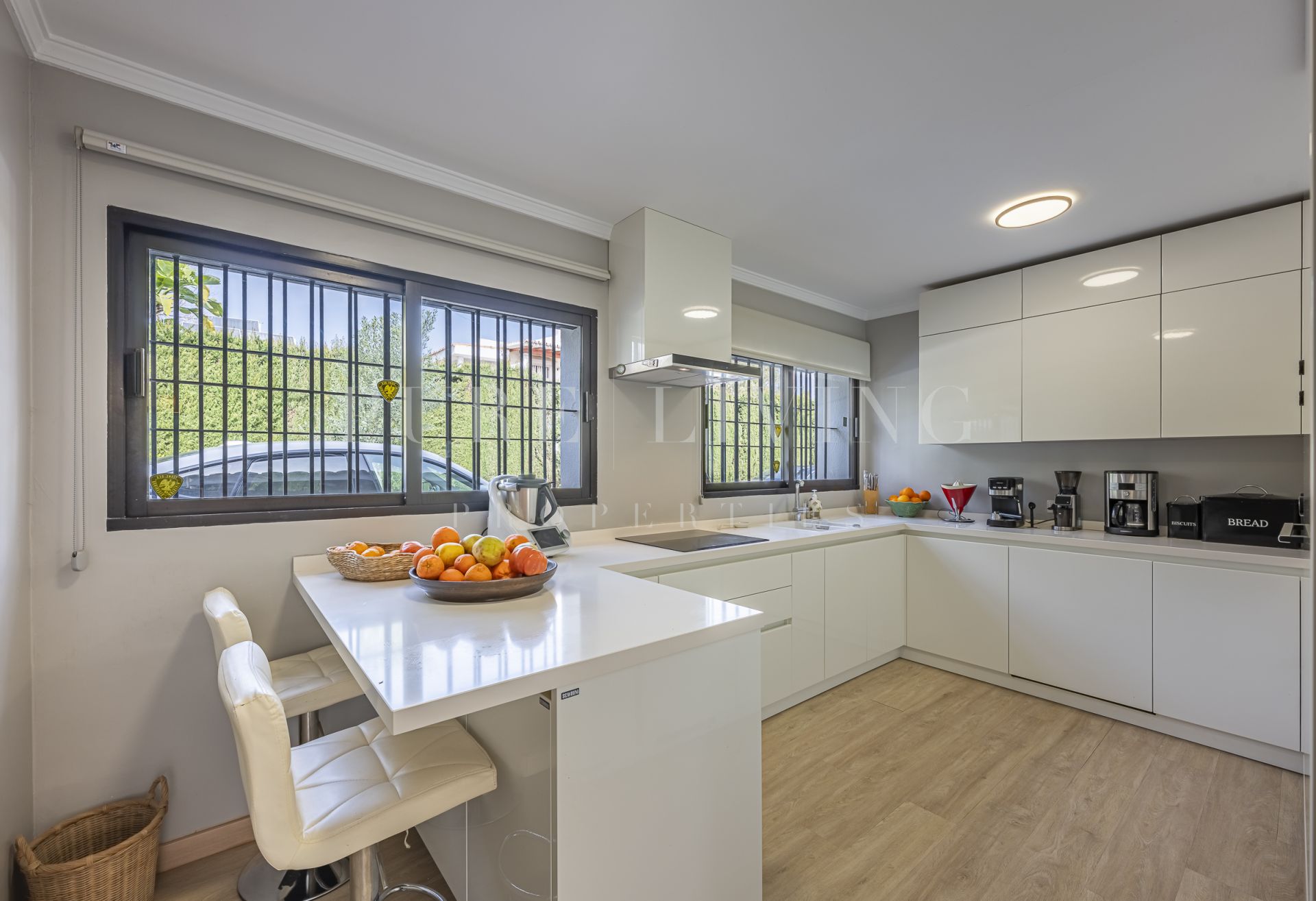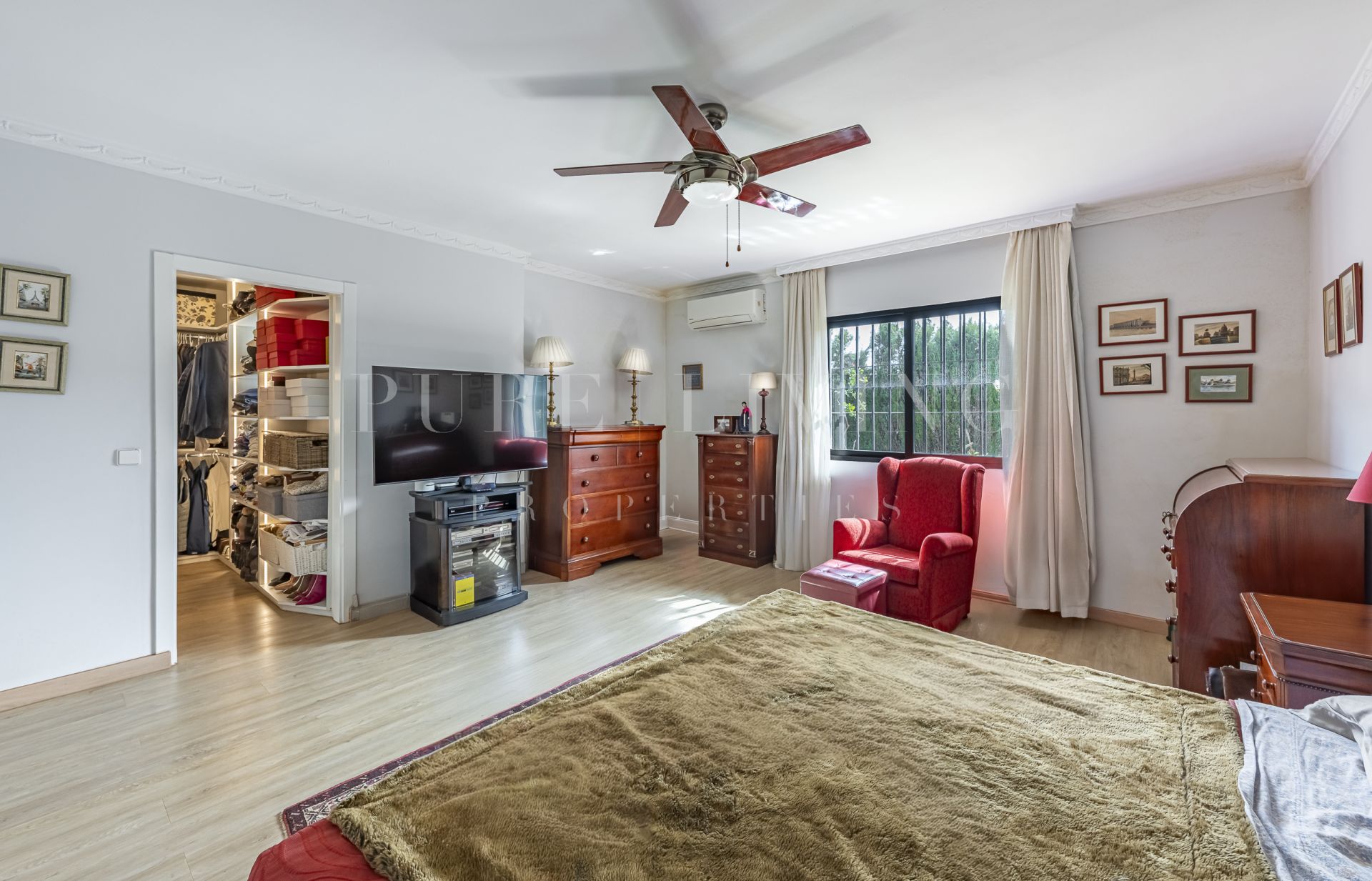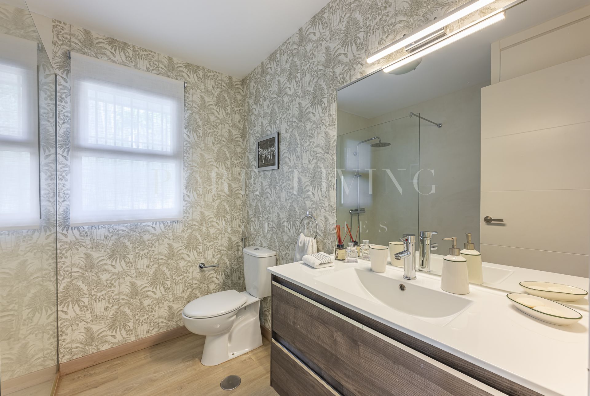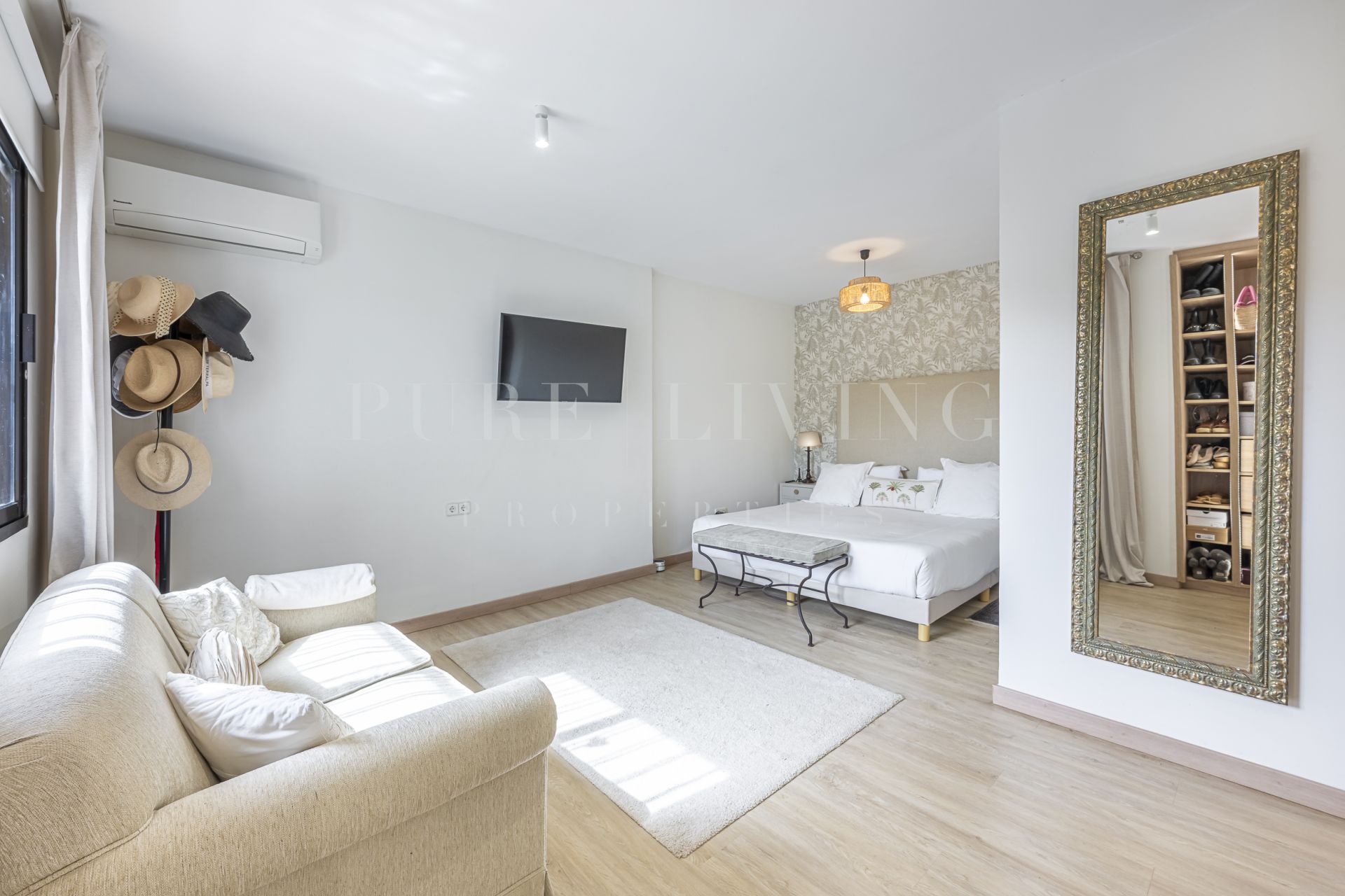 De villa beschikt over een lichte en ruime woonkamer met grote glazen deuren die uitkomen op een privéterras, waardoor een naadloze overgang tussen binnen en buiten ontstaat. Een aparte eetkamer en prachtige parket- en houten vloeren zorgen overal voor warmte en elegantie. Alle slaapkamers zijn royaal bemeten, inclusief een goed ingerichte gastenkamer.