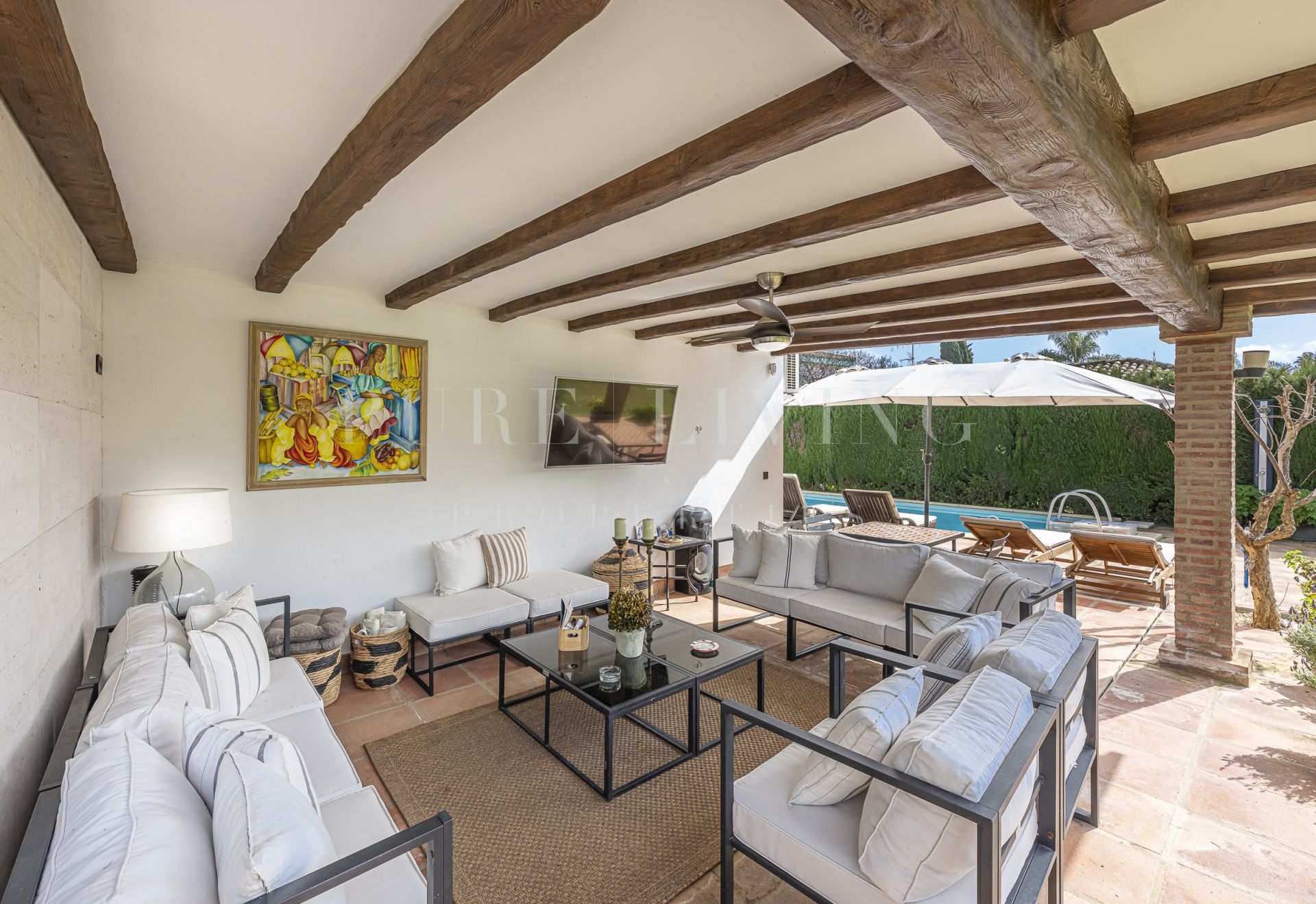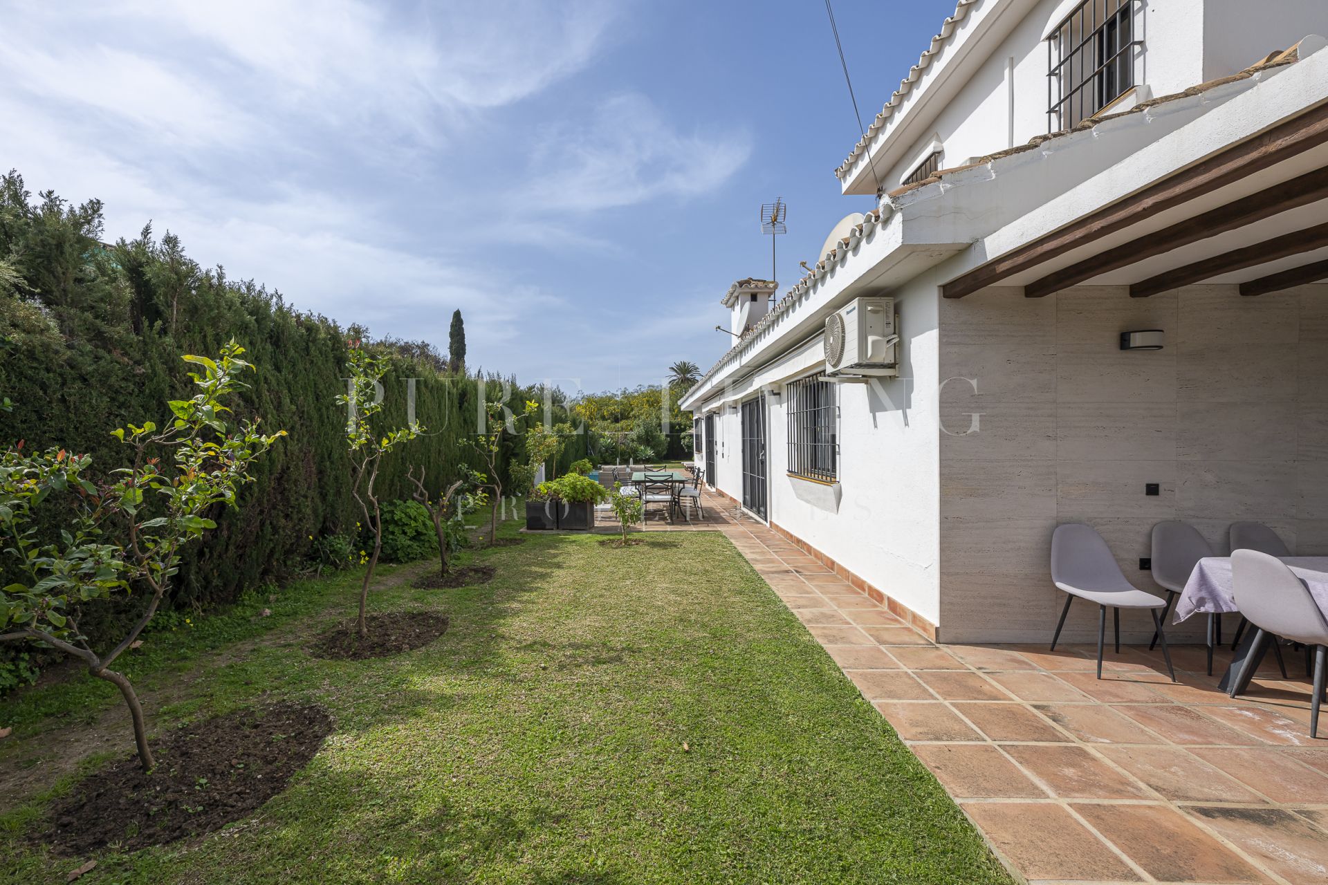Gelegen in een van de meest prestigieuze gebieden aan de kust, biedt deze elegante villa met 5 slaapkamers en 5 badkamers een verfijnde woonervaring op slechts enkele minuten van het strand, golfbanen en alle essentiële voorzieningen.