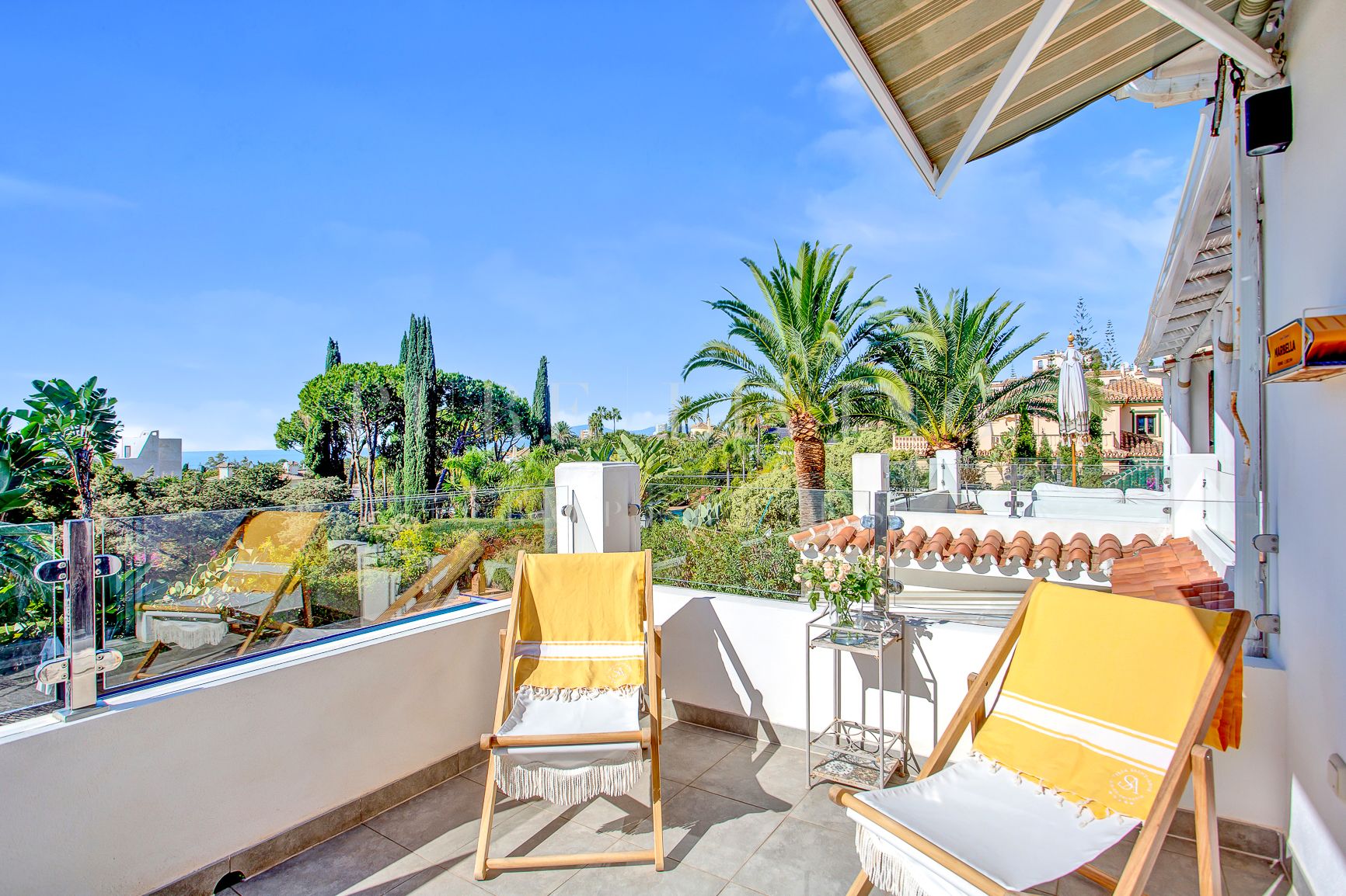 Dicht bij de zee, golfbanen en lokale voorzieningen, biedt deze villa de perfecte balans tussen luxe wonen en de nabijheid van het bruisende leven in Marbella. Of het nu als gezinswoning of als B&B wordt gebruikt, dit pand is een uitstekende kans om te genieten van of te investeren in de exclusieve levensstijl van Marbella, waarbij elegantie, comfort en veelzijdigheid samenkomen op een toplocatie.