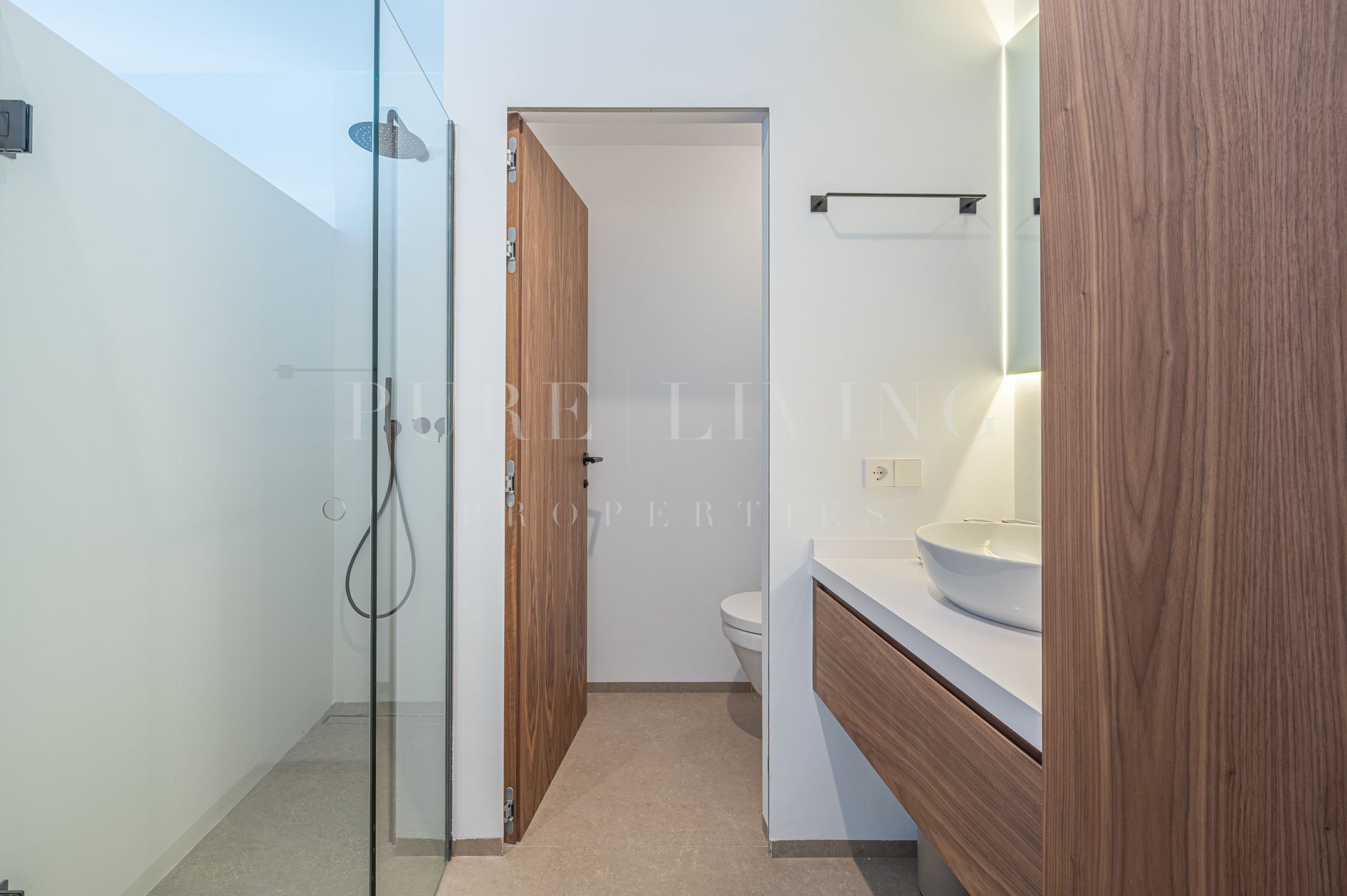 Geniet van het prachtige uitzicht op de tuin en het zwembad vanaf het balkon op het westen, perfect voor de middagzon. Het appartement beschikt ook over hoge plafonds en LED-verlichting, wat bijdraagt aan de ruime en moderne sfeer.