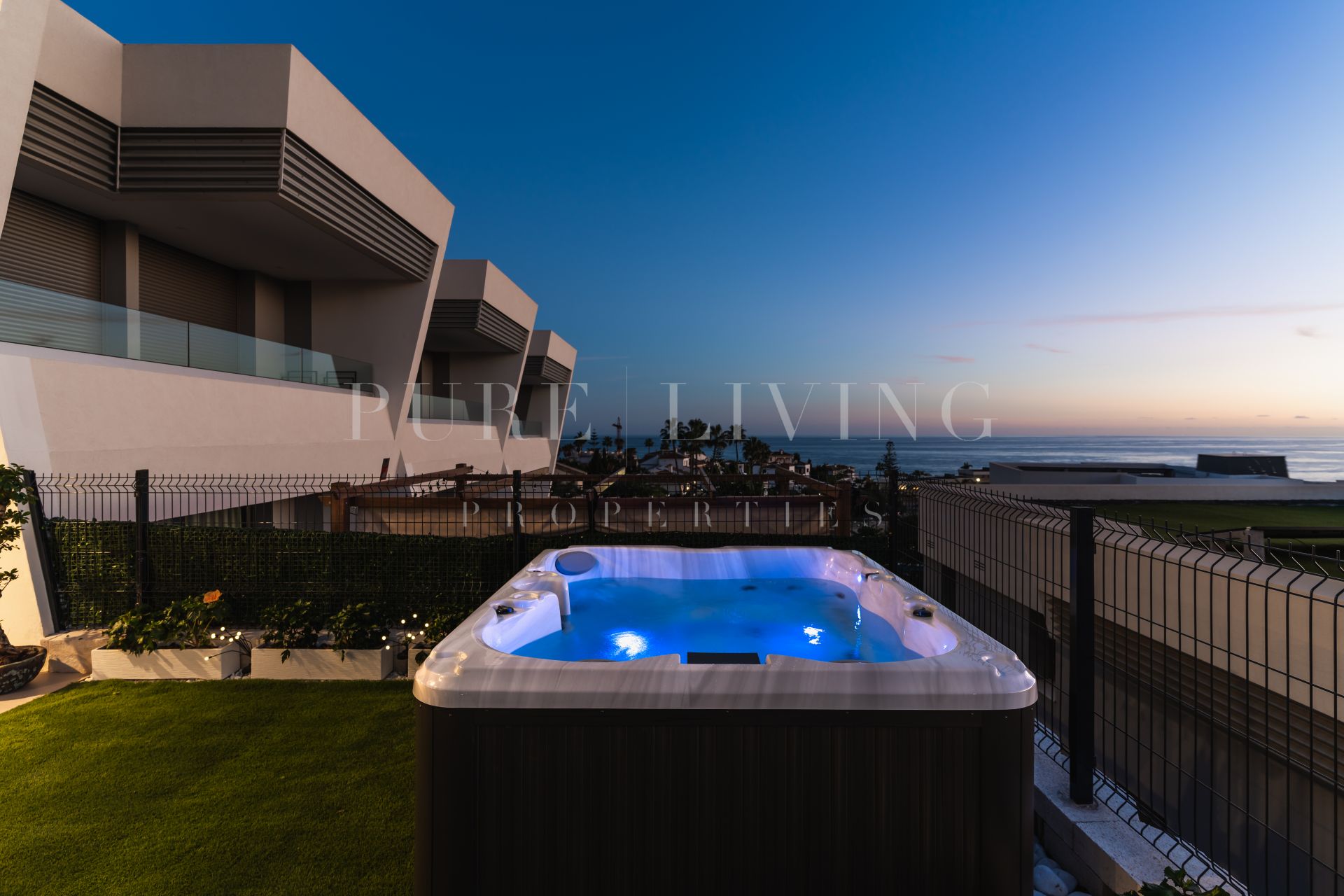 Halfvrijstaande villa met drie slaapkamers en uitzicht op zee en bergen in een exclusief resort in Mijas Costa