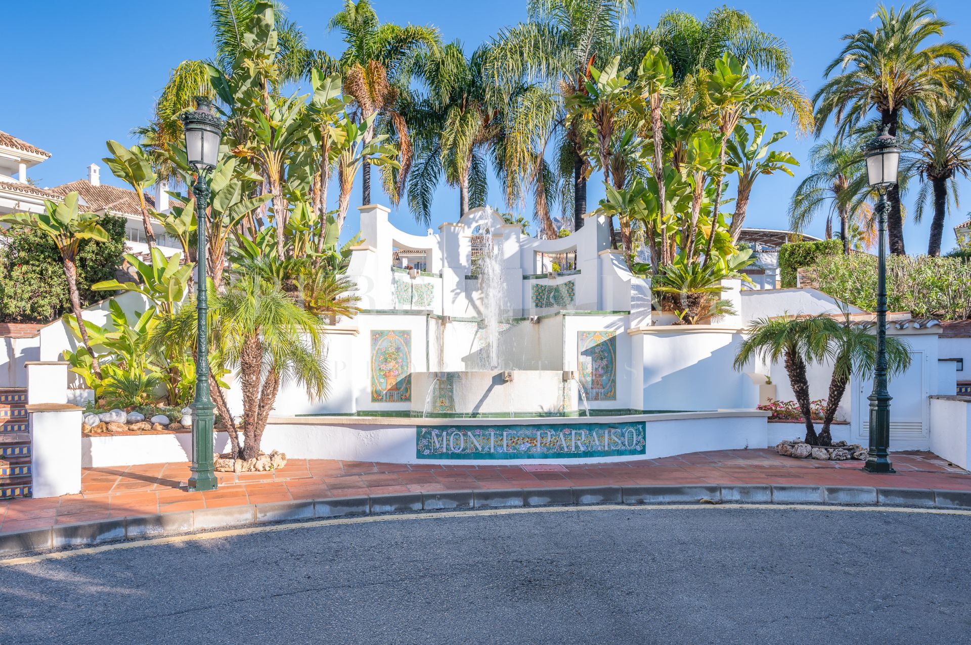 Omringd door prachtig aangelegde tuinen, fonteinen en beelden, heeft elk gebouw in Monte Paraíso zijn eigen kenmerkende naam en elegante entree, waardoor dit een van de mooiste en meest prestigieuze gated communities aan de Golden Mile van Marbella is.