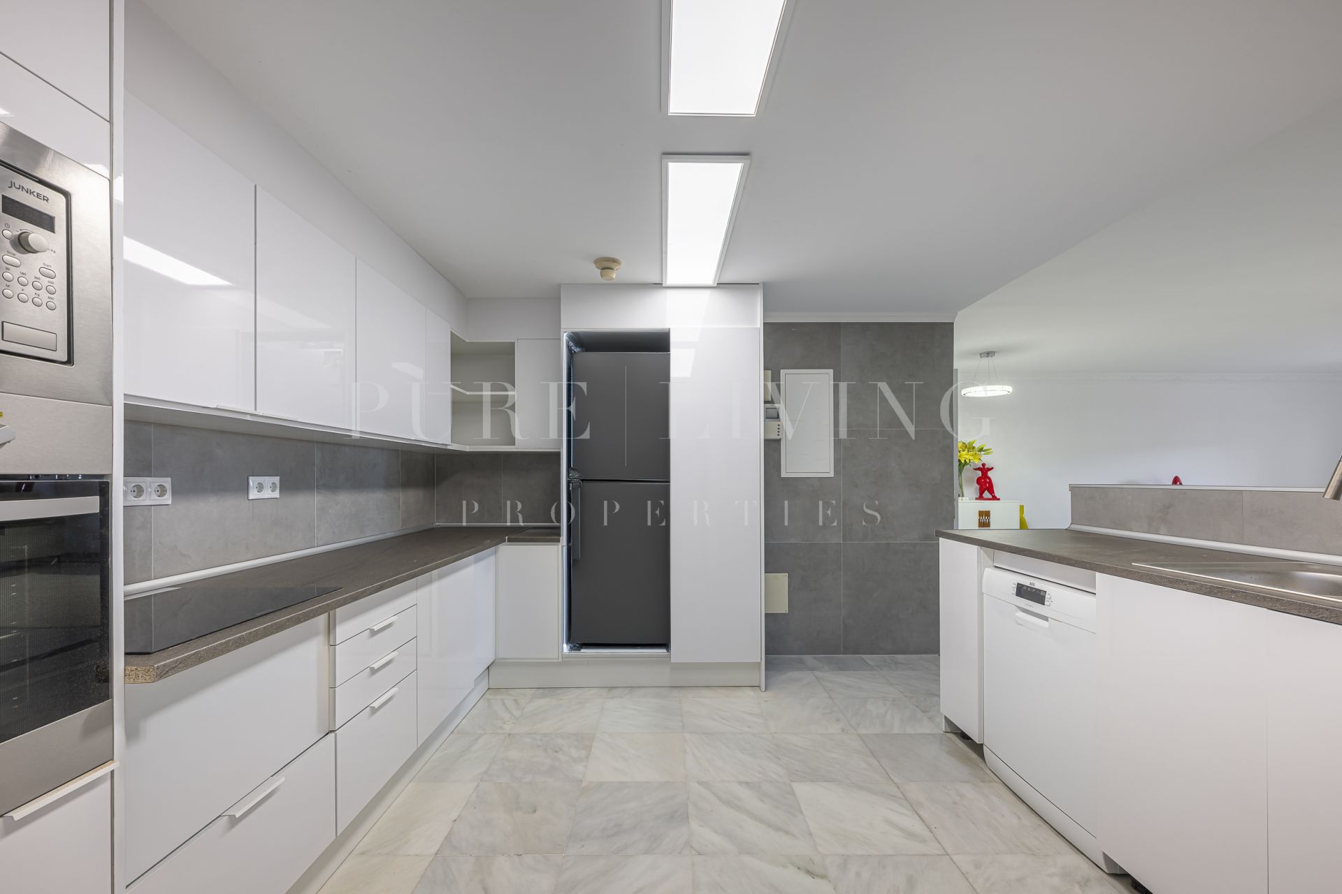 Het appartement beschikt over drie ruime slaapkamers met inbouwkasten, waaronder een master suite met en-suite badkamer, een volledig uitgeruste keuken met een aparte wasruimte en een lichte, open woon- en eetkamer met veel natuurlijk licht.