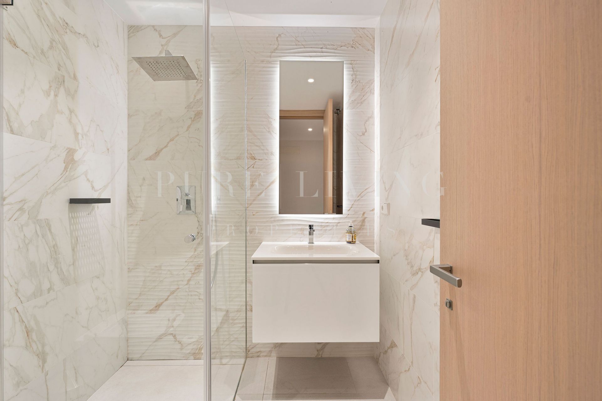 Op de eerste verdieping vindt u twee extra slaapkamers. De master bedroom heeft een en-suite badkamer en een privéterras met gedeeltelijk zeezicht. De tweede slaapkamer wordt bediend door een aparte, stijlvol afgewerkte badkamer. Elke ruimte is zorgvuldig ontworpen met oog voor comfort, lichtinval en privacy.