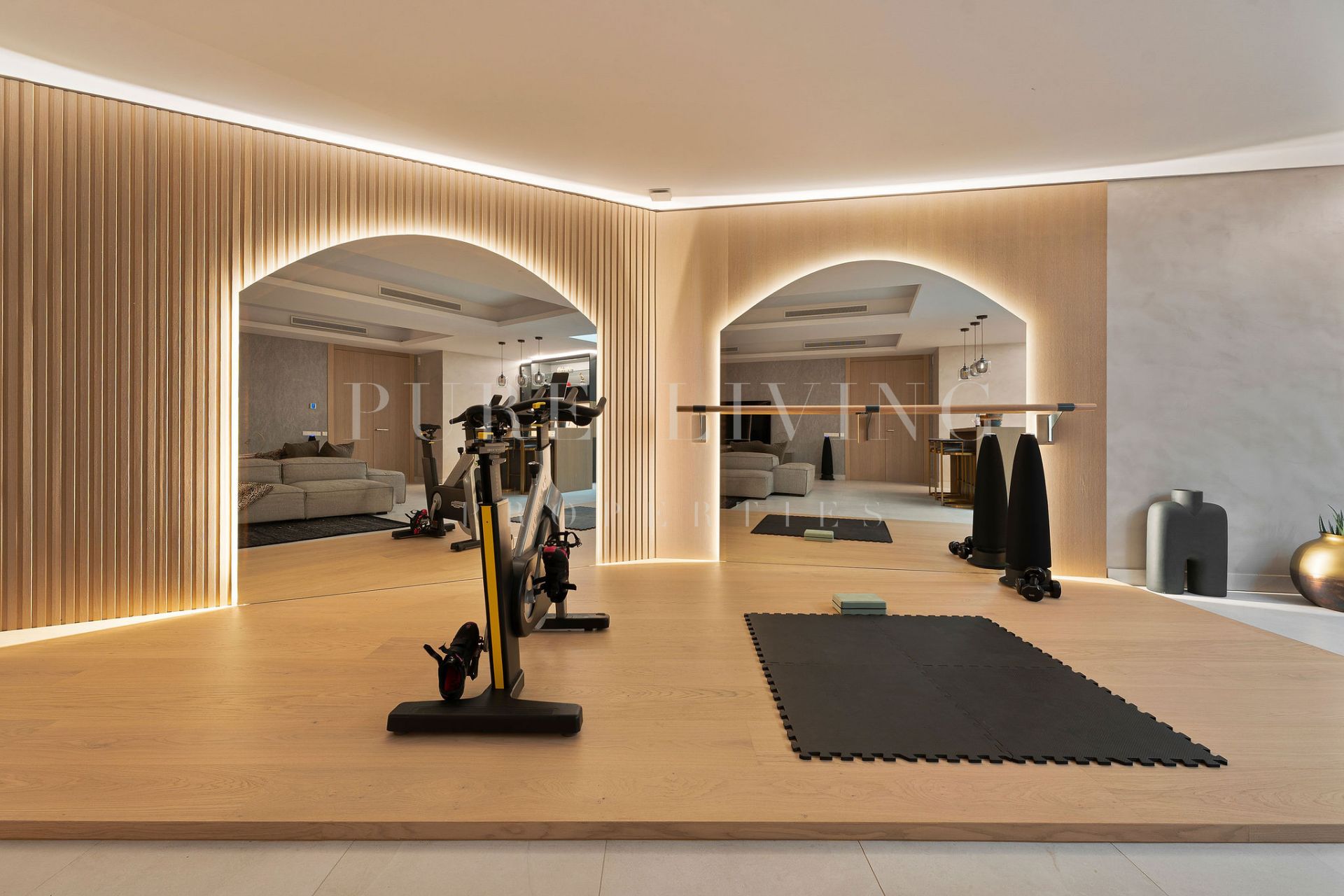 Het souterrain biedt extra leefruimte met een vierde slaapkamer en aparte badkamer, een multifunctionele familieruimte, een volledig uitgeruste fitnessruimte, wasruimte en berging — ideaal voor permanent wonen of een langer verblijf.
