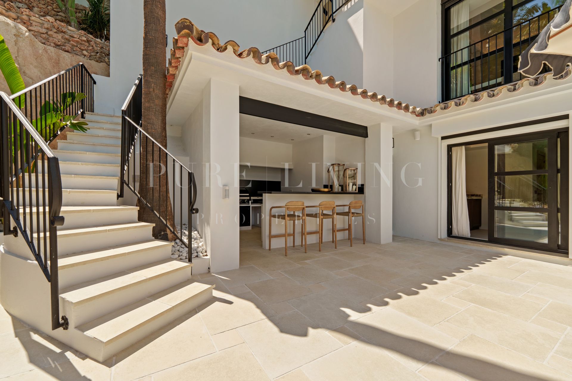 Deze prachtige villa is gelegen in het hart van Nueva Andalucía, op slechts enkele minuten van gerenommeerde golfbanen, Puerto Banús en de beste restaurants en winkels van Marbella. De woning biedt een perfecte combinatie van moderne luxe en mediterrane charme, met panoramisch uitzicht op de Middellandse Zee en de iconische La Concha-berg.