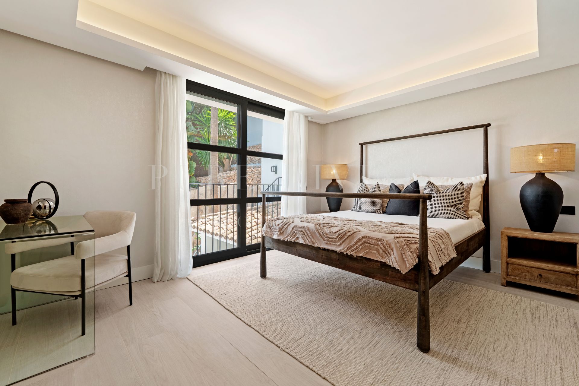 De villa bestaat uit zes ruime slaapkamers en zeven stijlvol afgewerkte badkamers, allemaal gebouwd met materialen van topkwaliteit. De open leefruimtes sluiten naadloos aan op zonnige terrassen, waardoor binnen- en buitenleven moeiteloos in elkaar overlopen. De moderne, lichte keuken is uitgerust met hoogwaardige apparatuur en is ideaal voor zowel gezellige familiemaaltijden als het ontvangen van gasten.