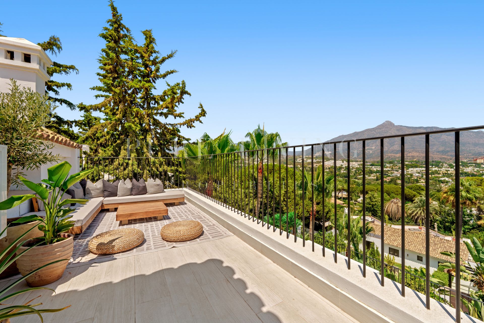 Ontdek uw perfecte familievluchtplaats – ruim, stijlvol en gelegen in het prachtige hart van Nueva Andalucía met adembenemend zee- en bergzicht. Uw droomhuis wacht