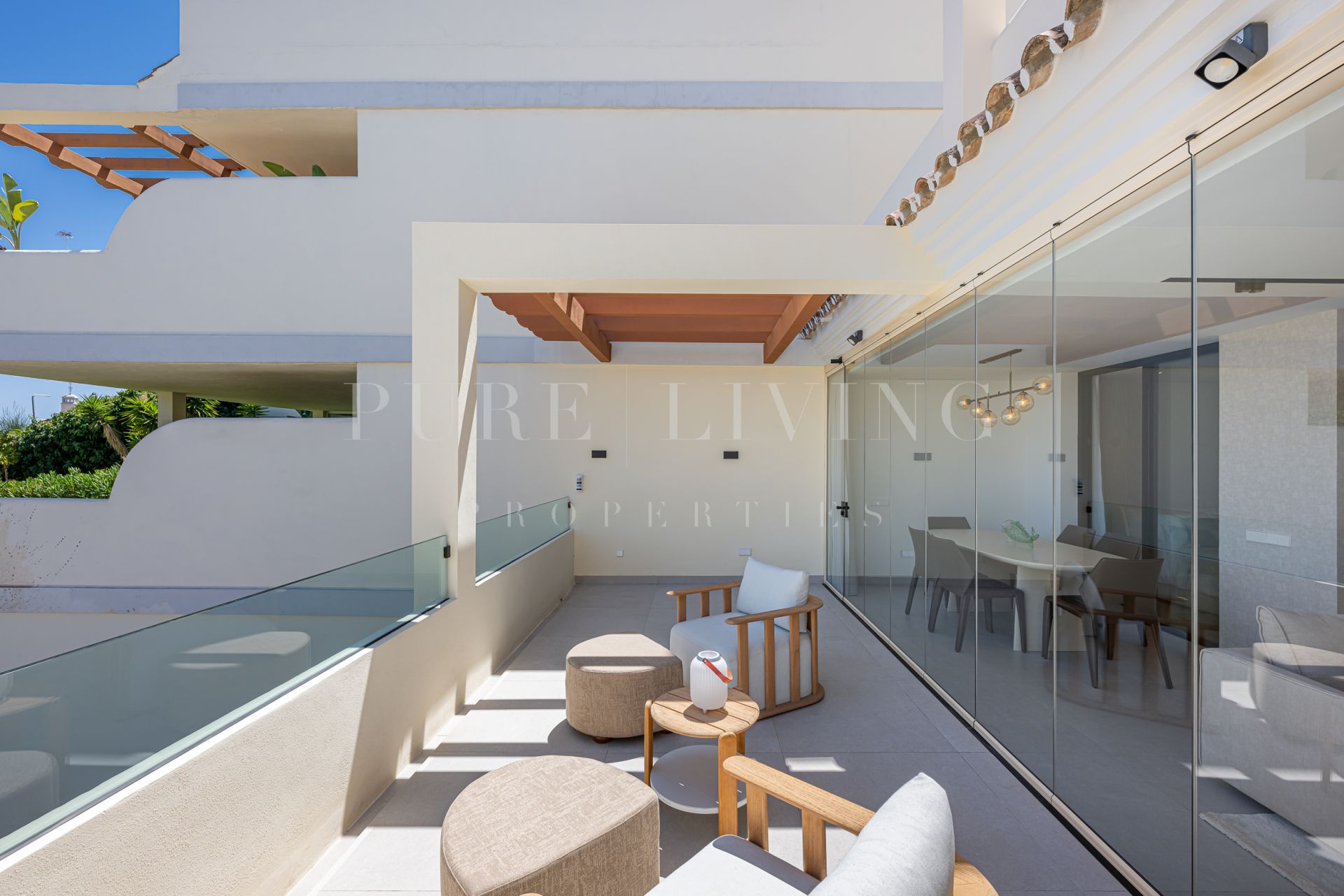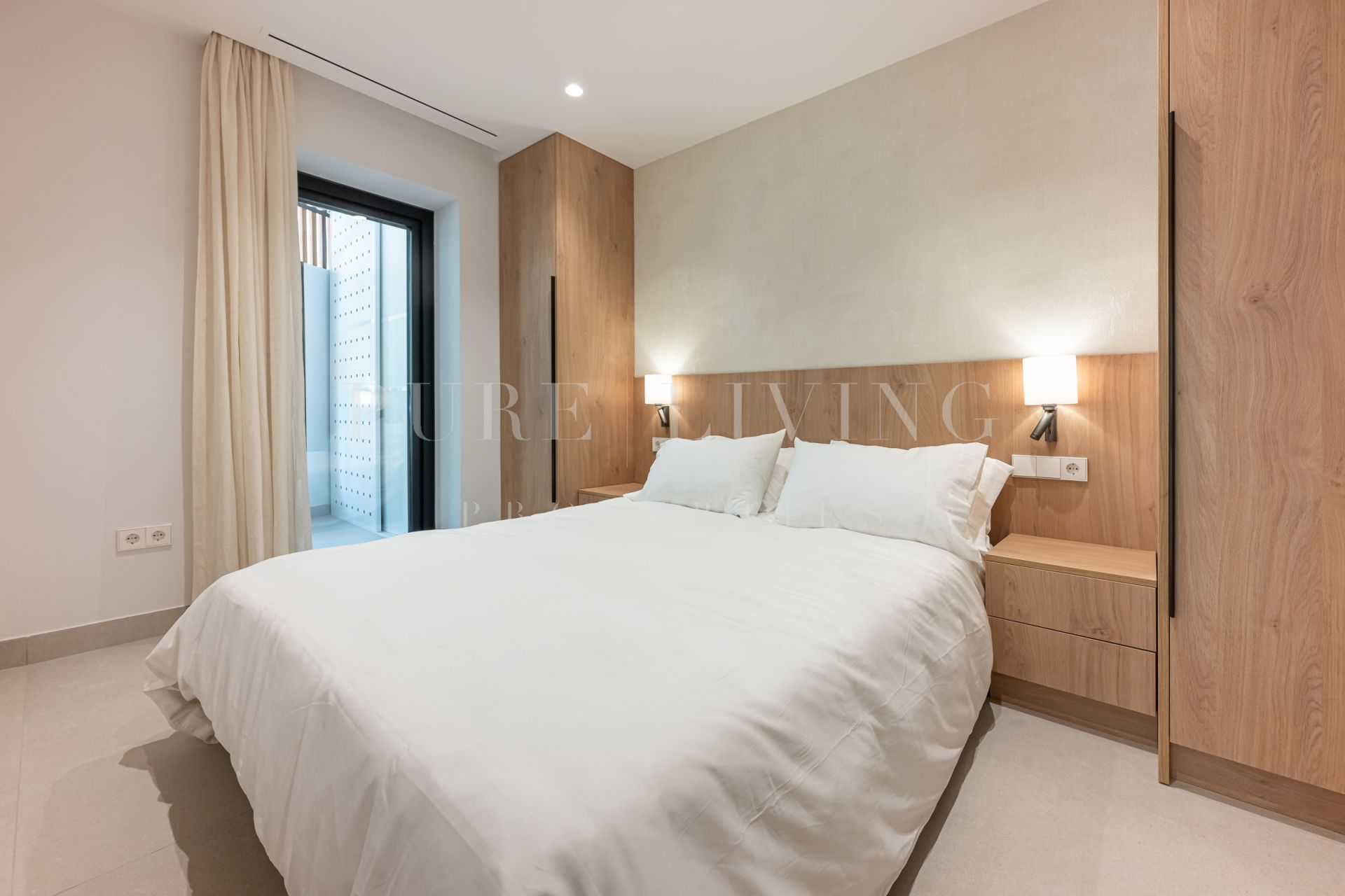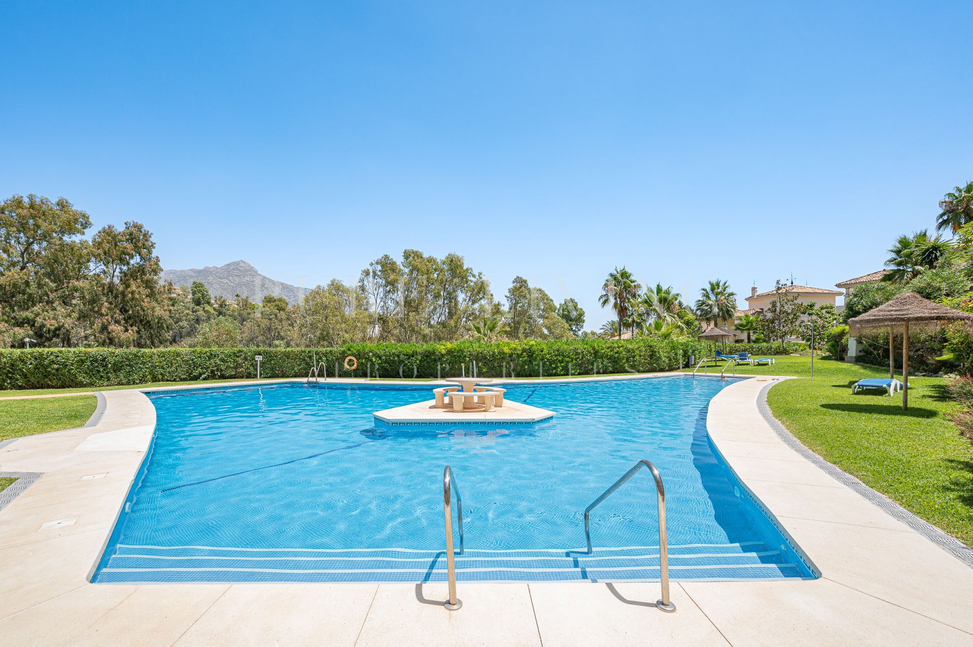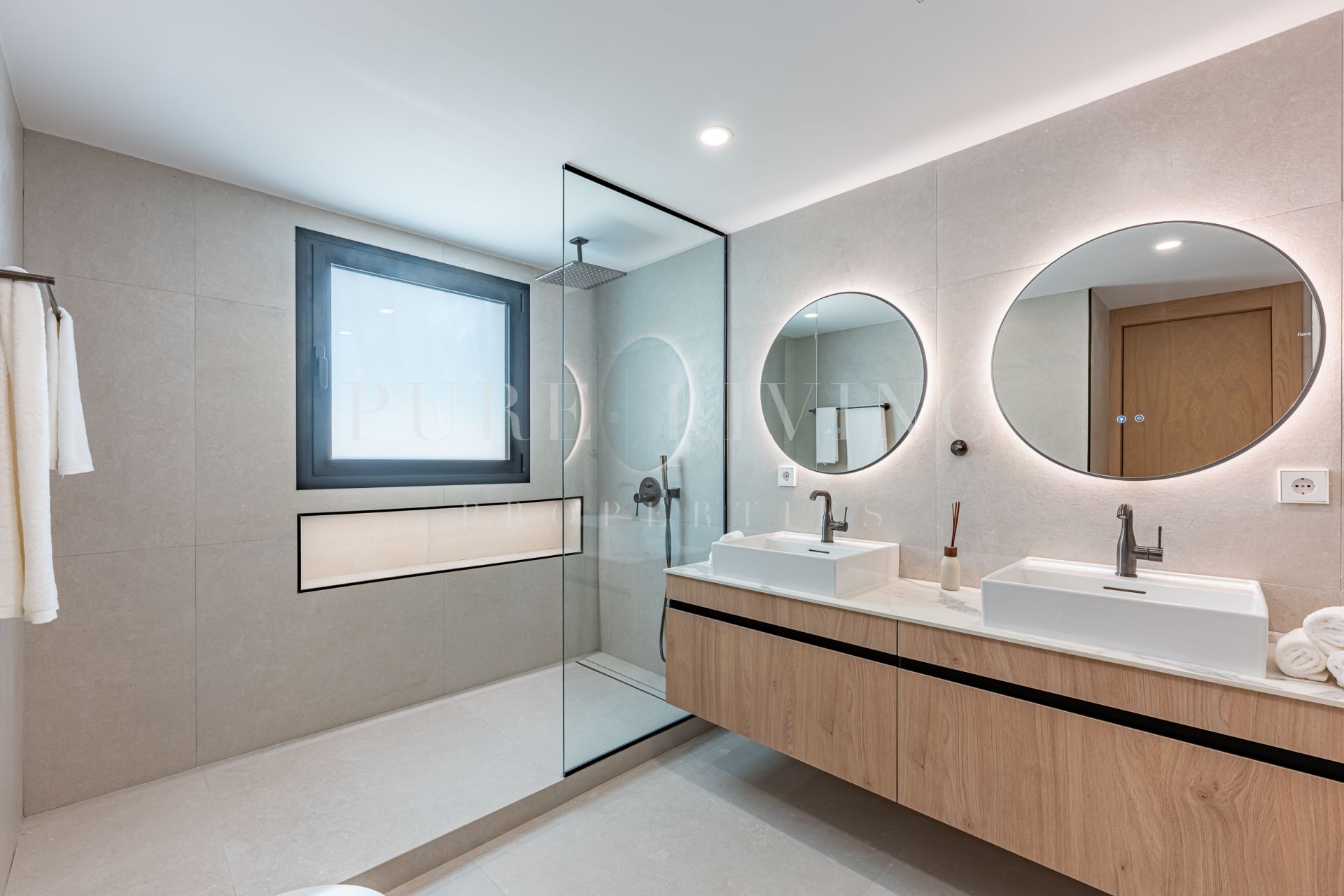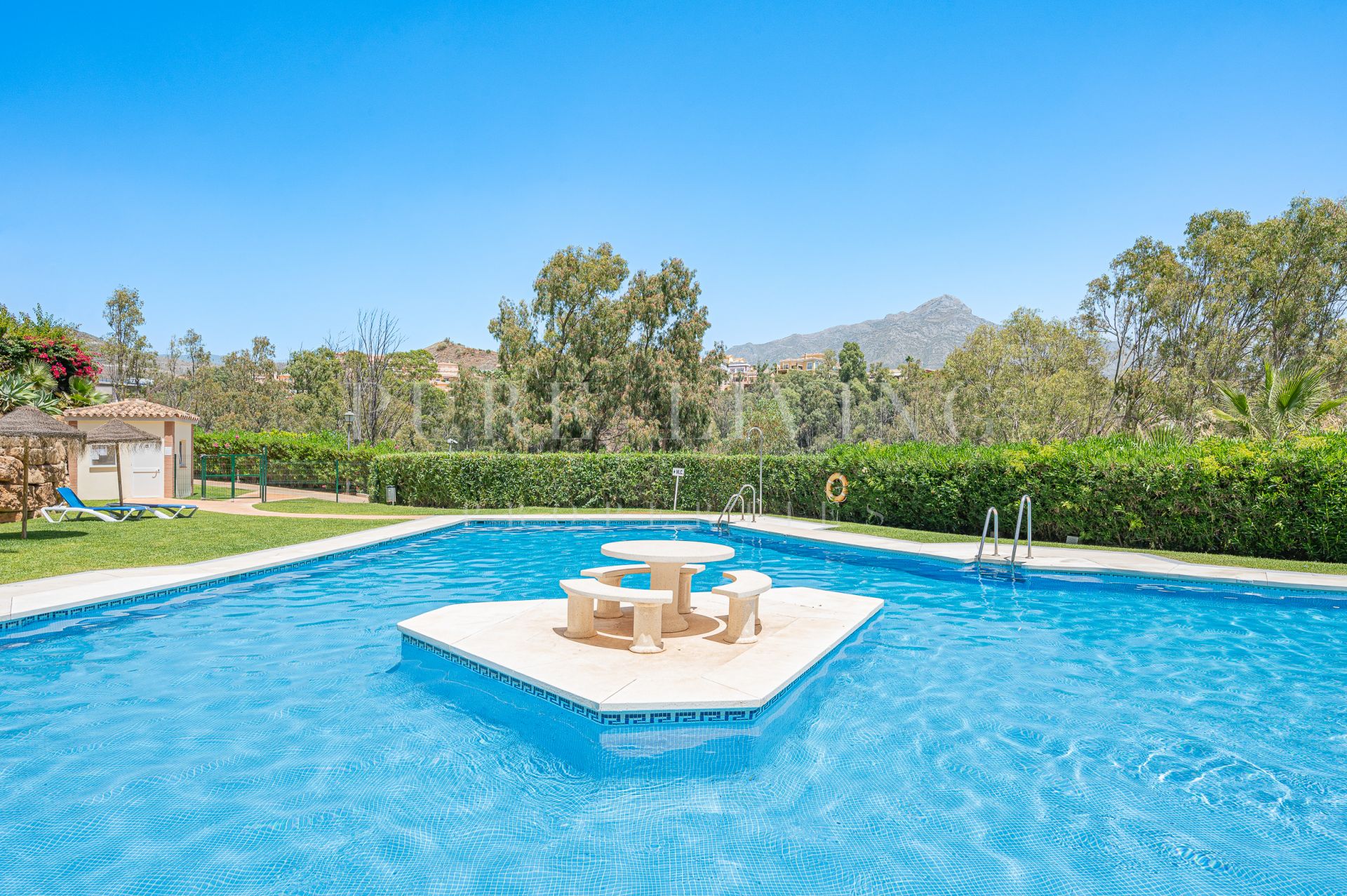 Ontdek dit prachtige appartement met drie slaapkamers, perfect gelegen in het prestigieuze Palacetes Los Belvederes. Geniet van het adembenemende uitzicht op de zee, het meer en de iconische berg La Concha vanuit deze prachtig gerenoveerde woning.