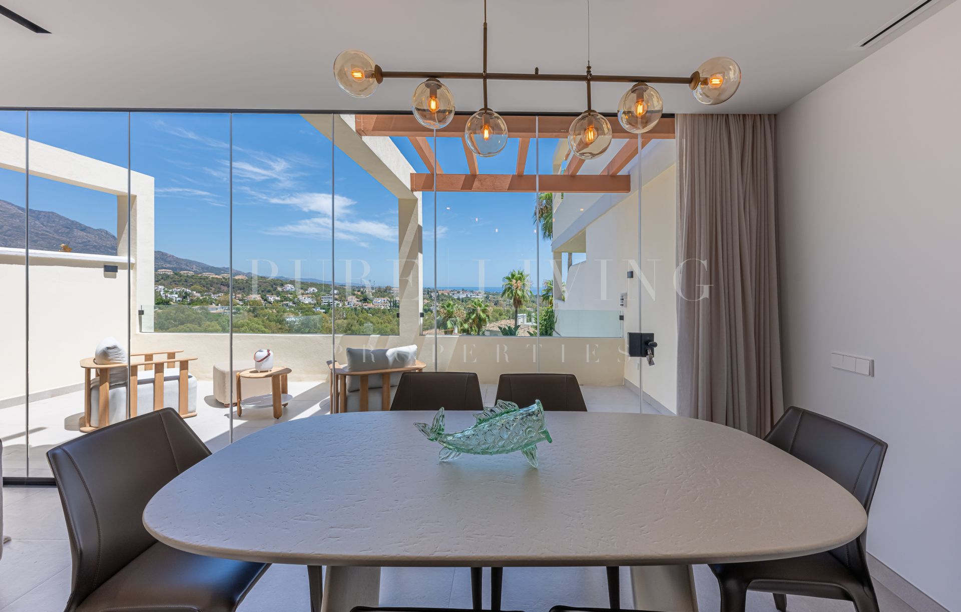 Privé terras, Complete keuken, Woonkamer, airconditioning, Centrale verwarming, Dicht bij scholen, Uitzicht op zee, Uitzicht op de bergen, Dicht bij golfclub, Domoticasysteem, Glazen deuren, Opslagruimte, Open keuken, Alarm, Internet - Wi-Fi, Meubels optioneel, 24 uur per dag Service, Elektrische rolluiken, Inbouwkasten, Beveiligde woonwijk, Eetkamer, Lift, Onlangs gerenoveerd, Uitzicht op het meer.