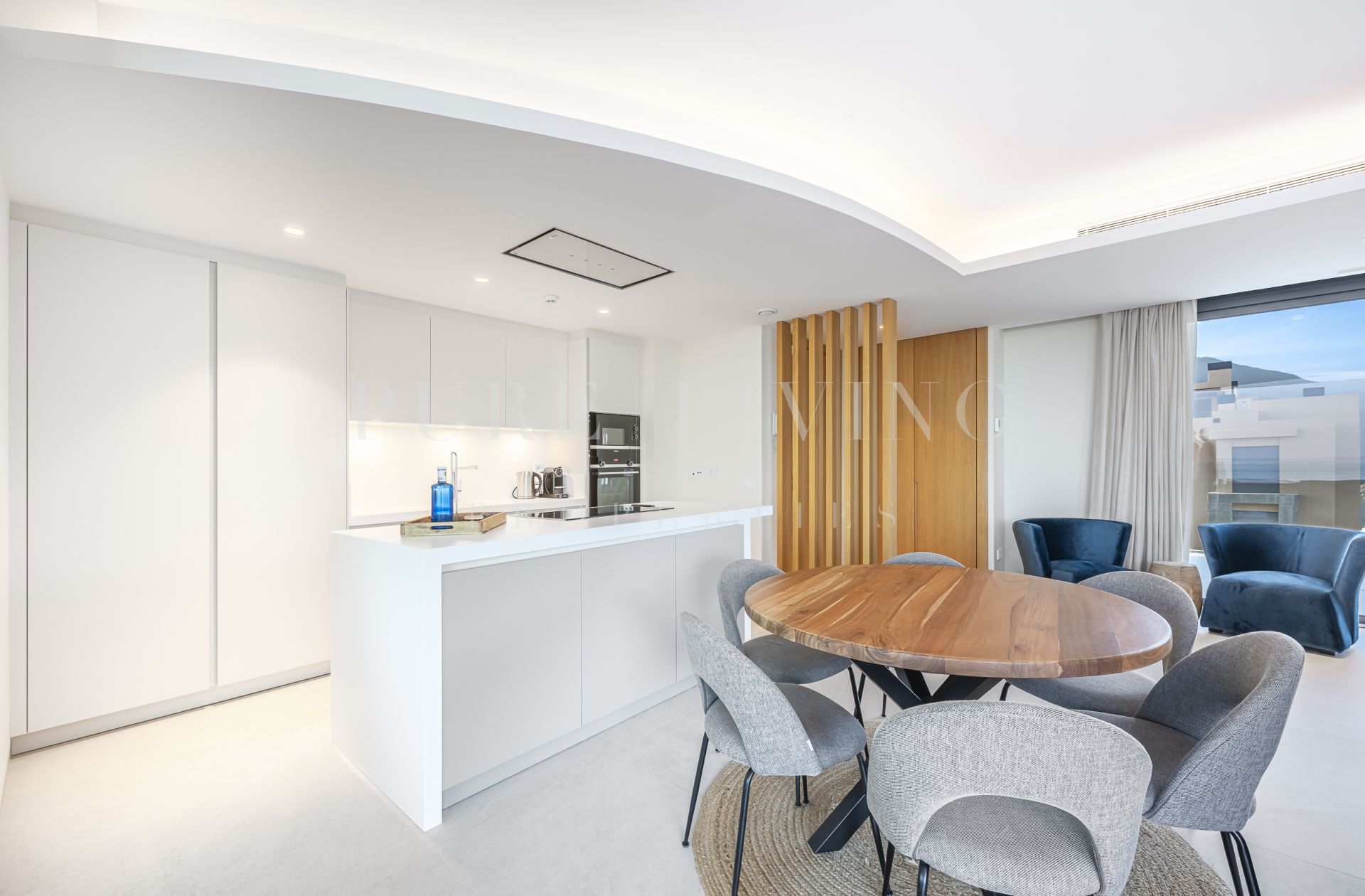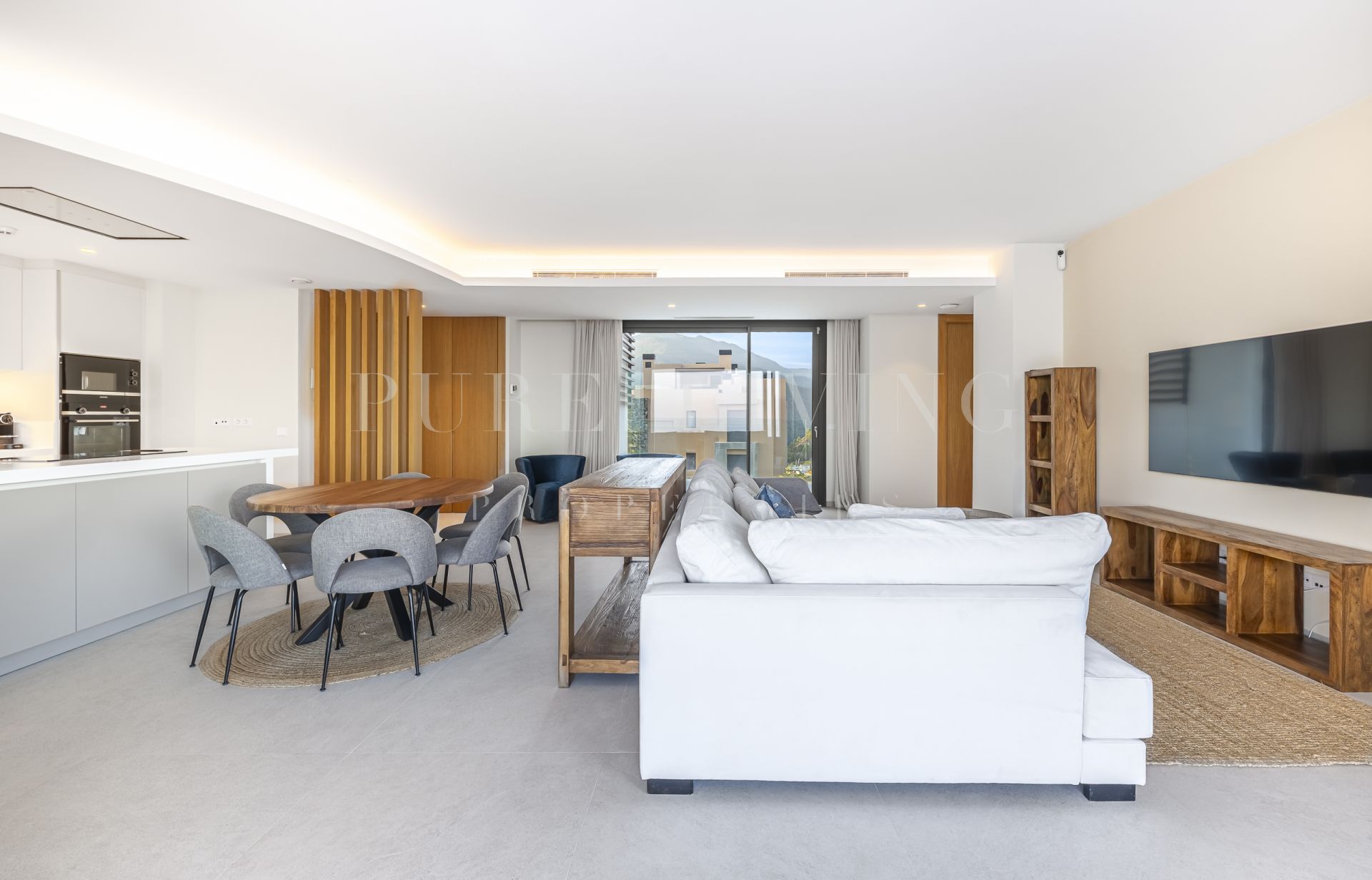 Ervaar een echt gevoel van ruimte en vrijheid in dit ruime appartement met drie slaapkamers in Real de La Quinta. De woning beschikt over een royale open woonkamer, eetkamer en een open keuken, die naadloos aansluiten op terrassen die de leefruimte naar buiten uitbreiden.