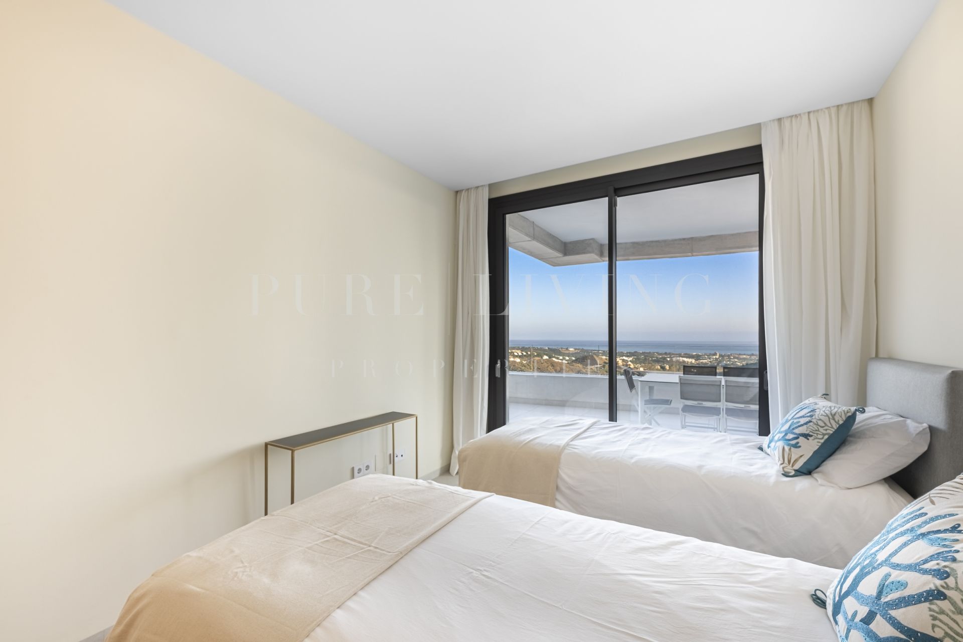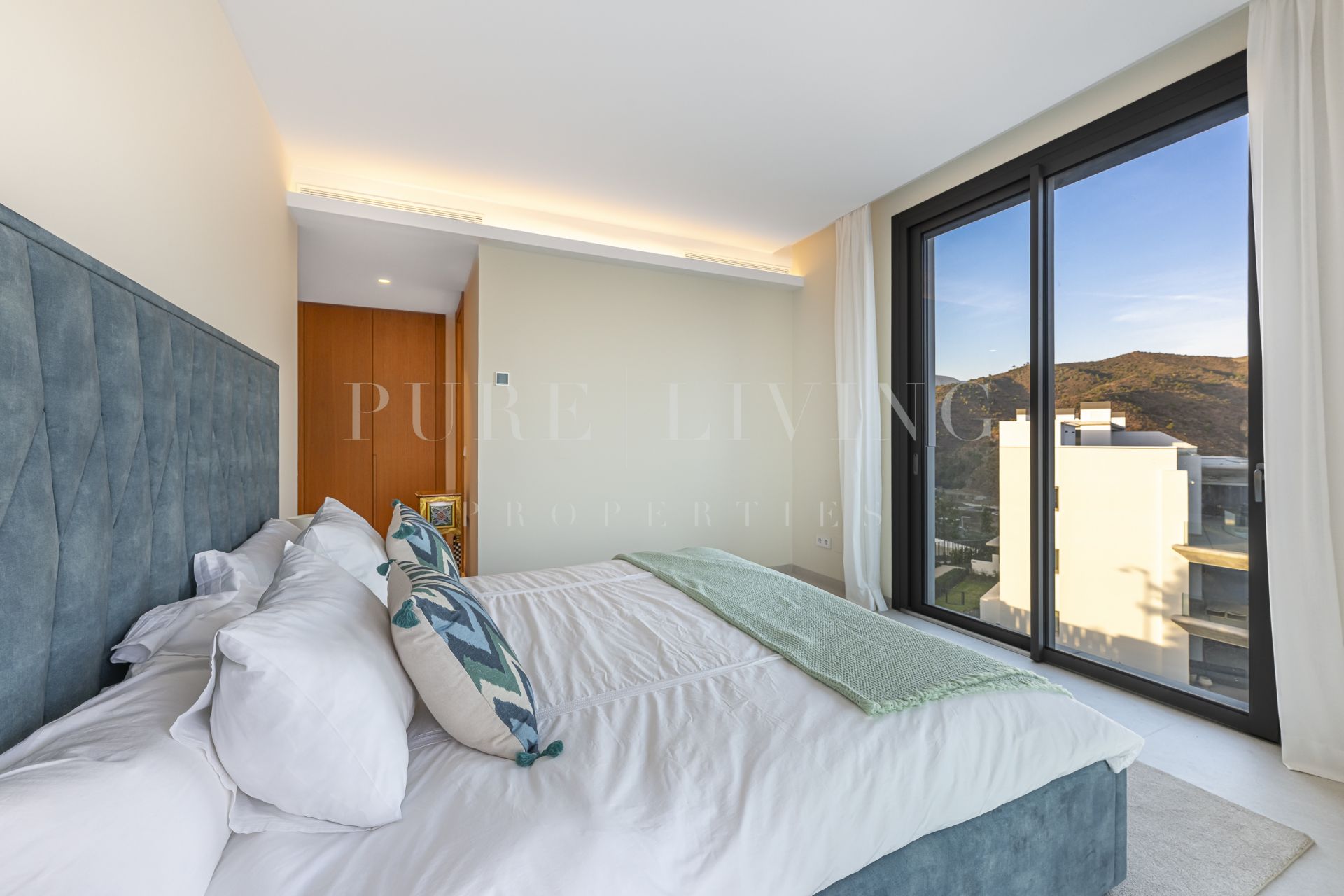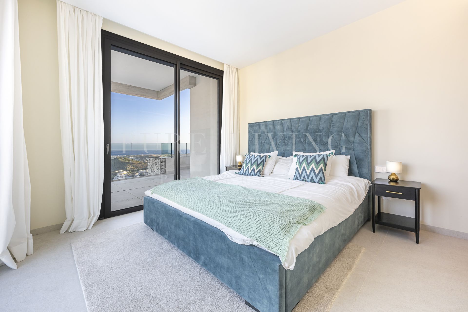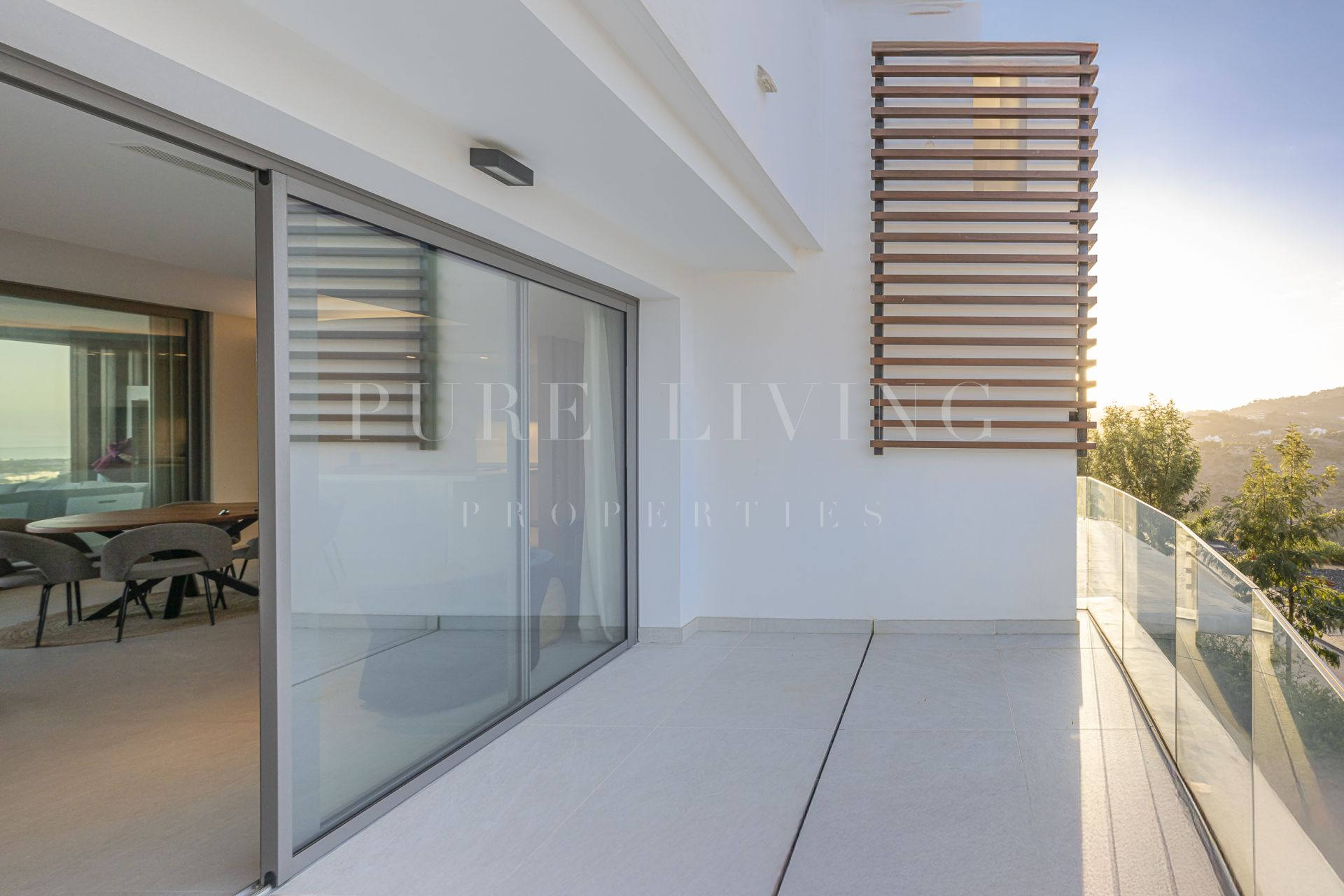 Privé terras, airconditioning, Vloerverwarming (badkamer), sidemountain, Compleet gemeubileerd, Uitzicht op zee, Inbouwkeuken, Uitzicht over land, Dicht bij golfclub, Opslagruimte, Open keuken, Overdekt terras, Meubels optioneel, Dubbele ramen, Elektrische rolluiken, Inbouwkasten, Beveiligde woonwijk, Uitstekende staat, Goede staat, Beveiliging 24/7, Panoramisch uitzicht.