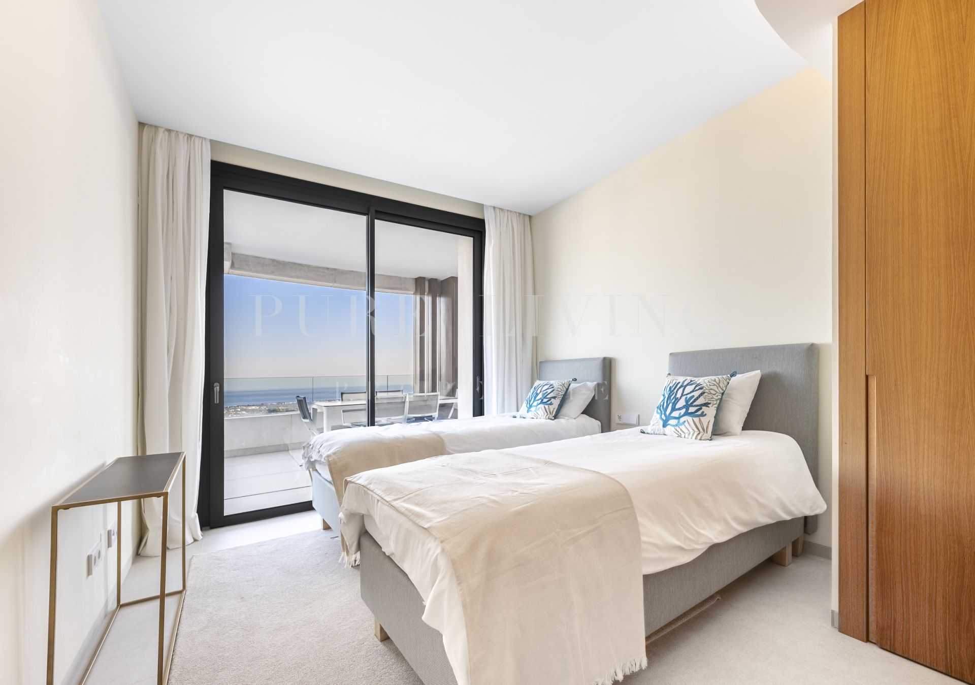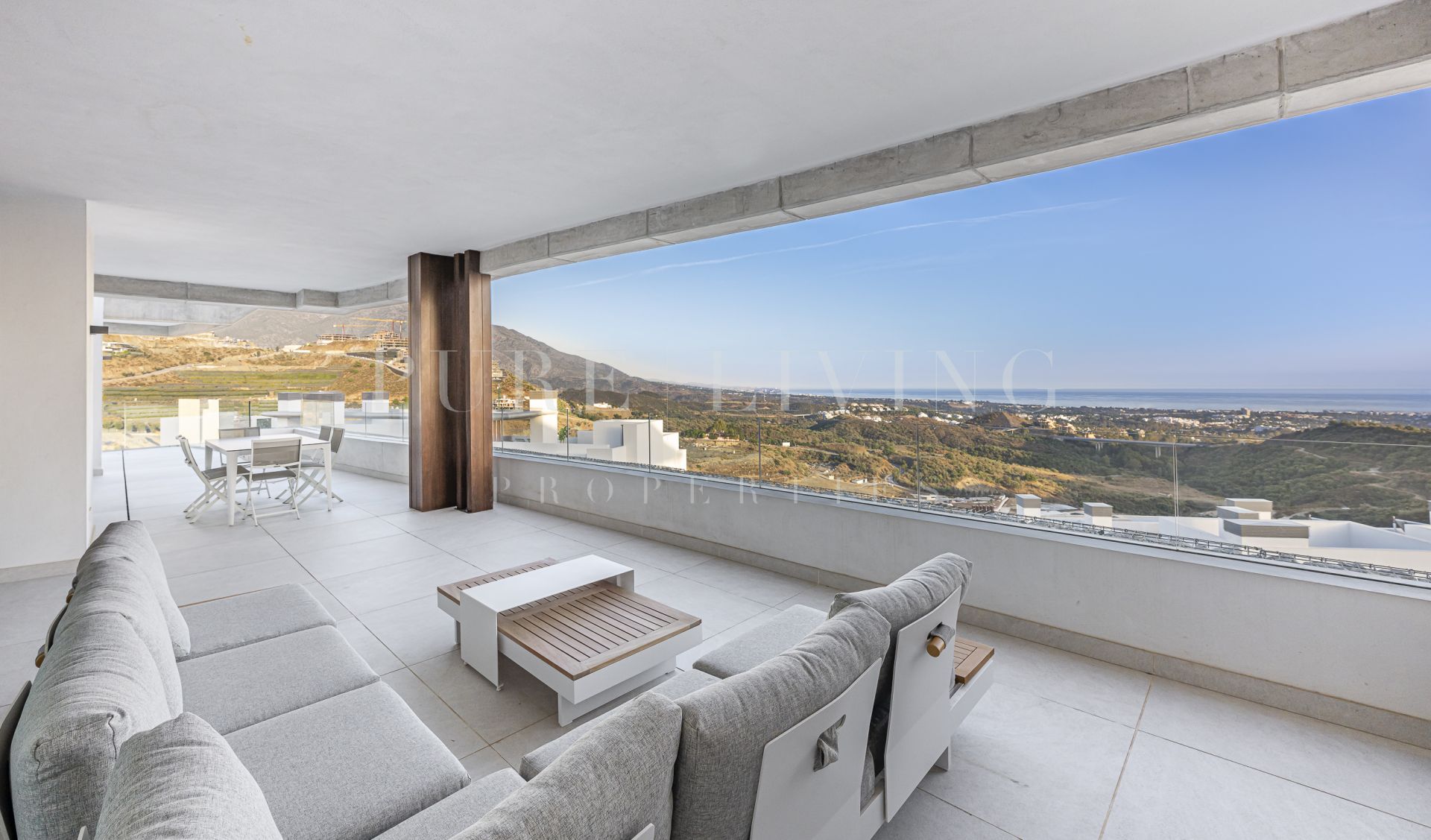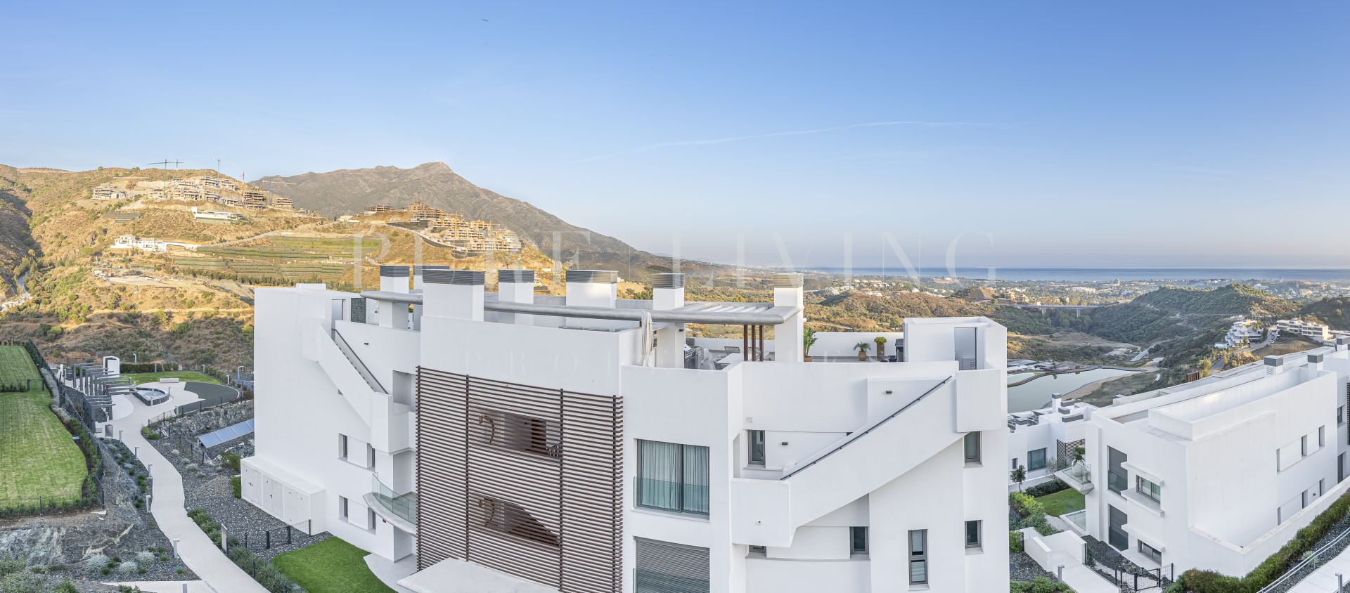 Privé terras, airconditioning, Vloerverwarming (badkamer), sidemountain, Compleet gemeubileerd, Uitzicht op zee, Inbouwkeuken, Uitzicht over land, Dicht bij golfclub, Opslagruimte, Open keuken, Overdekt terras, Meubels optioneel, Dubbele ramen, Elektrische rolluiken, Inbouwkasten, Beveiligde woonwijk, Uitstekende staat, Goede staat, Beveiliging 24/7, Panoramisch uitzicht.