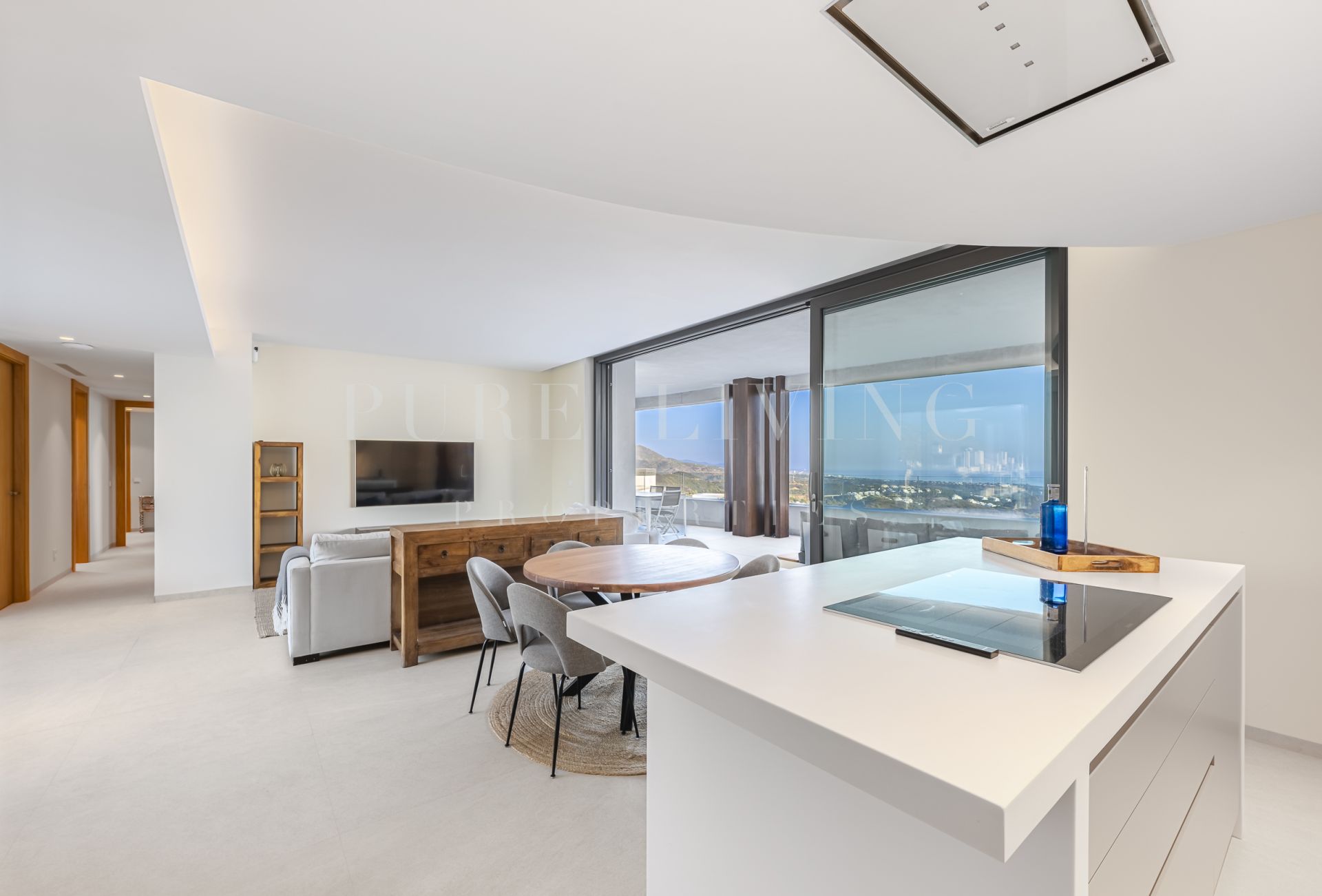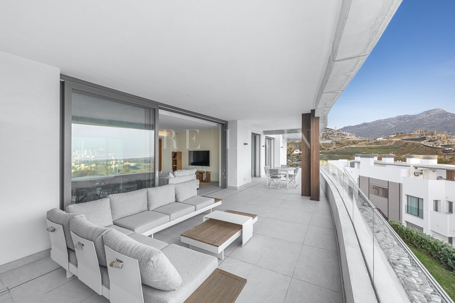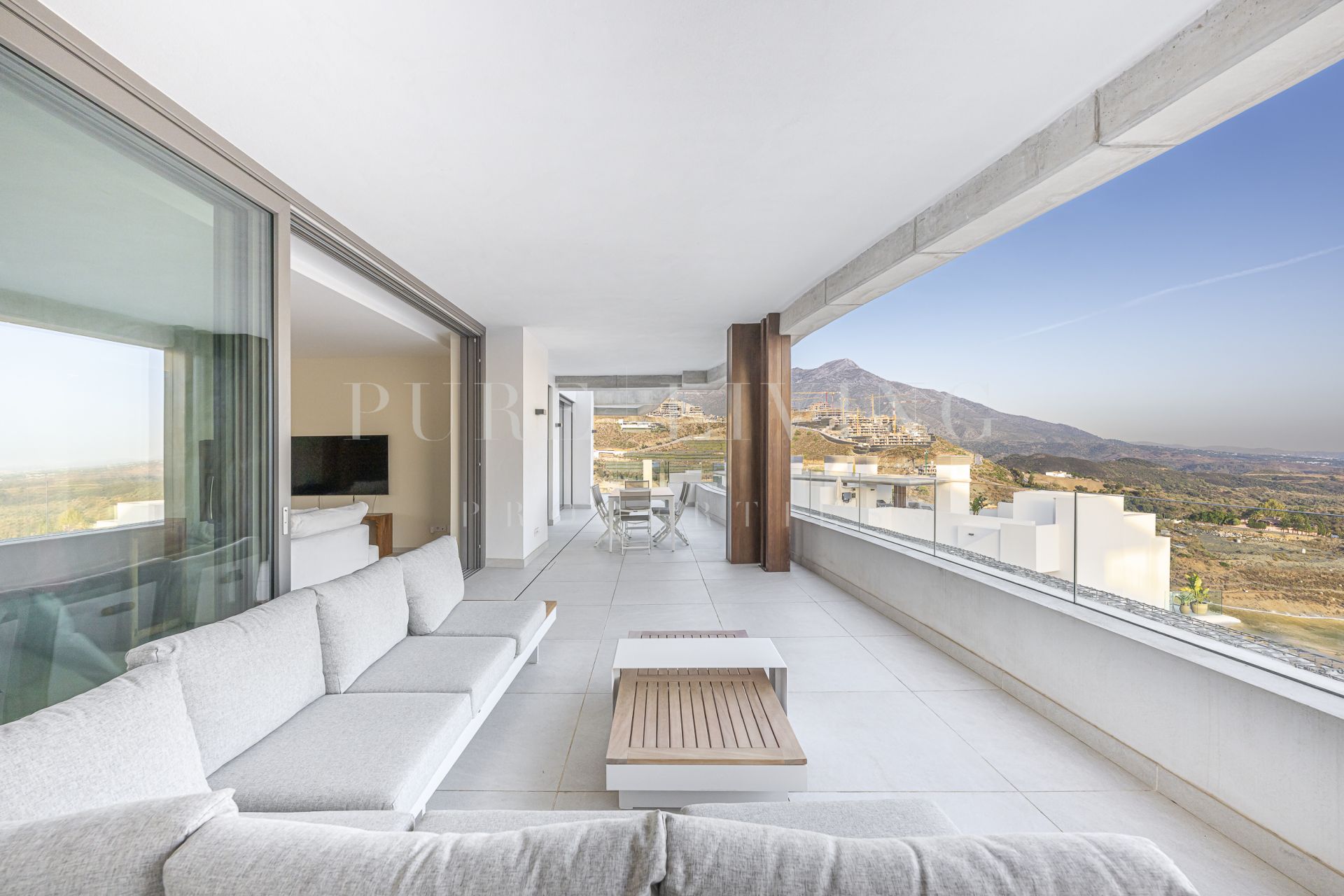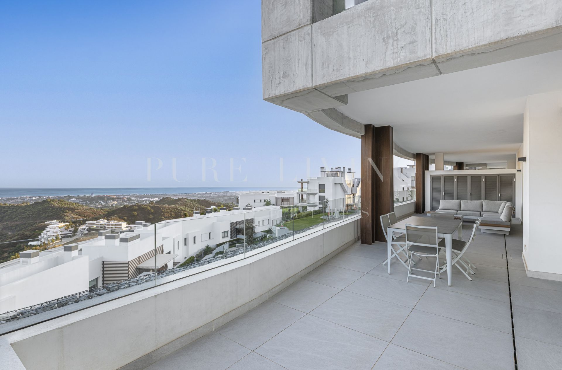 Privé terras, airconditioning, Vloerverwarming (badkamer), sidemountain, Compleet gemeubileerd, Uitzicht op zee, Inbouwkeuken, Uitzicht over land, Dicht bij golfclub, Opslagruimte, Open keuken, Overdekt terras, Meubels optioneel, Dubbele ramen, Elektrische rolluiken, Inbouwkasten, Beveiligde woonwijk, Uitstekende staat, Goede staat, Beveiliging 24/7, Panoramisch uitzicht.
