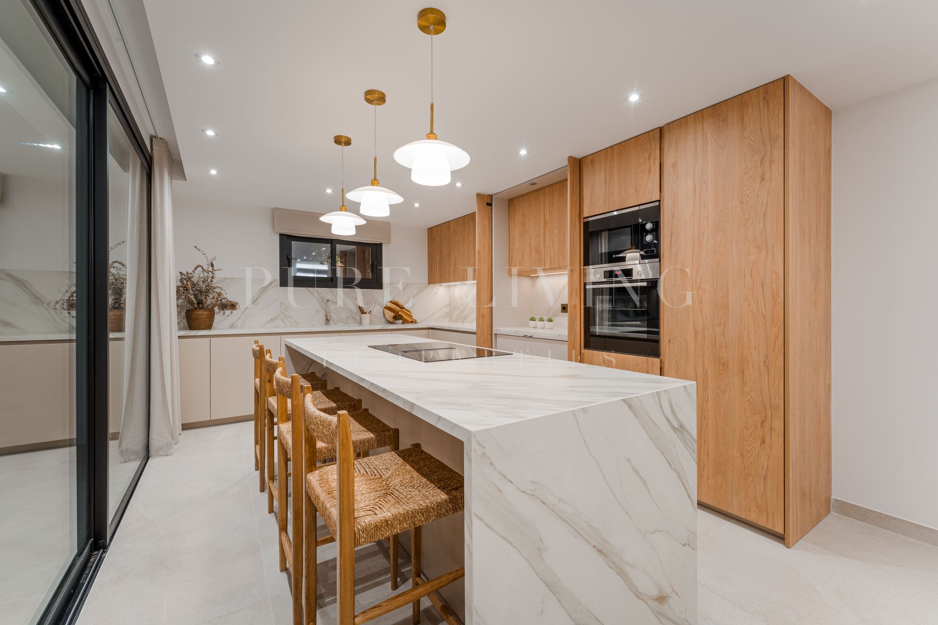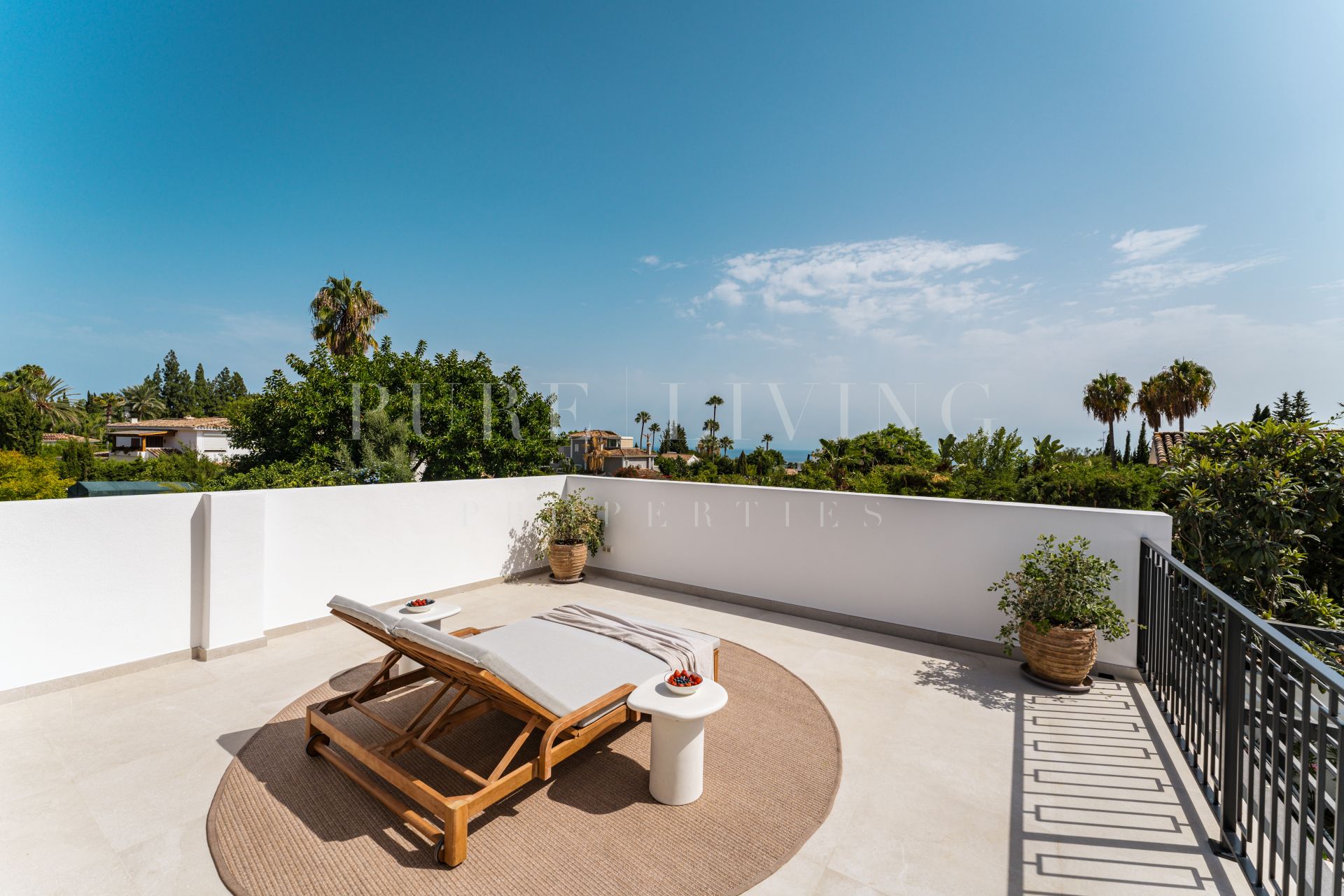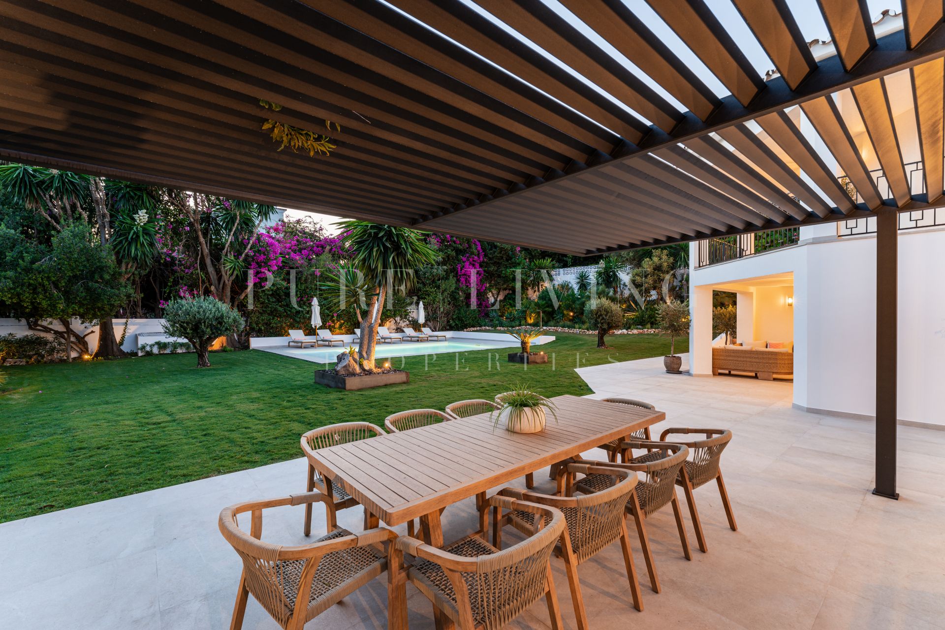 Georiënteerd op het zuidwesten, biedt de villa uitzicht op de fonkelende Middellandse Zee. Uitgestrekte zonovergoten terrassen bieden idyllische ruimtes om buiten te dineren, te loungen en te entertainen in rustige omgeving. De zorgvuldig aangelegde tuin en een verwarmd privézwembad nodigen uit tot het hele jaar door genieten van het milde klimaat van de regio. Overvloedig natuurlijk licht overspoelt de interieurs en accentueert het adembenemende landschap, inclusief iconische uitzichten op de berg La Concha.