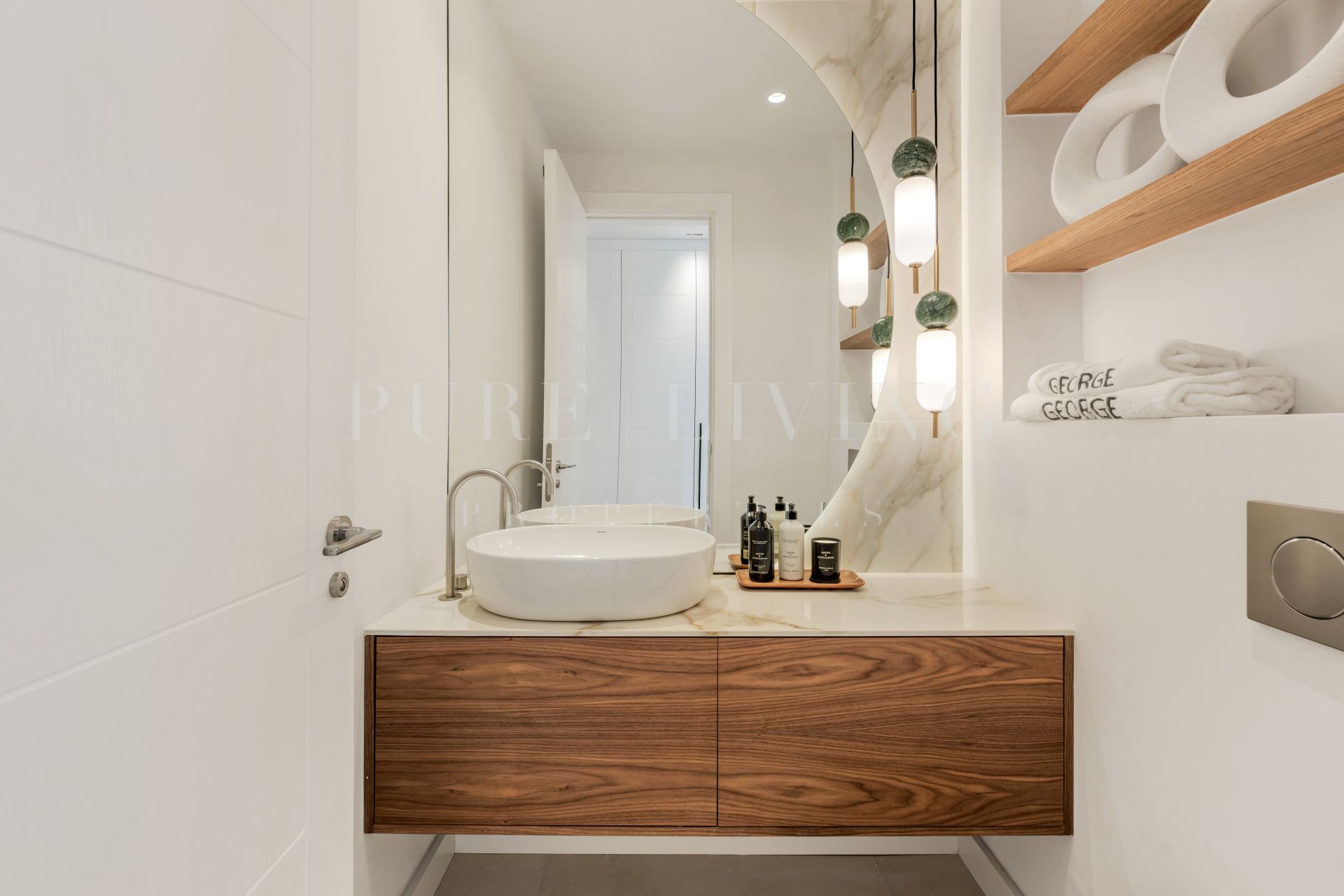 Villa George, gelegen op de helling van de majestueuze berg La Concha, in de exclusieve gated community Sierra Blanca in Marbella, betovert u vanaf het moment dat u aankomt. De bevoorrechte locatie combineert rust en natuurlijke schoonheid met de nabijheid van de meest iconische bezienswaardigheden van de stad: de charmante oude binnenstad, Puente Romano, het bruisende centrum van Marbella en het chique Puerto Banús liggen allemaal op slechts enkele minuten afstand.