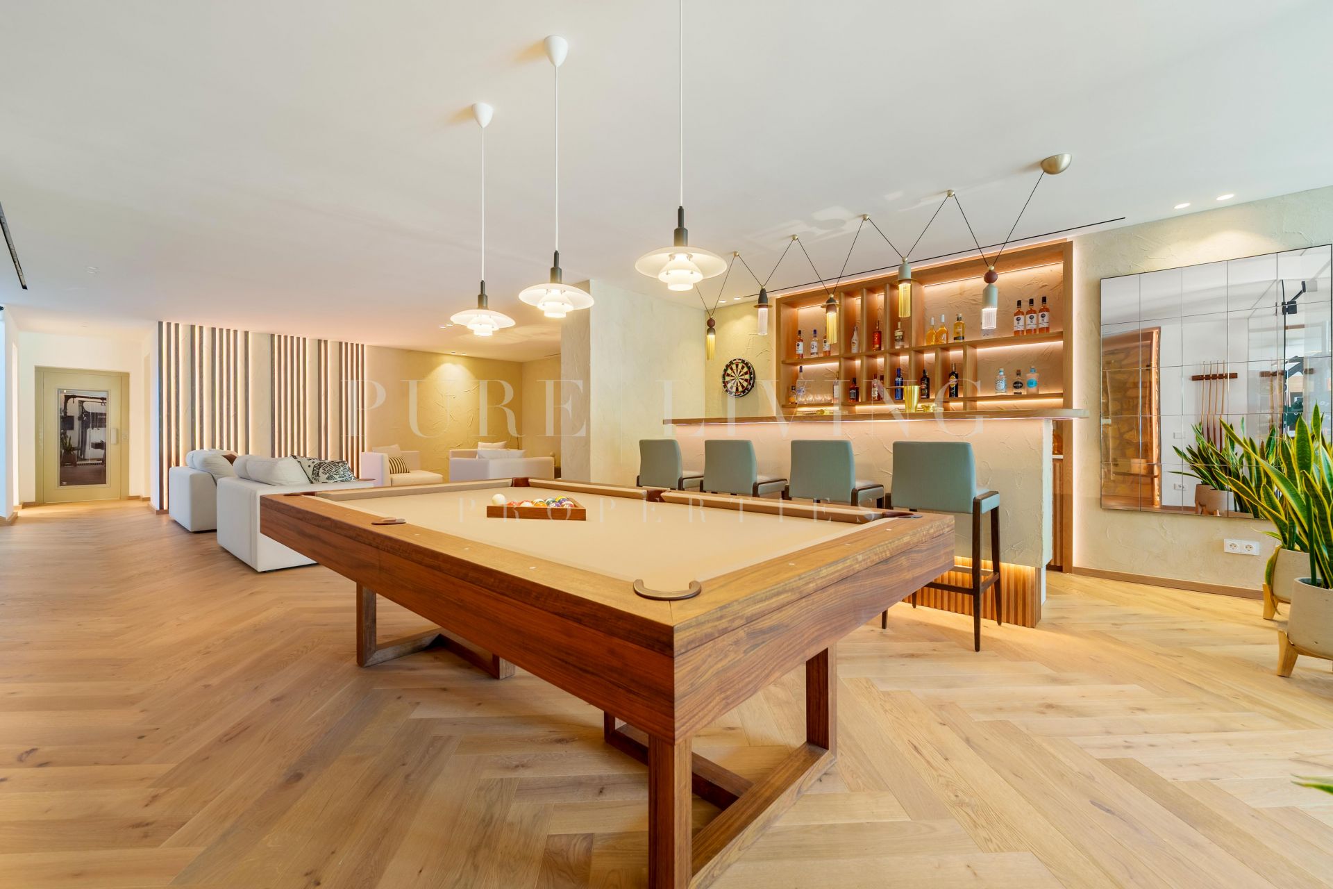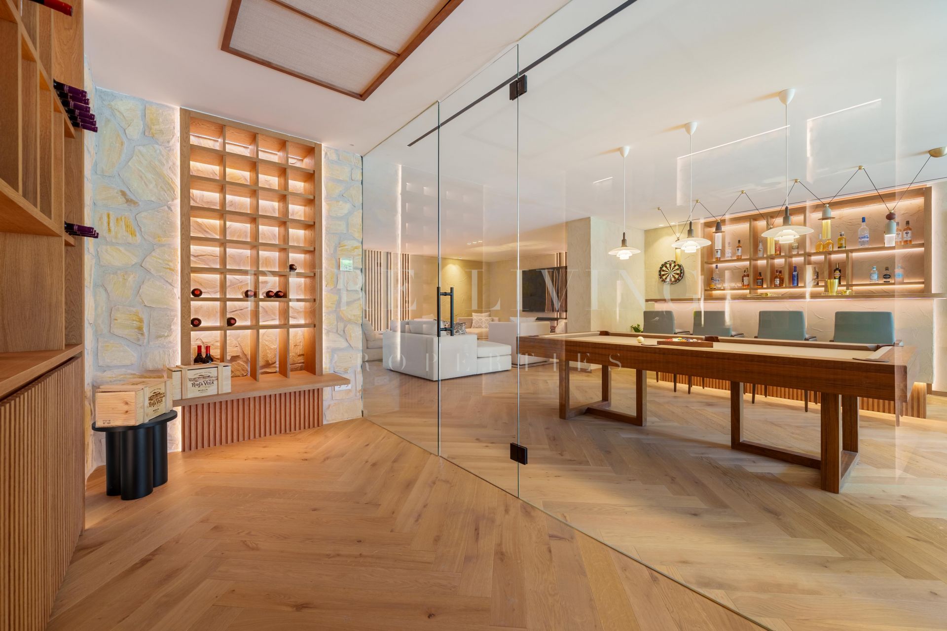 Voor ontspanning en vermaak biedt de villa een speciale speelkamer met biljart en een familie-/tv-lounge. De volledig uitgeruste fitnessruimte, grote wijnkelder, ruime was- en opslagruimtes, privéparkeerplaatsen en onderhoudsarme tropische tuinen verhogen de aantrekkingskracht van het pand. Slimme huistechnologie zorgt voor modern gemak, met een systeem compatibel met Apple HomeKit en de Lutron-app. Gebouwd met energie-efficiëntie in gedachten, beschikt de villa over een energiecertificaat A, wat de milieu-impact en de energiekosten minimaliseert.