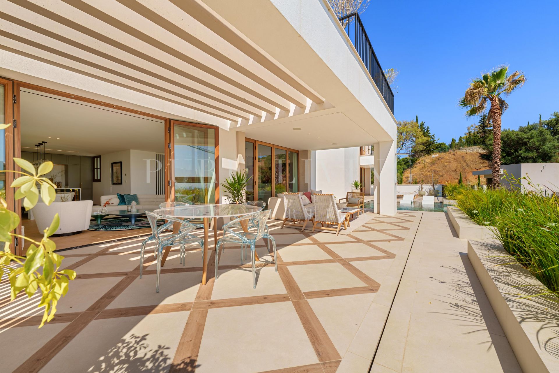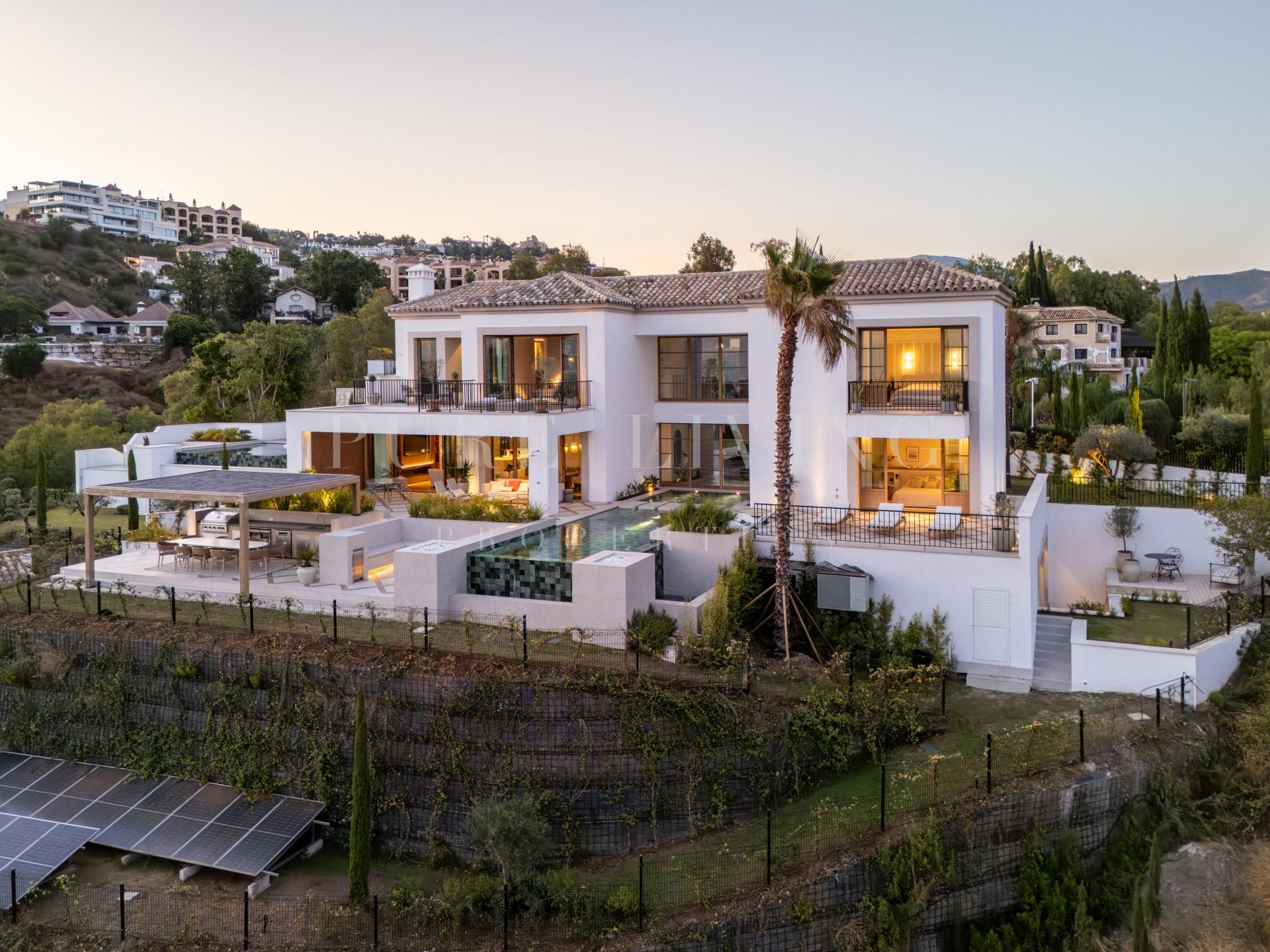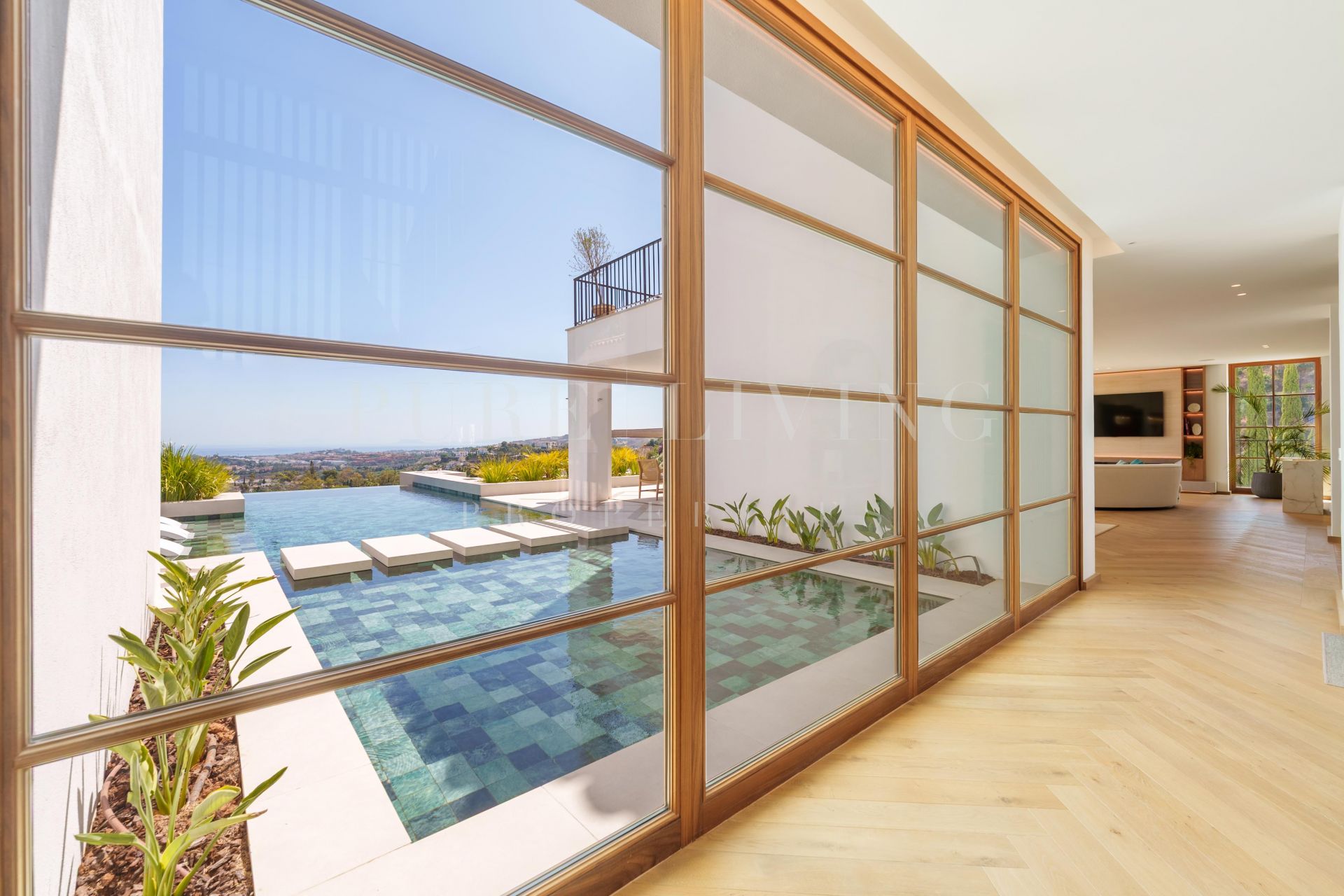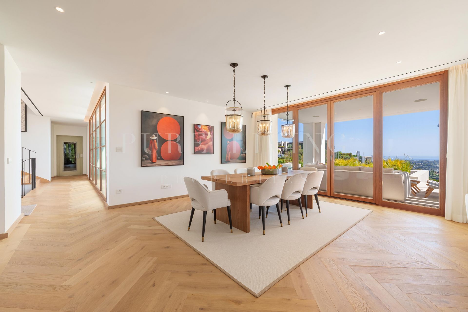 Dankzij de bevoorrechte ligging biedt de villa weids uitzicht op zowel de Middellandse Zee als de bergen. Ondanks de rustige omgeving is de villa gunstig gelegen nabij designerboetieks, ongerepte stranden, championship golfbanen en de bruisende centra van Marbella en Puerto Banús, allemaal op korte rijafstand.